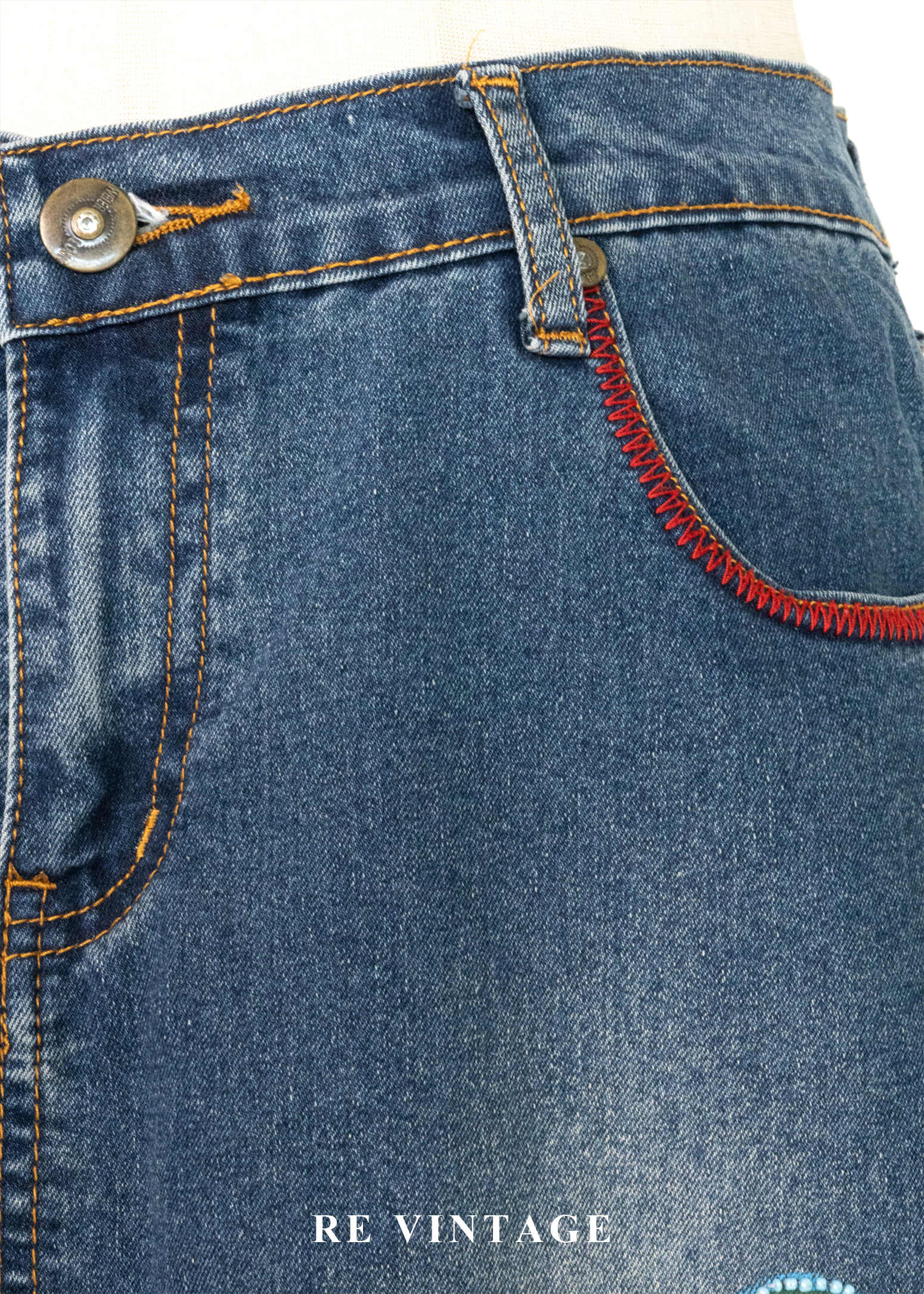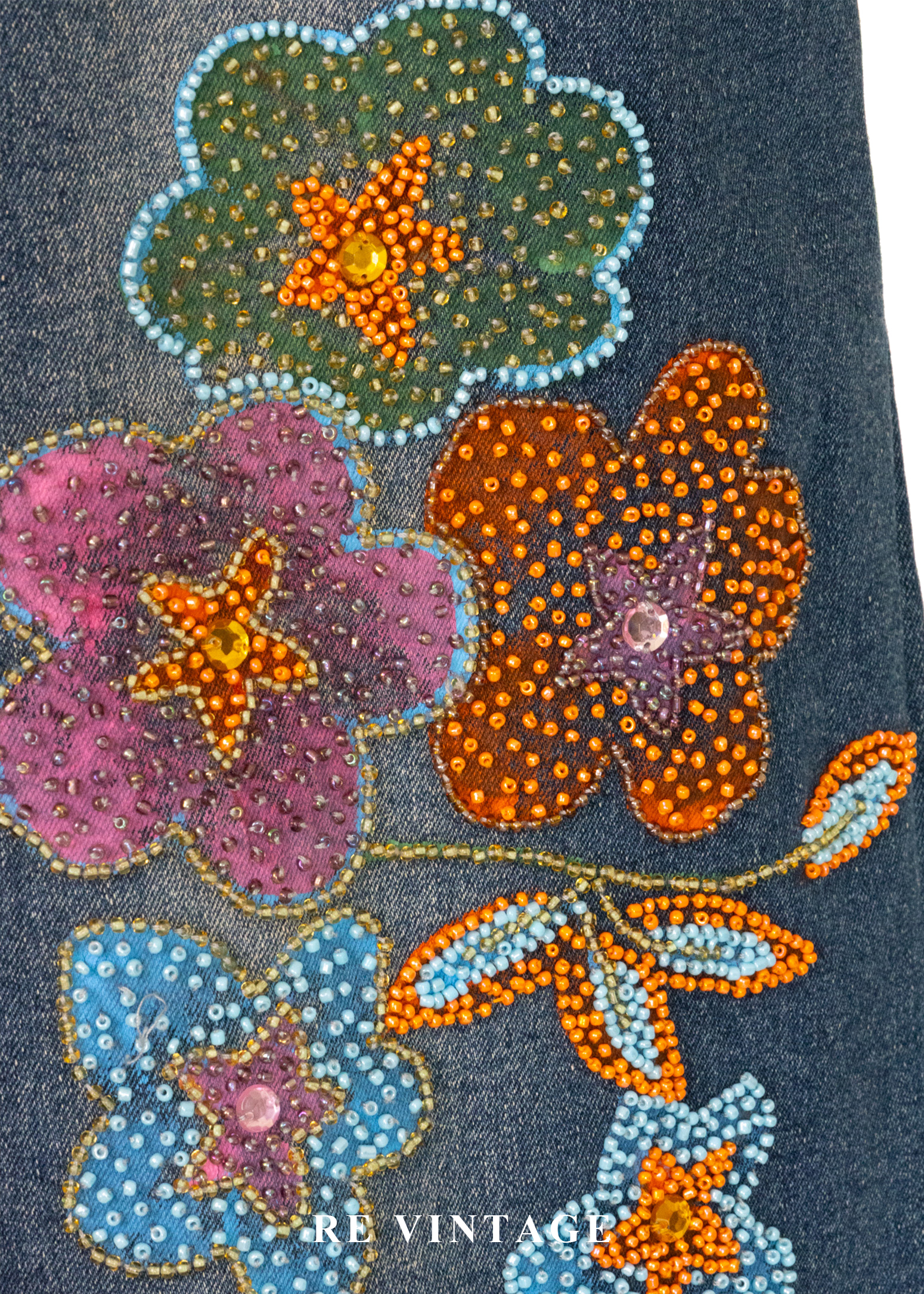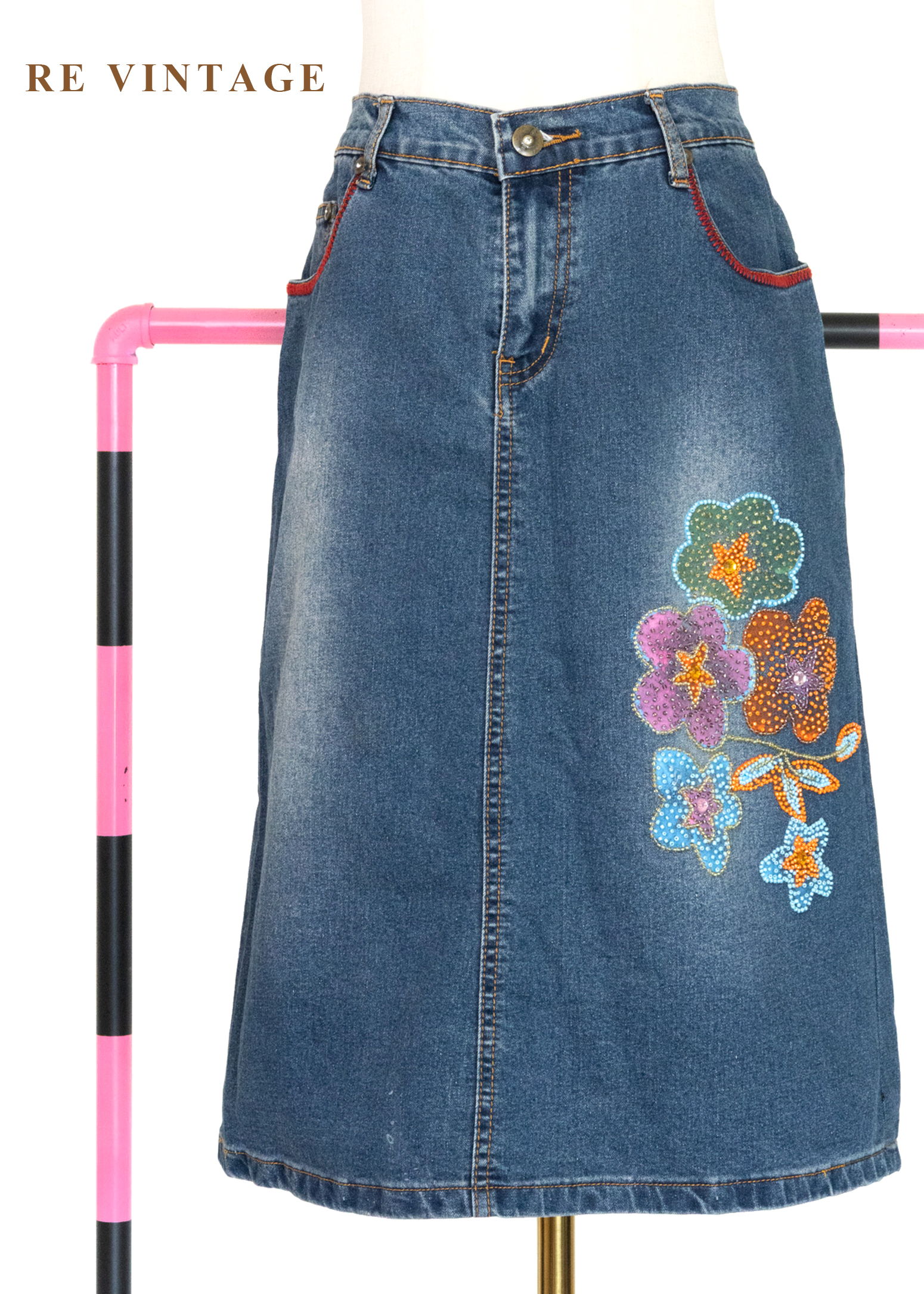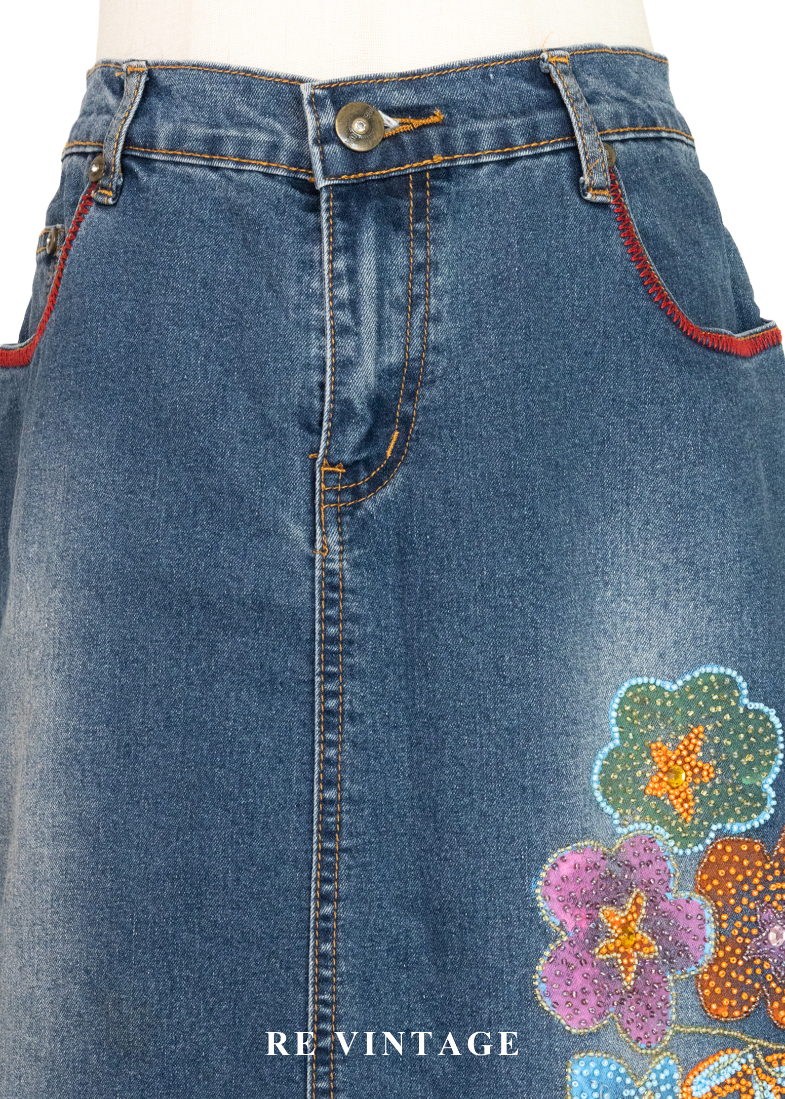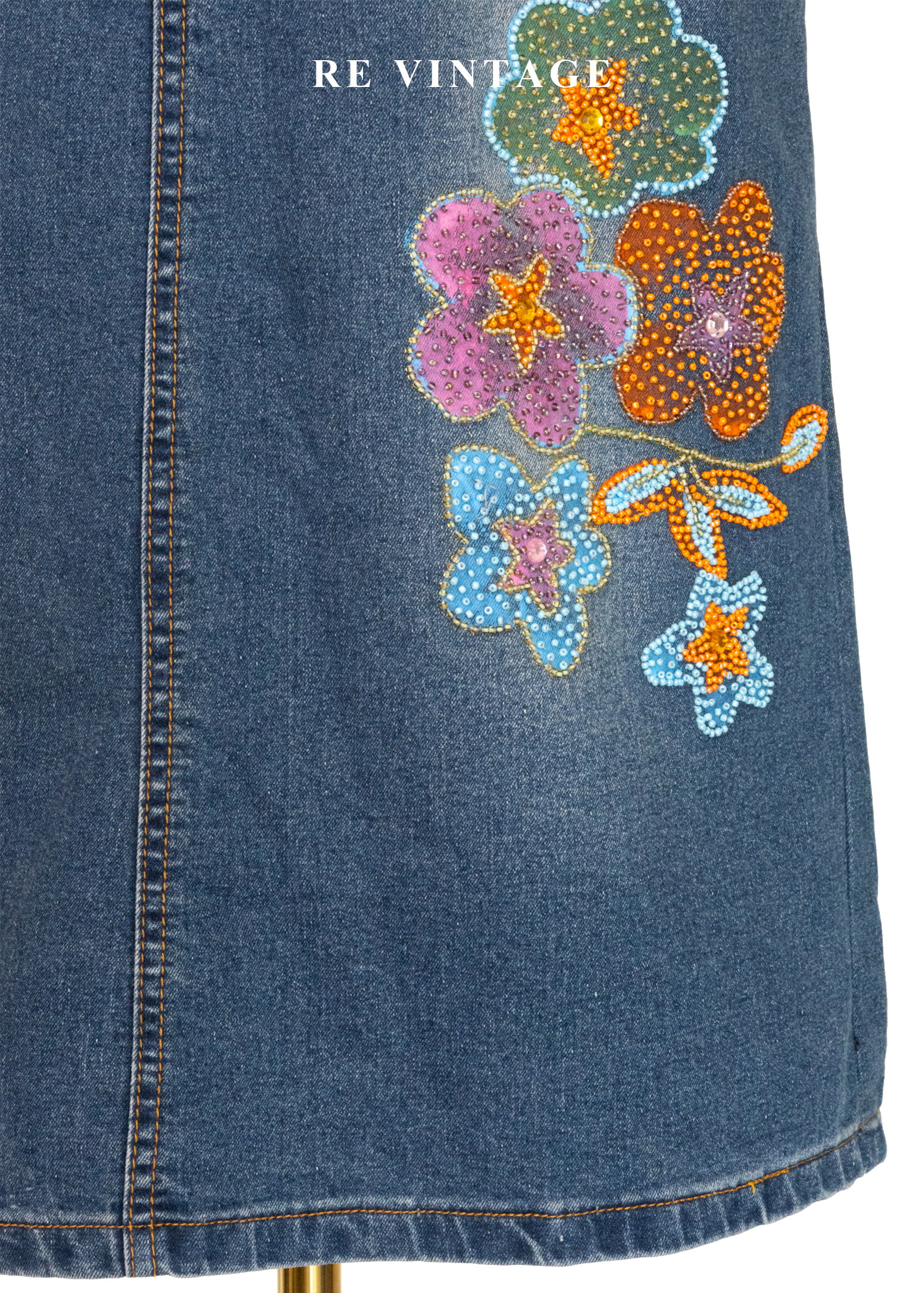 俏皮花朵珠飾牛仔短裙(27")