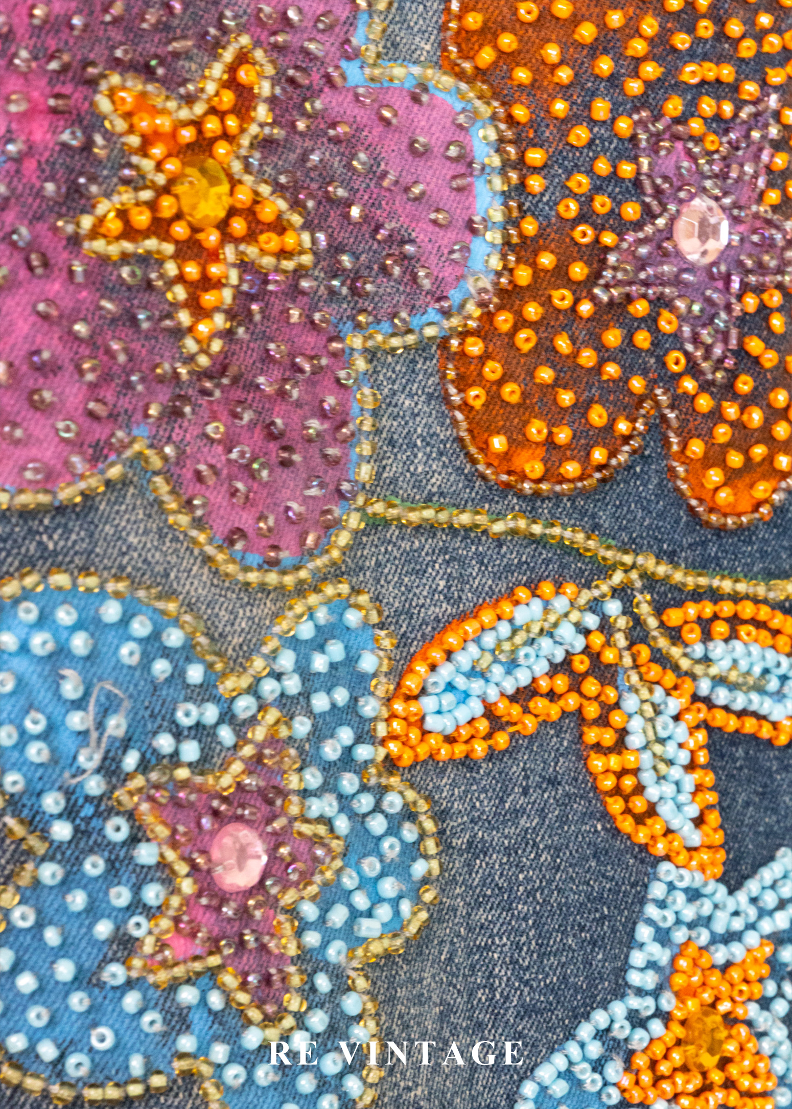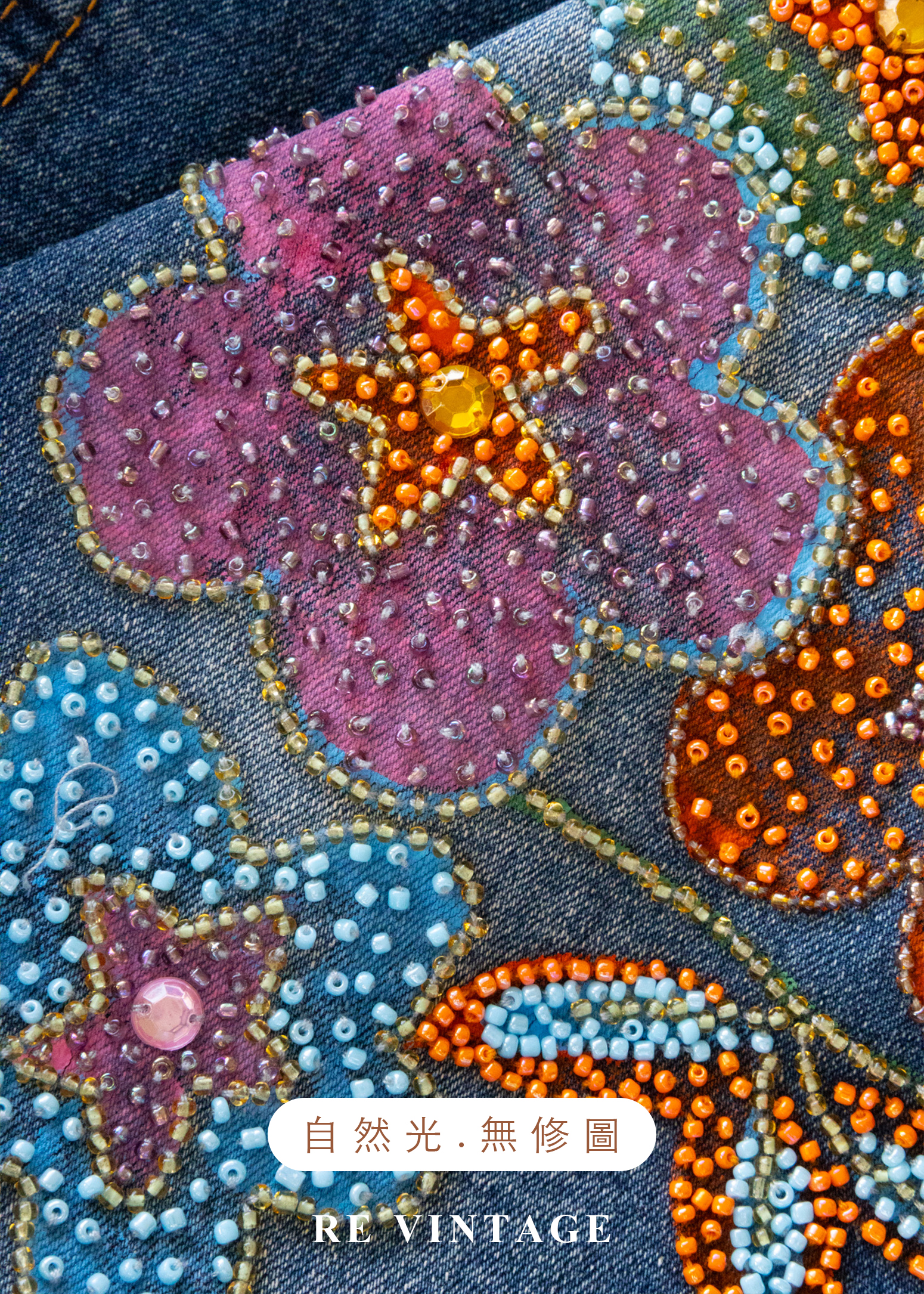 - 正面左側可愛的珠珠花朵刺繡細節