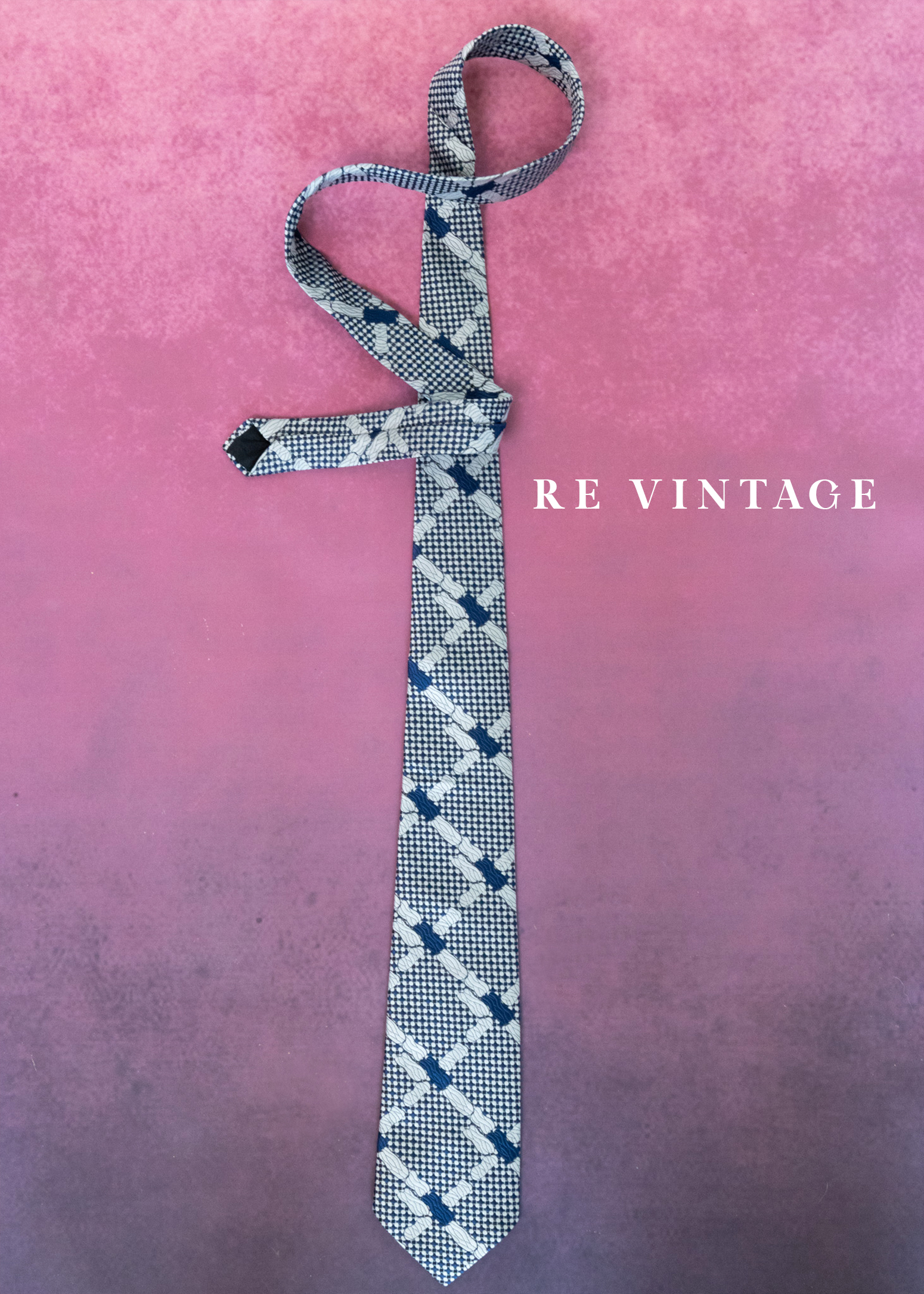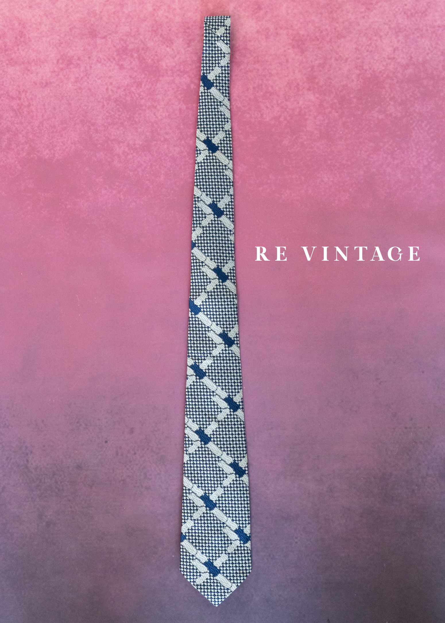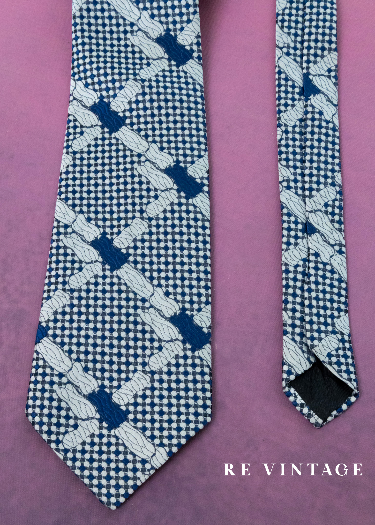 像素交織海藍菱格紋領帶