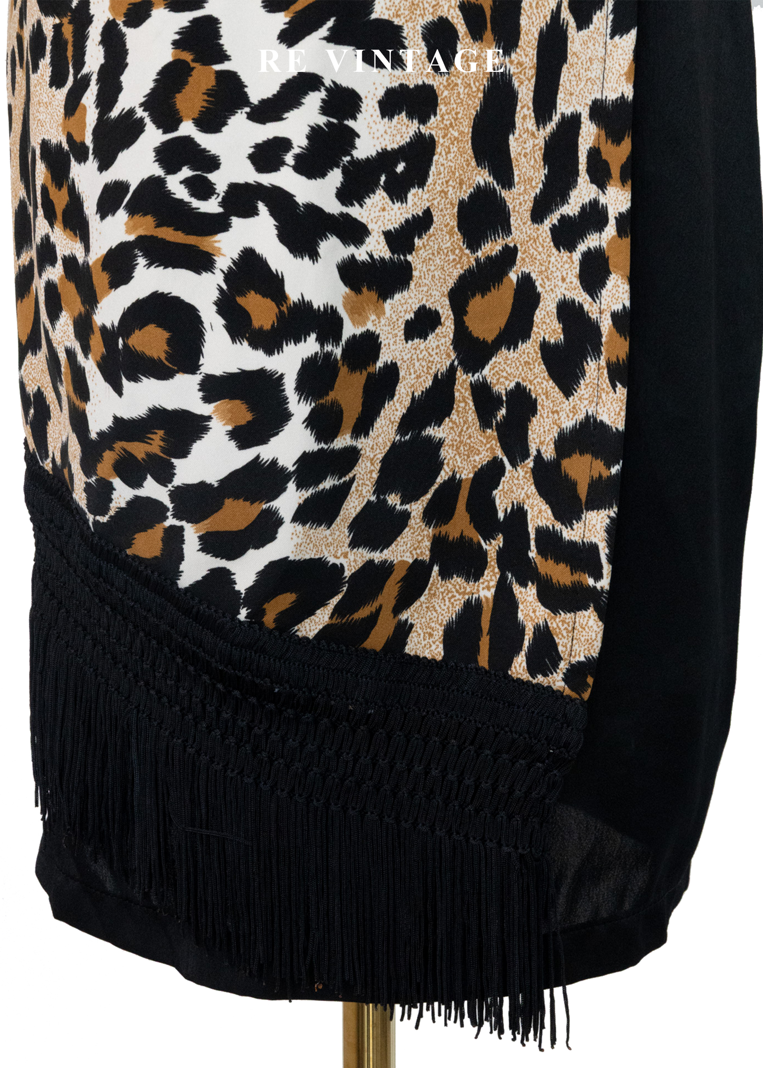 冷黑豹紋野性流蘇美裙(26-28")