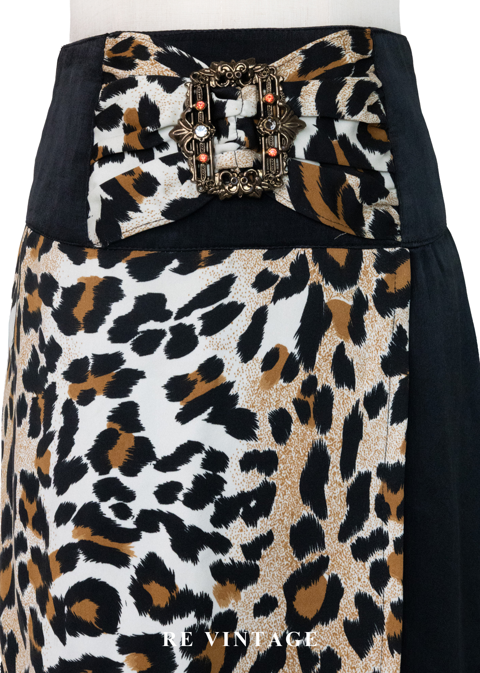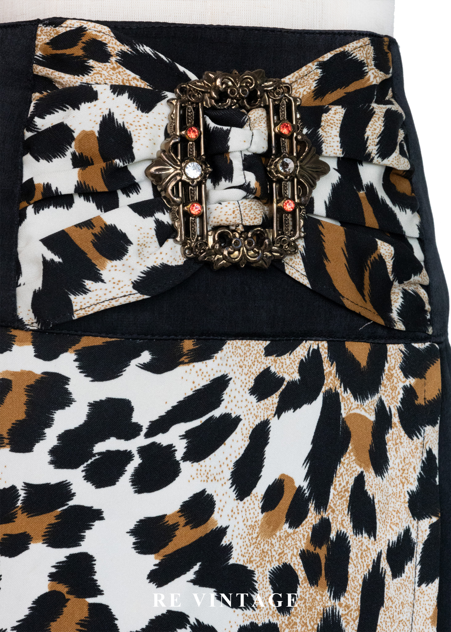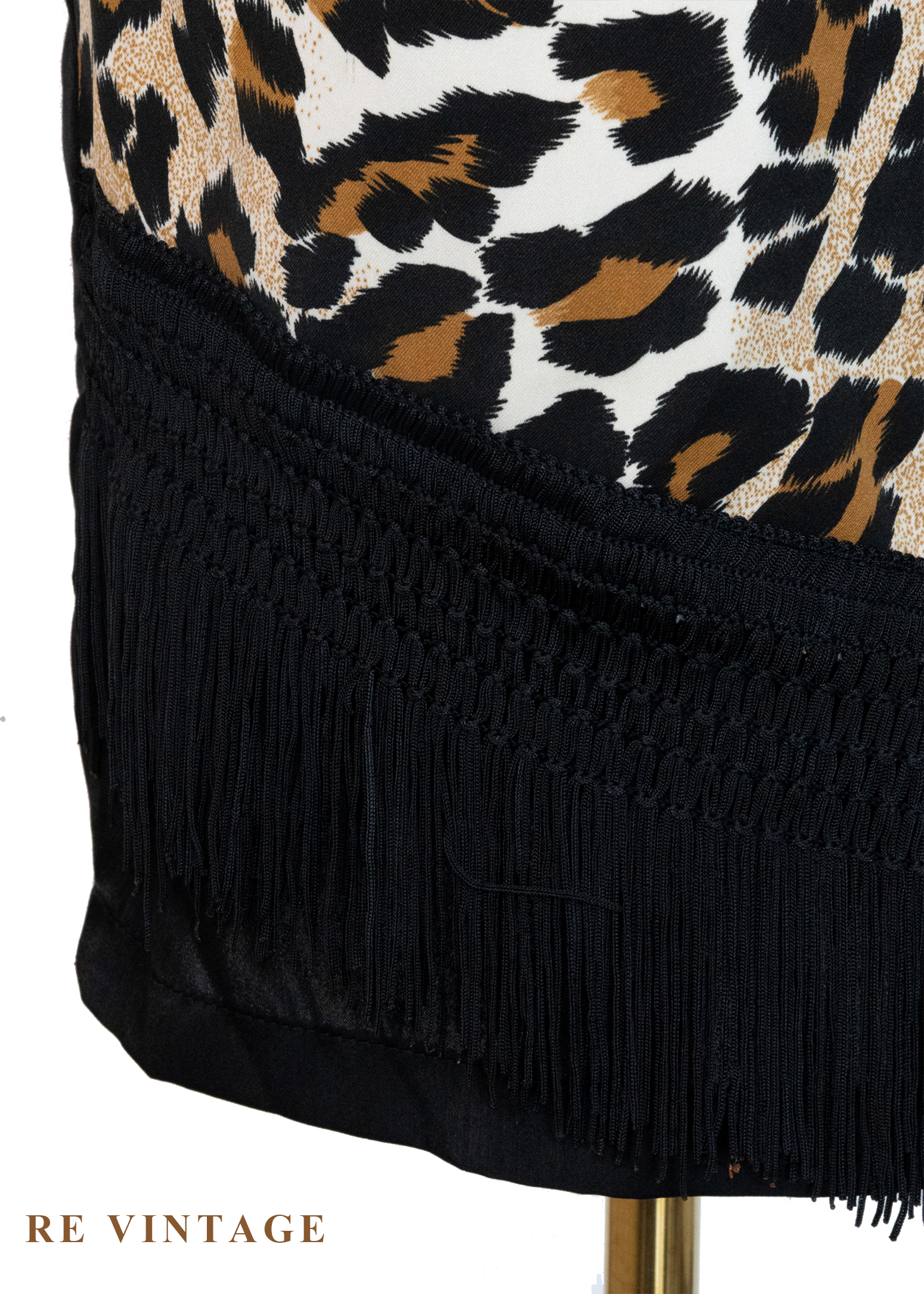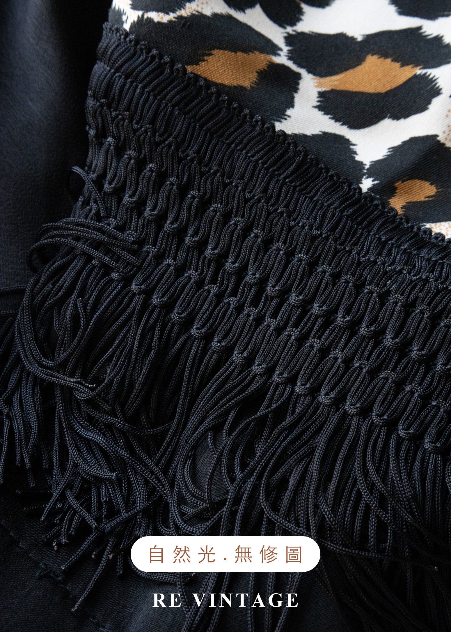 • 正面漂亮的豹紋布料拼接及下擺流蘇設計