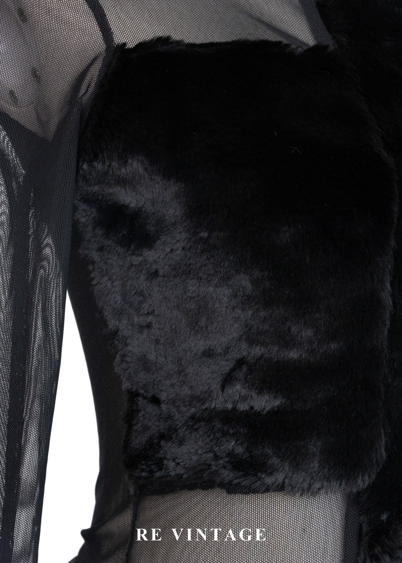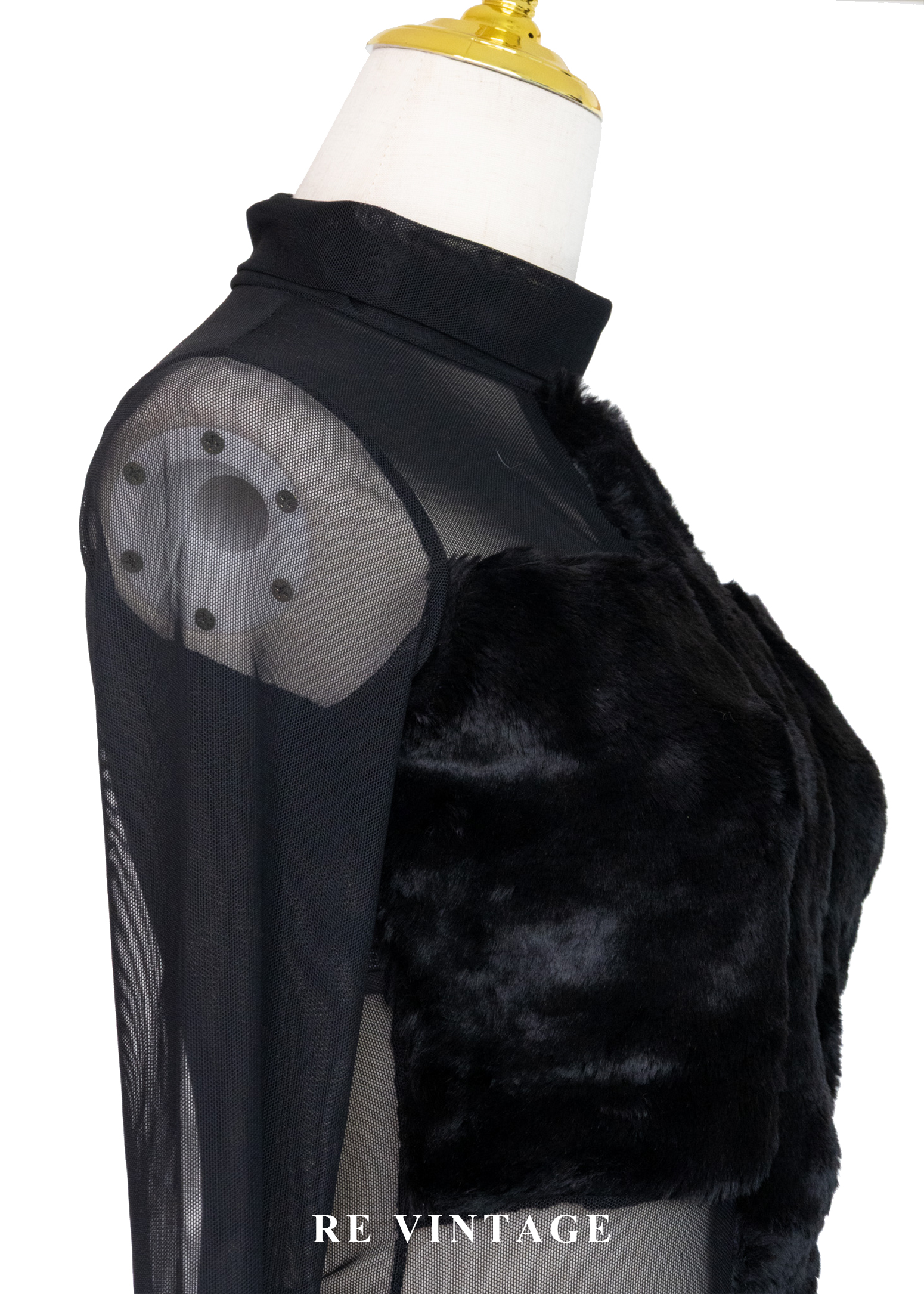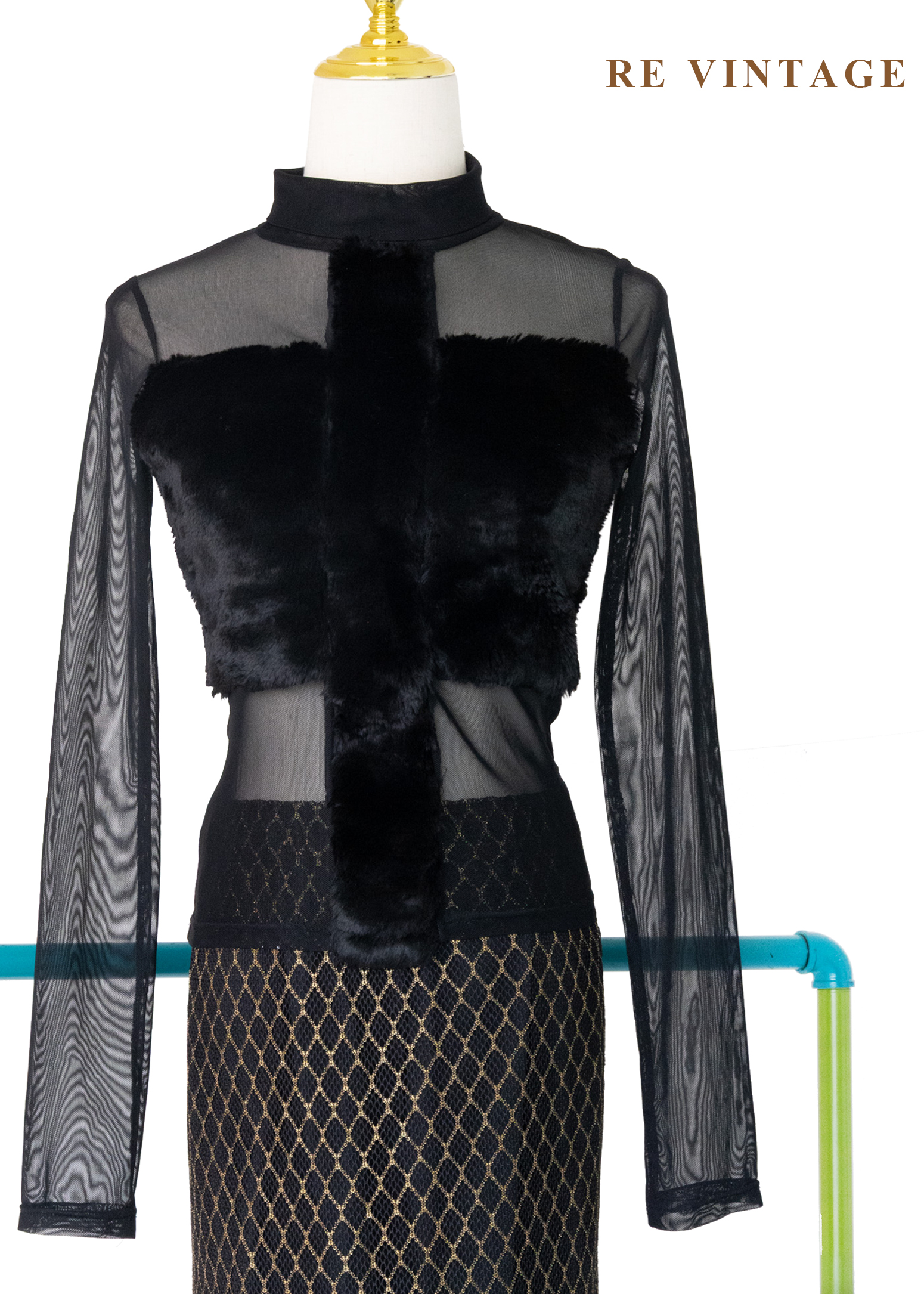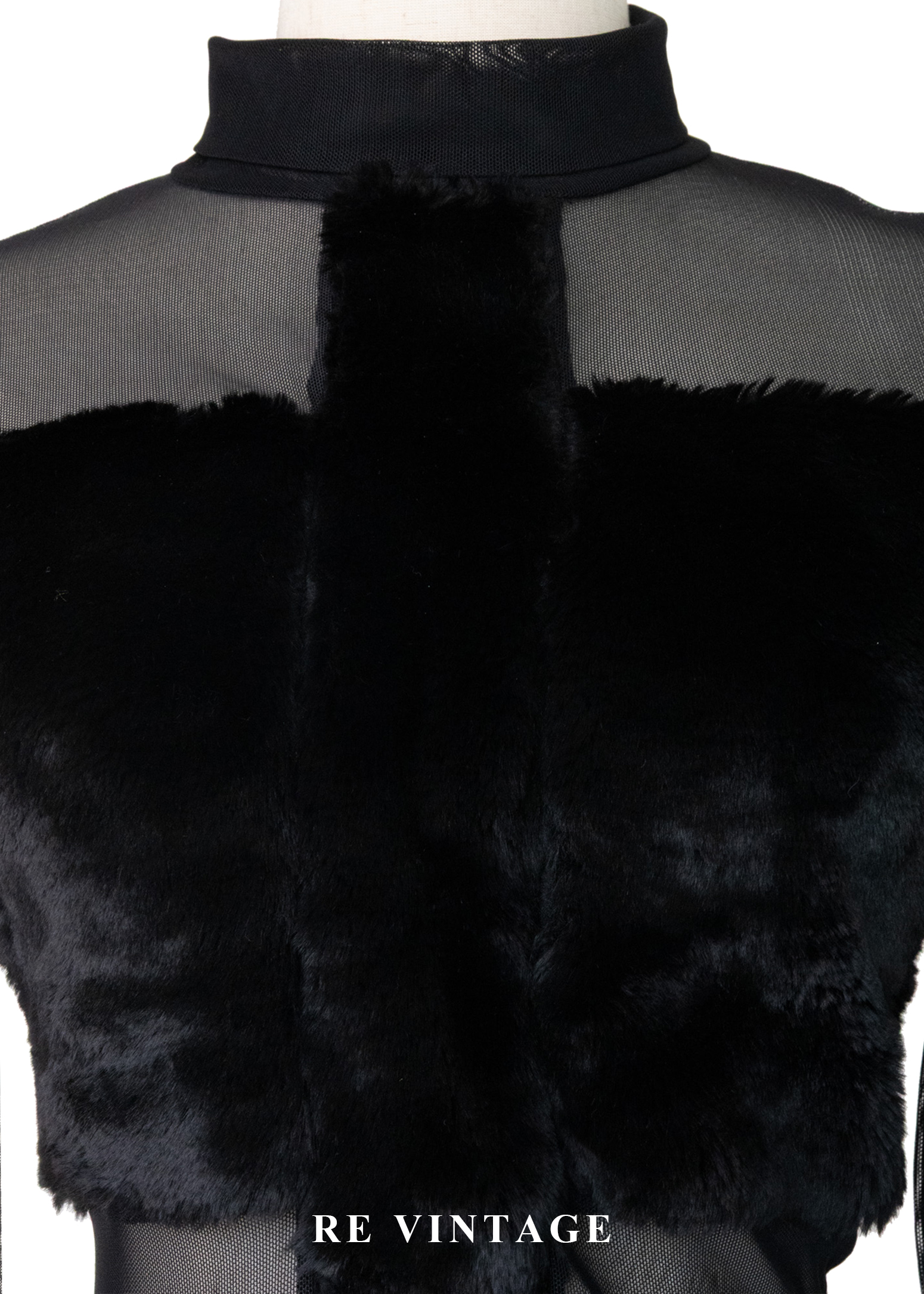 - 胸口毛料材質,不透膚,其他網紗部位透膚