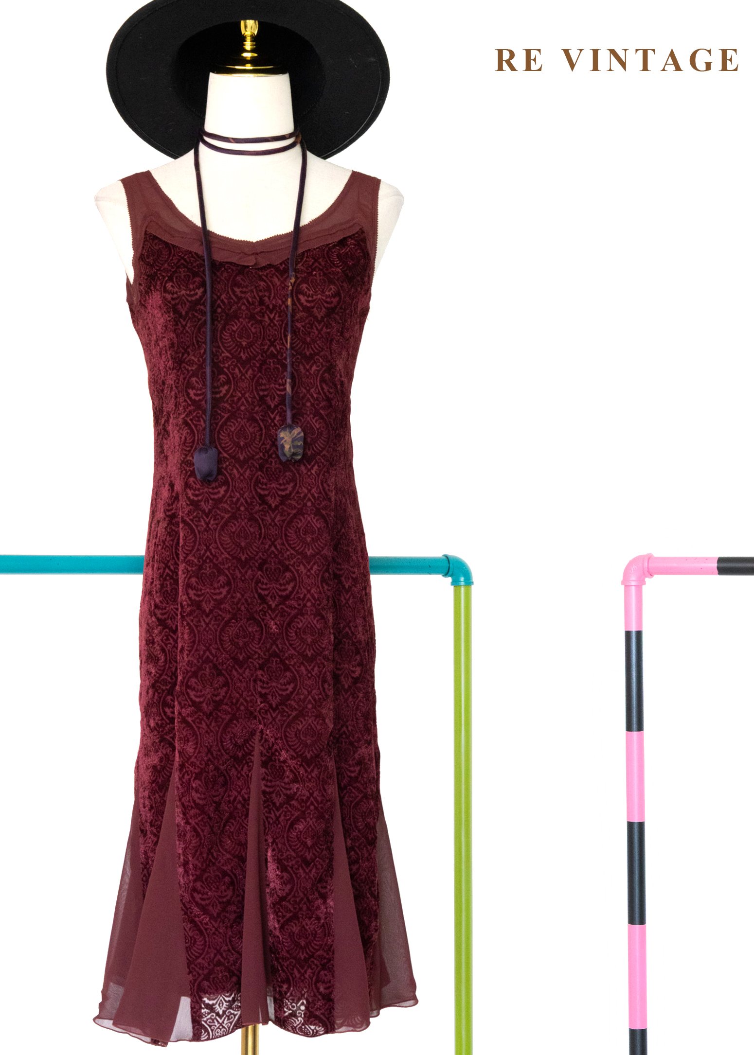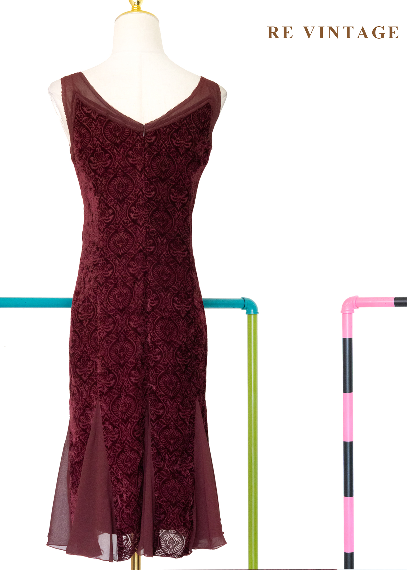 勃根地神秘古典浮雕絨布洋裝