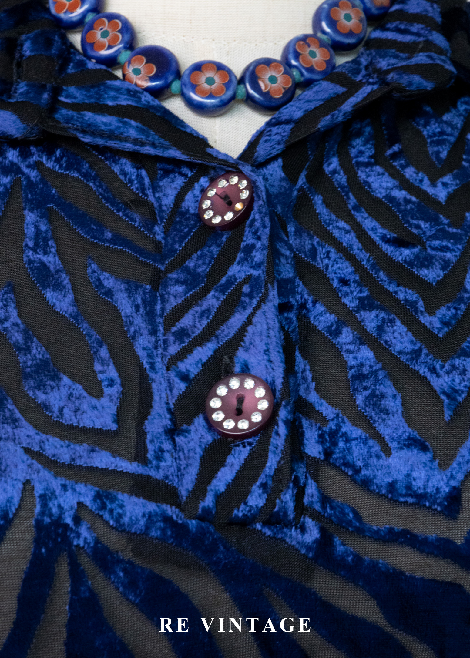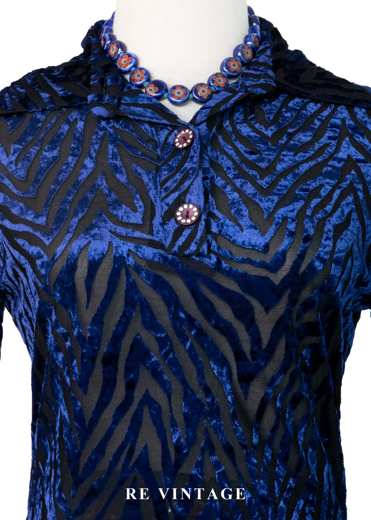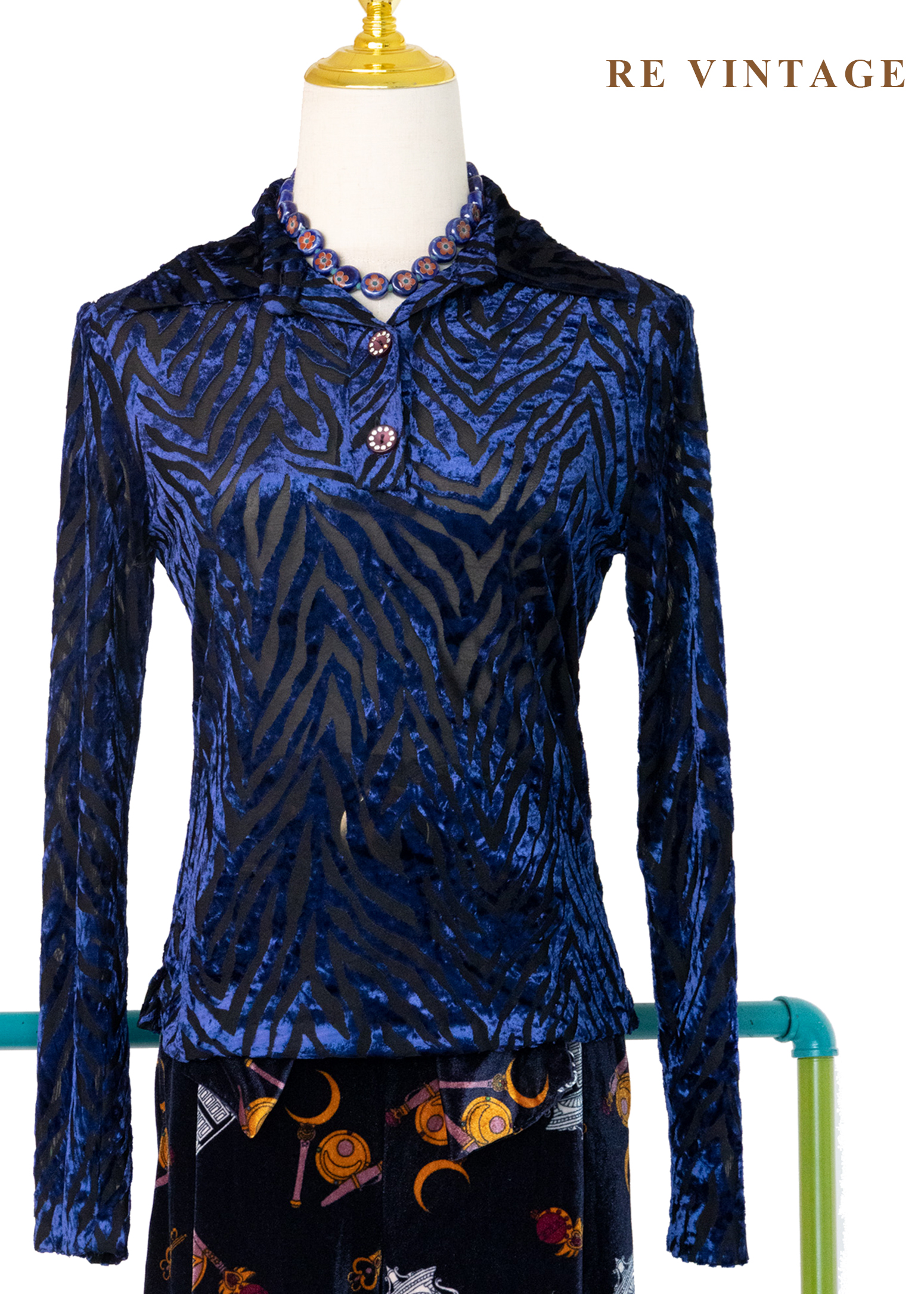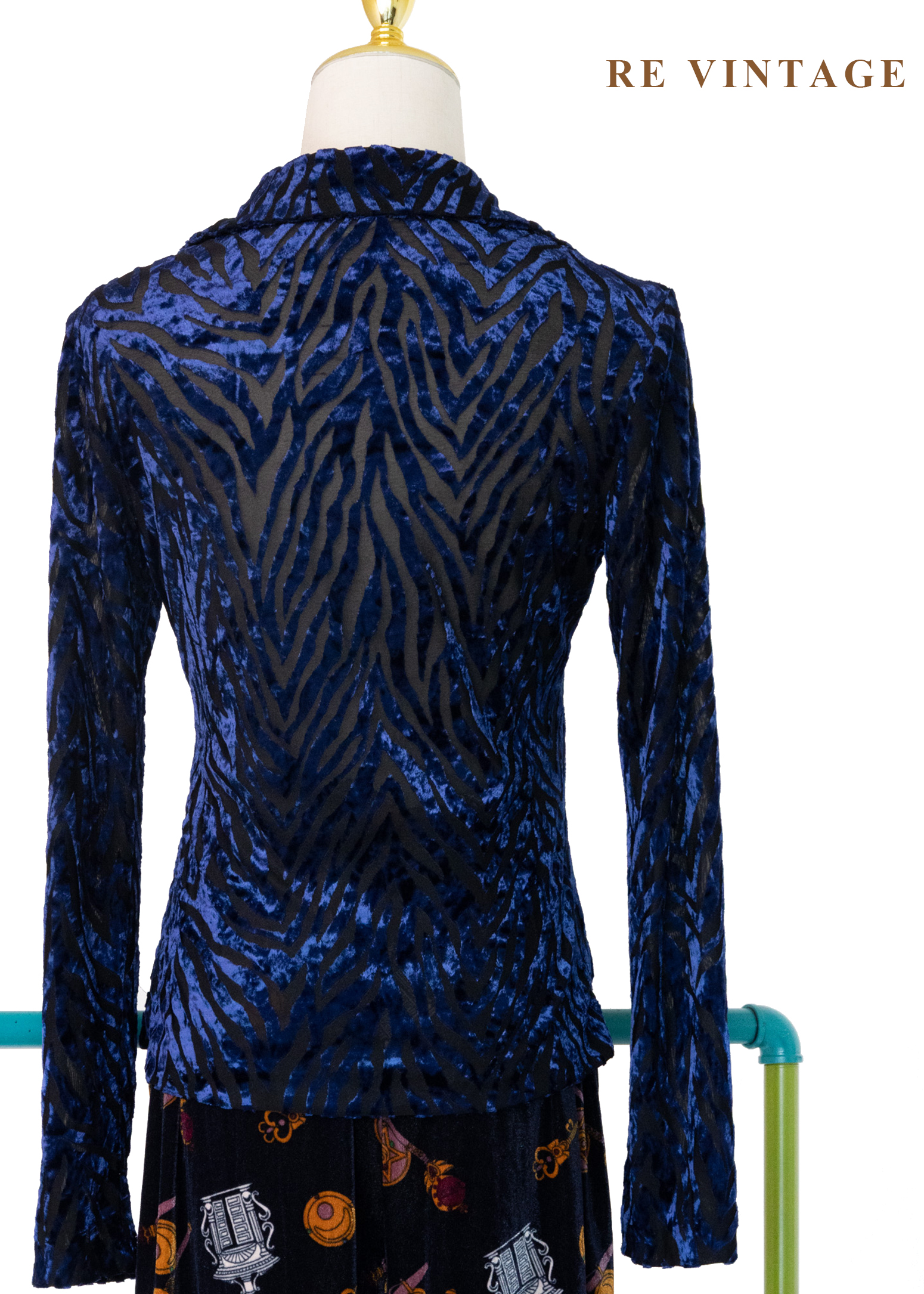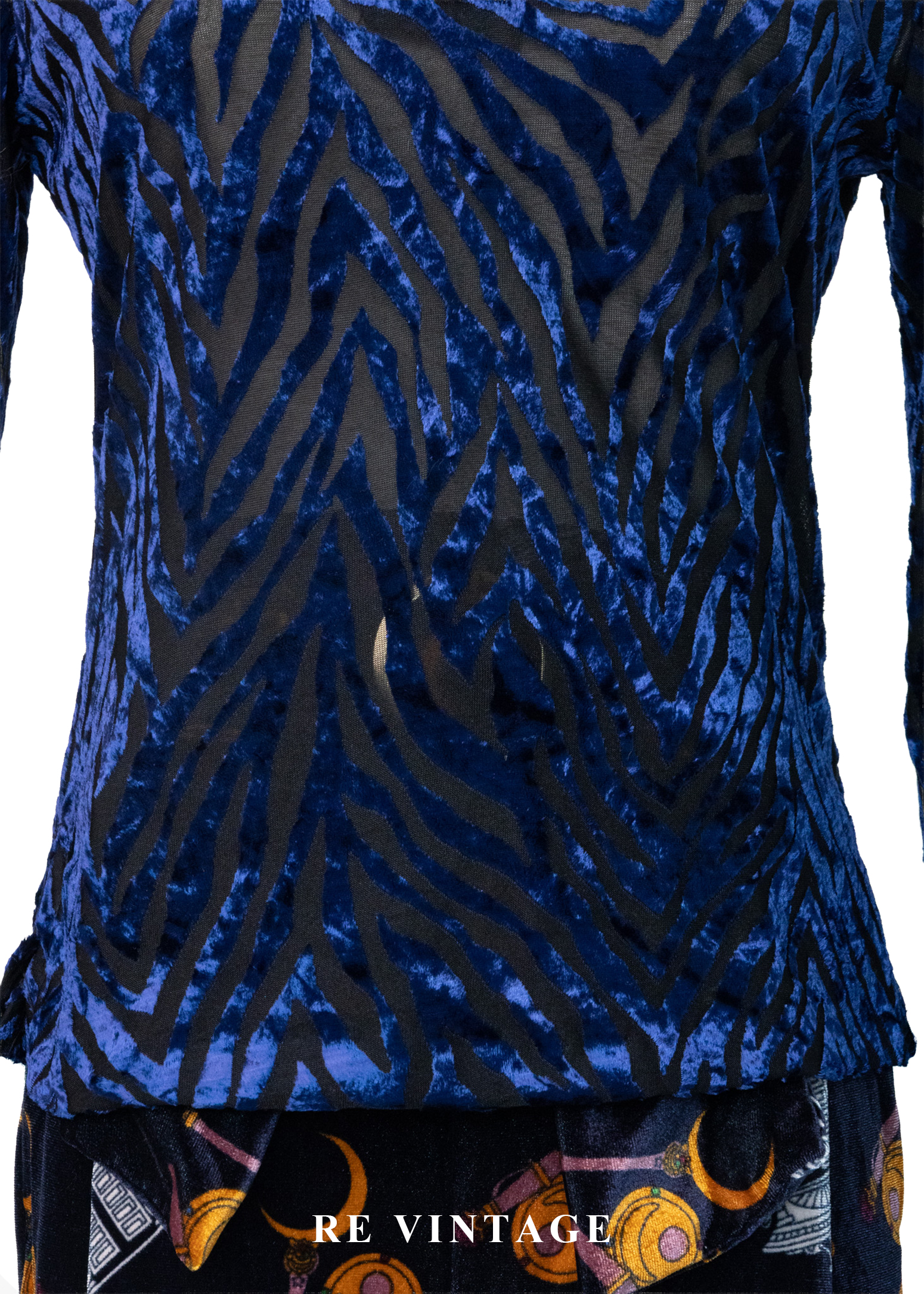 午夜藍燒絨斑馬紋上衣