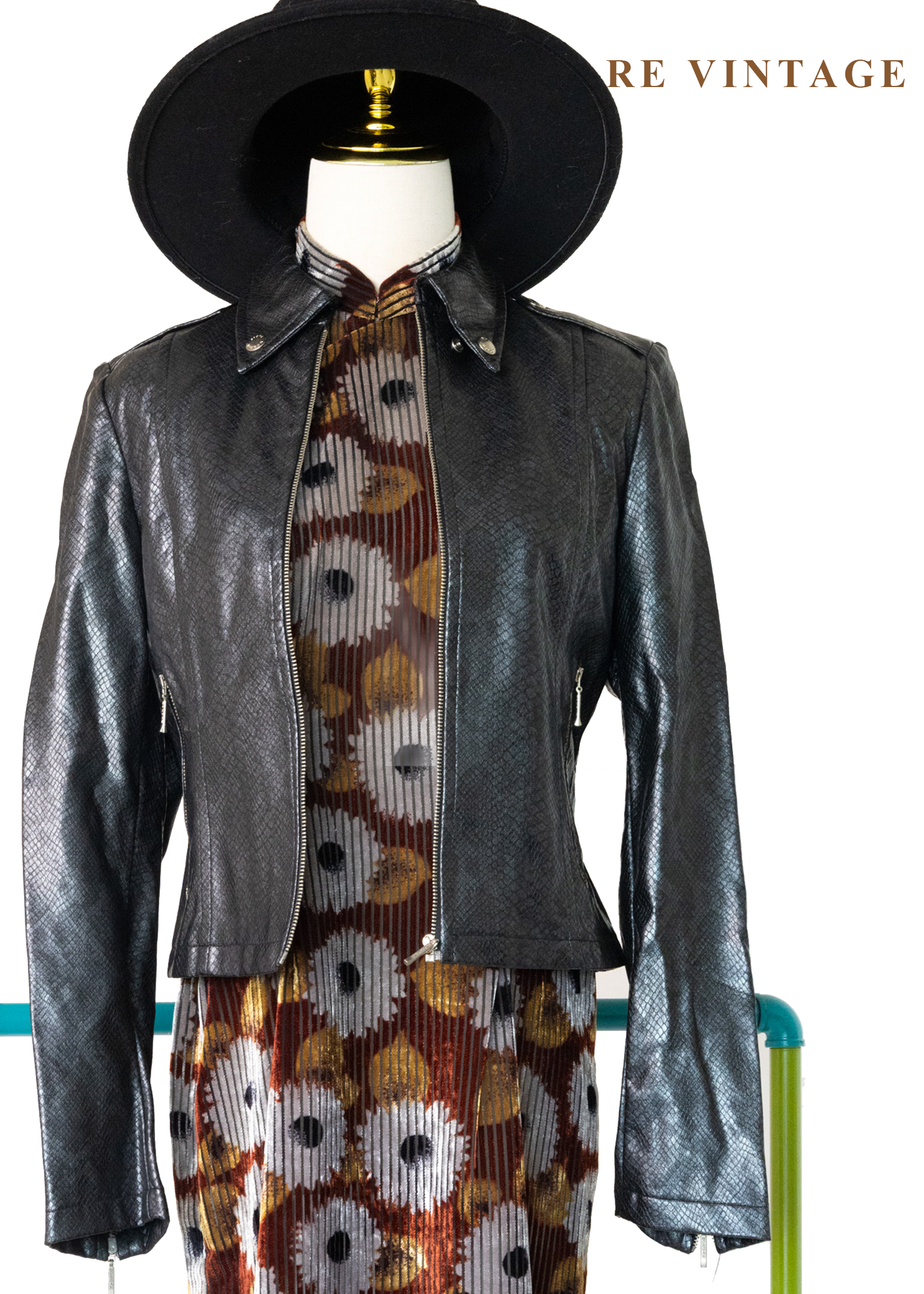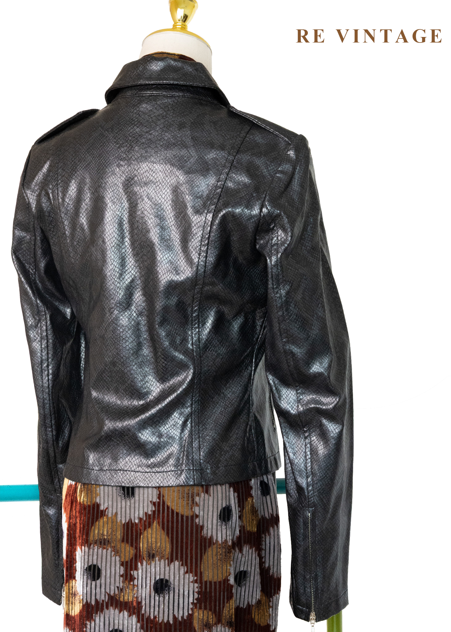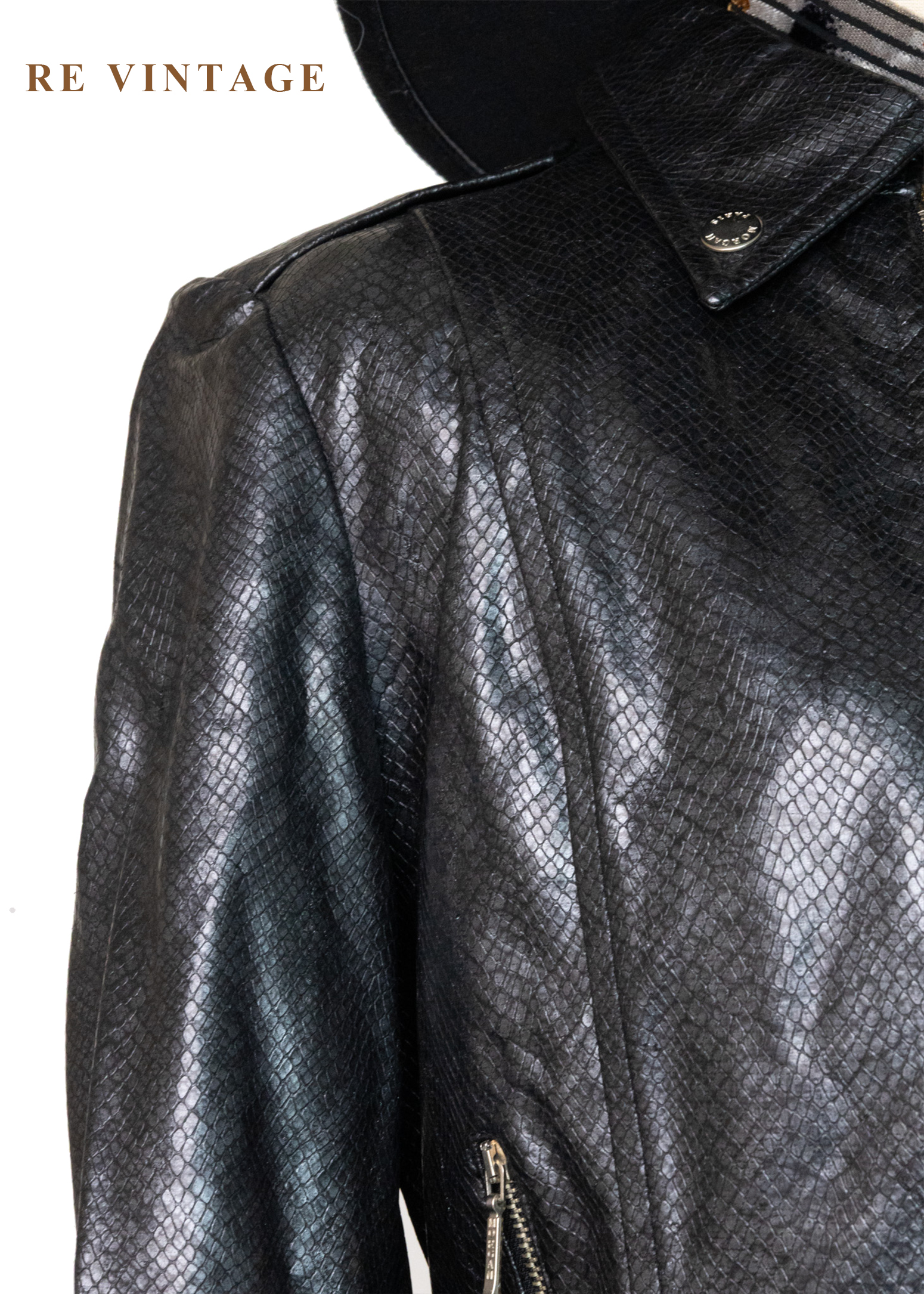 土耳其製 - 仿蛇皮壓紋光澤亮皮外套