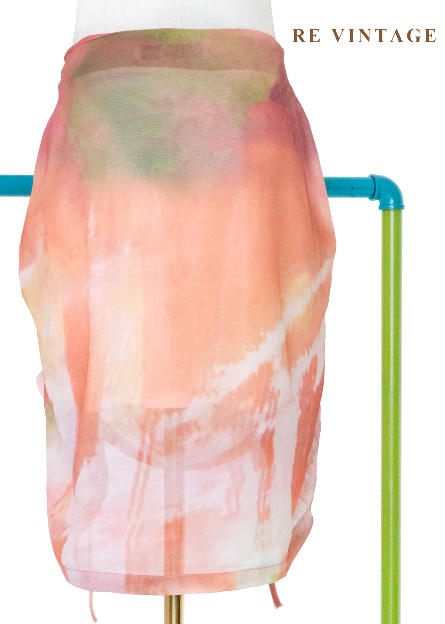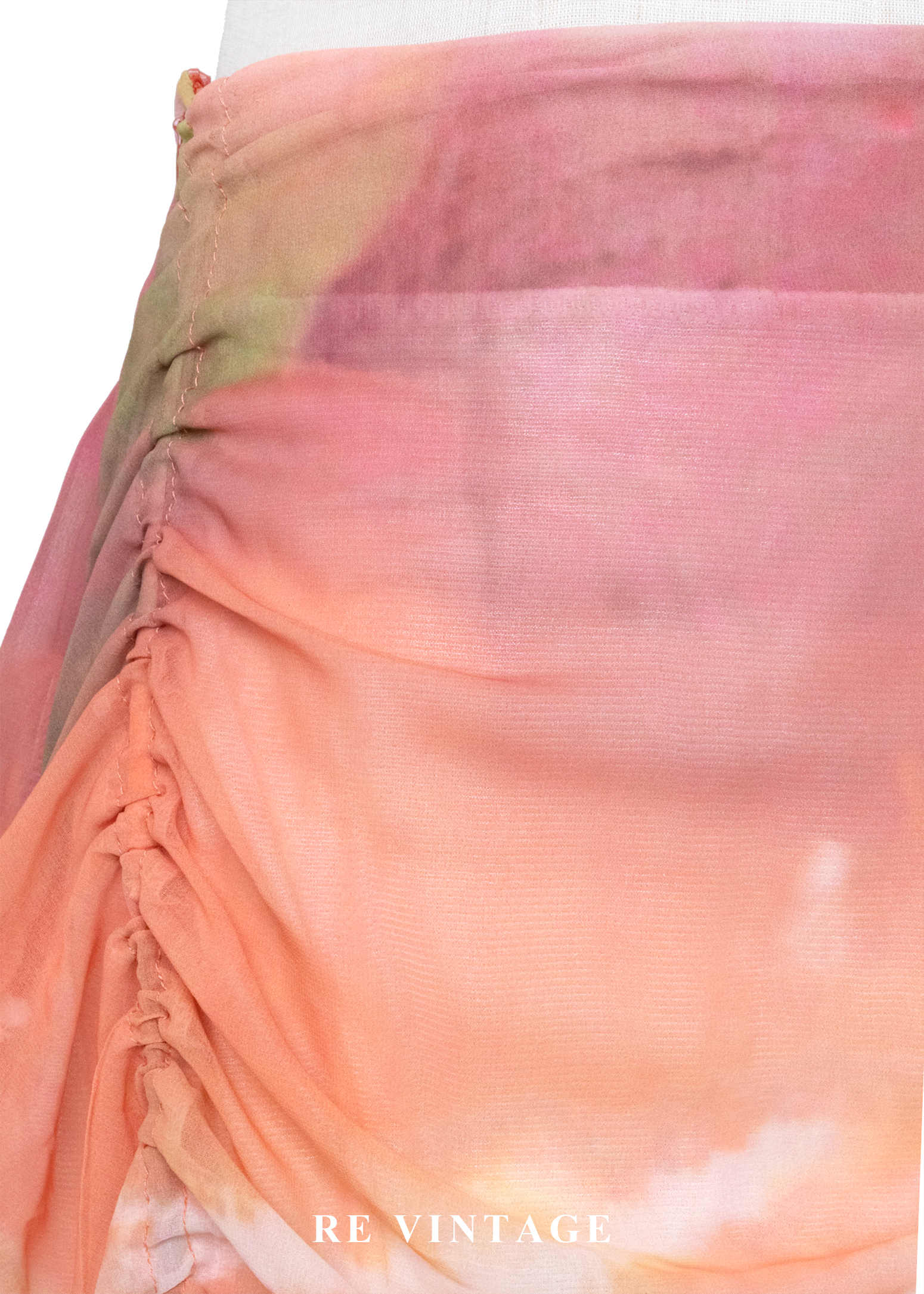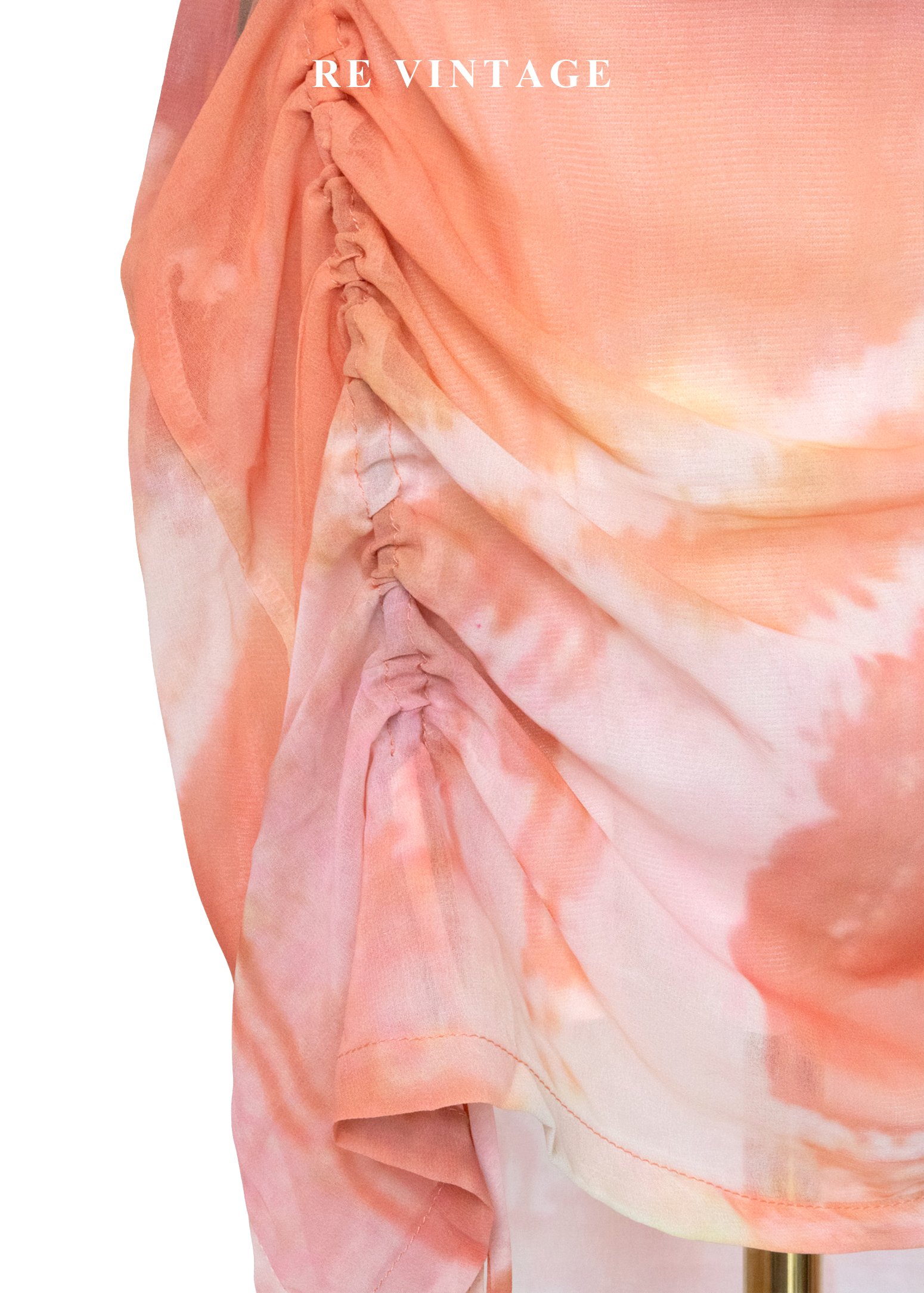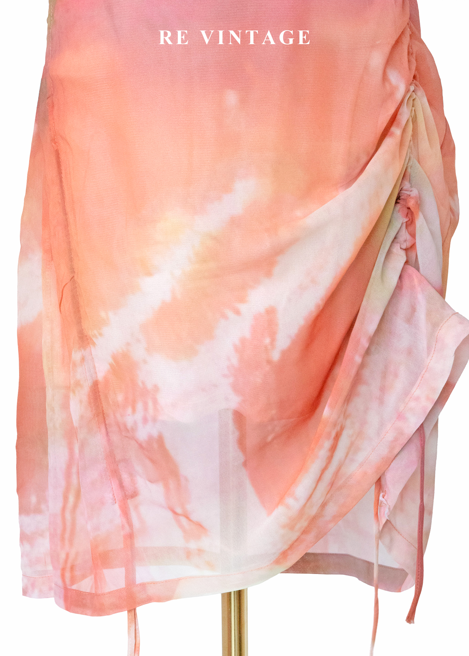 夕陽色的呼吸 - 暖橘渲染抽繩雪紡裙(27")
