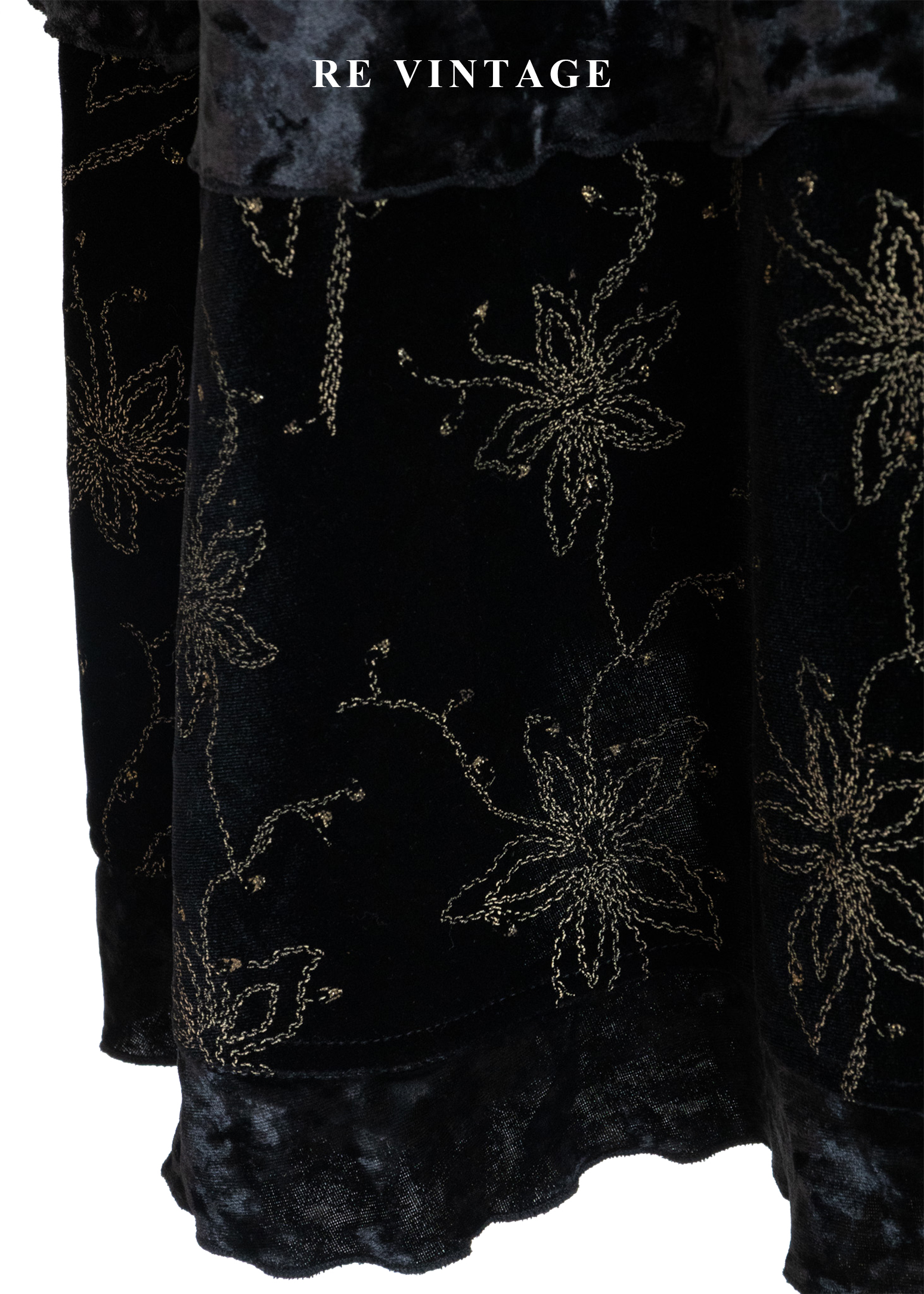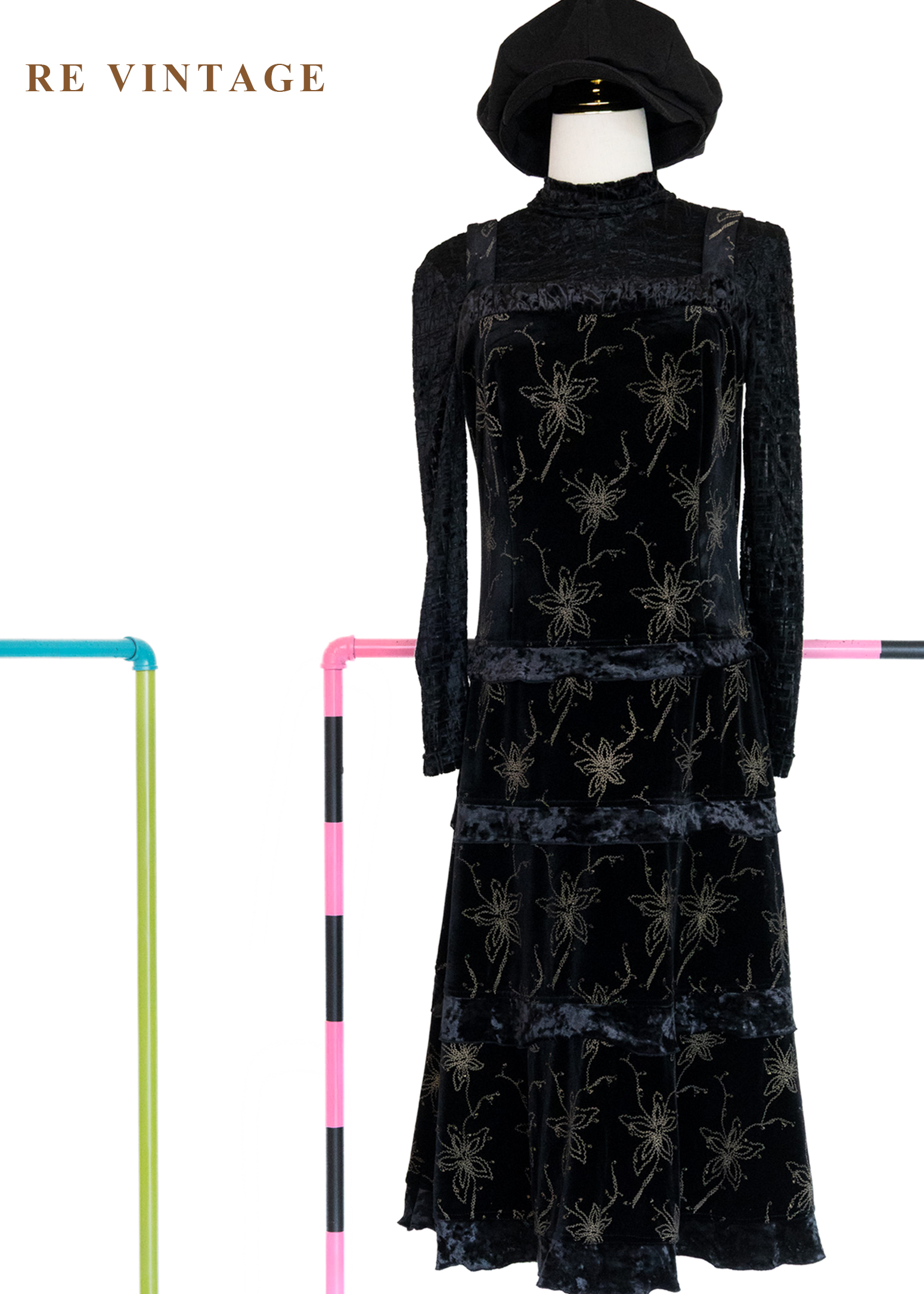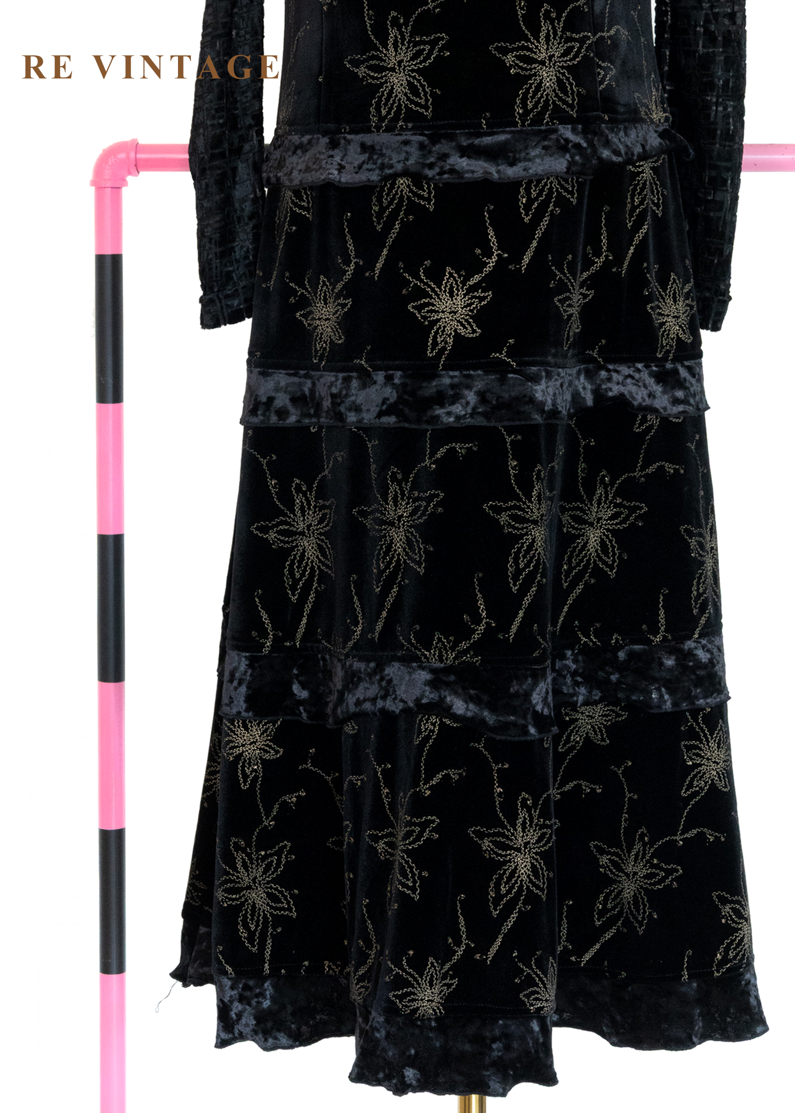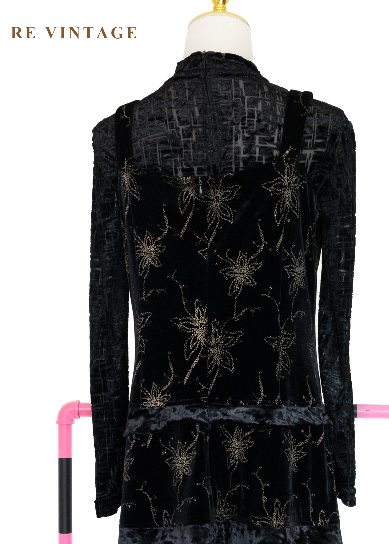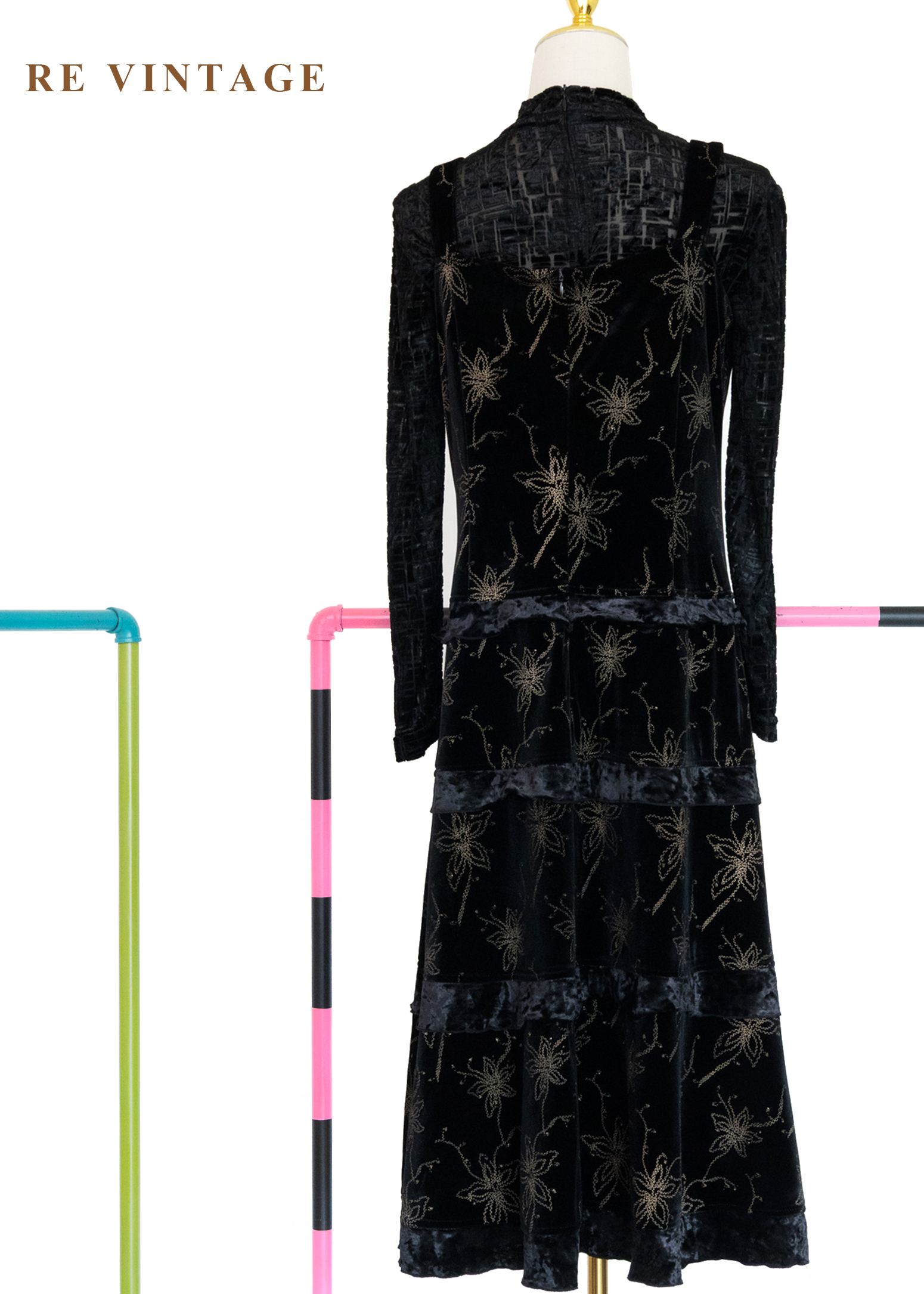 夜幕星軌金線百合黑絨長洋裝