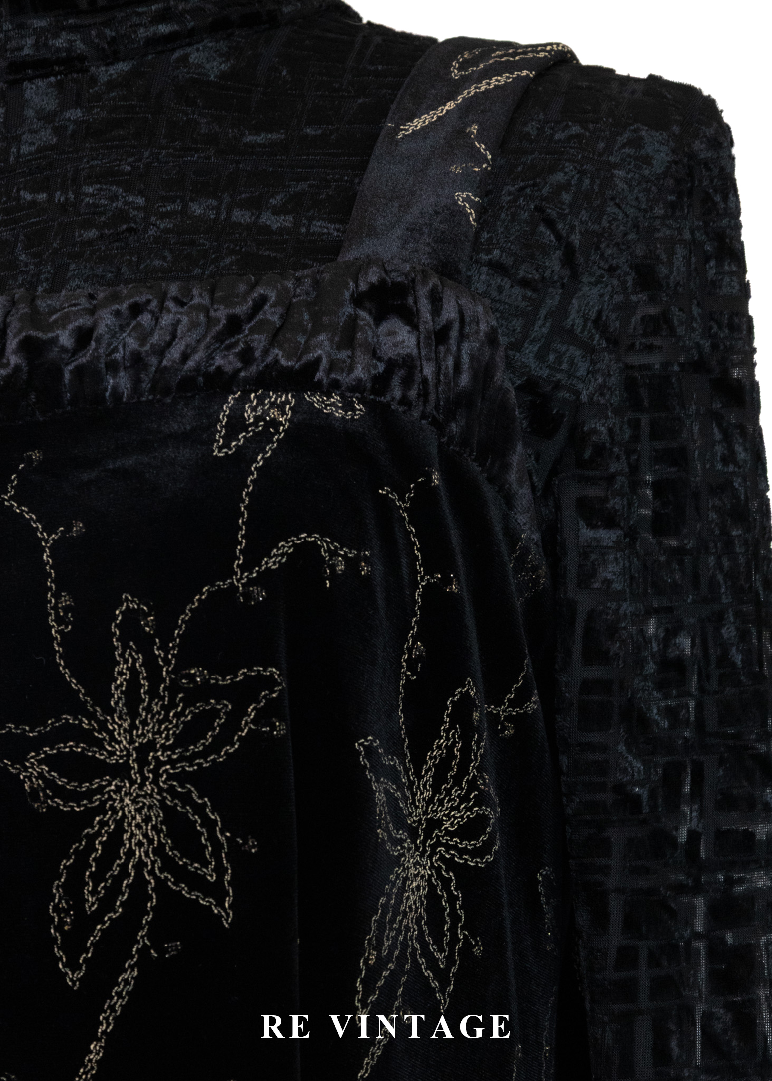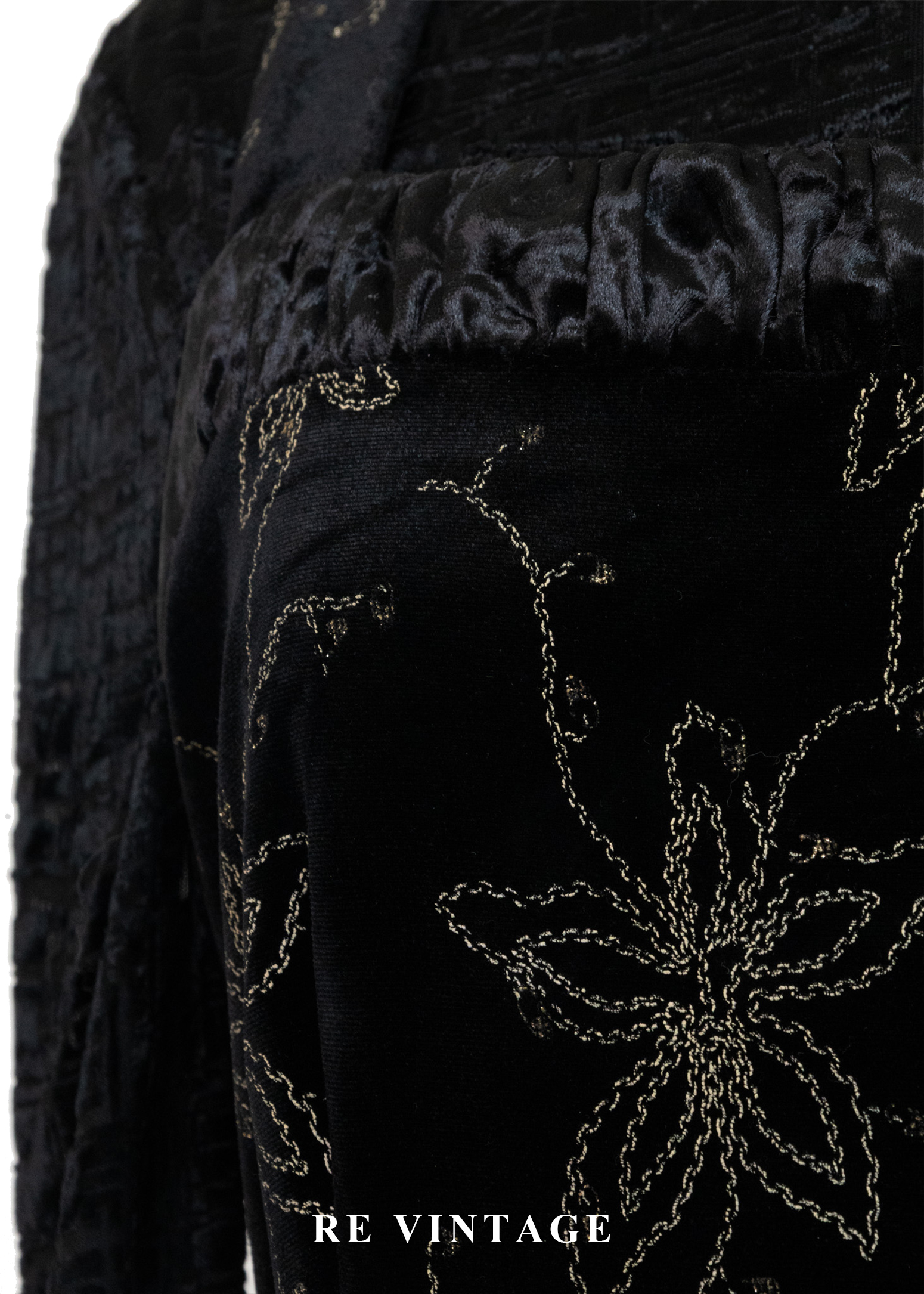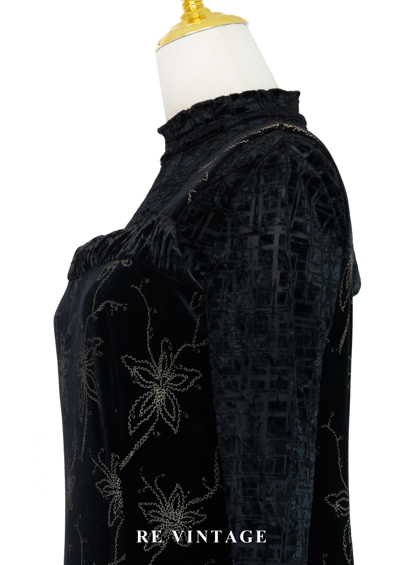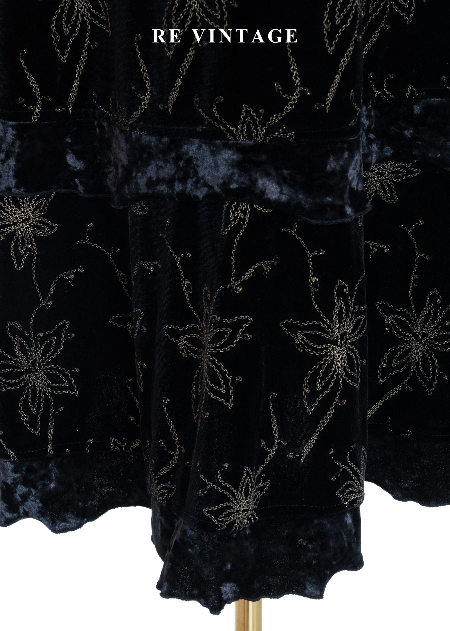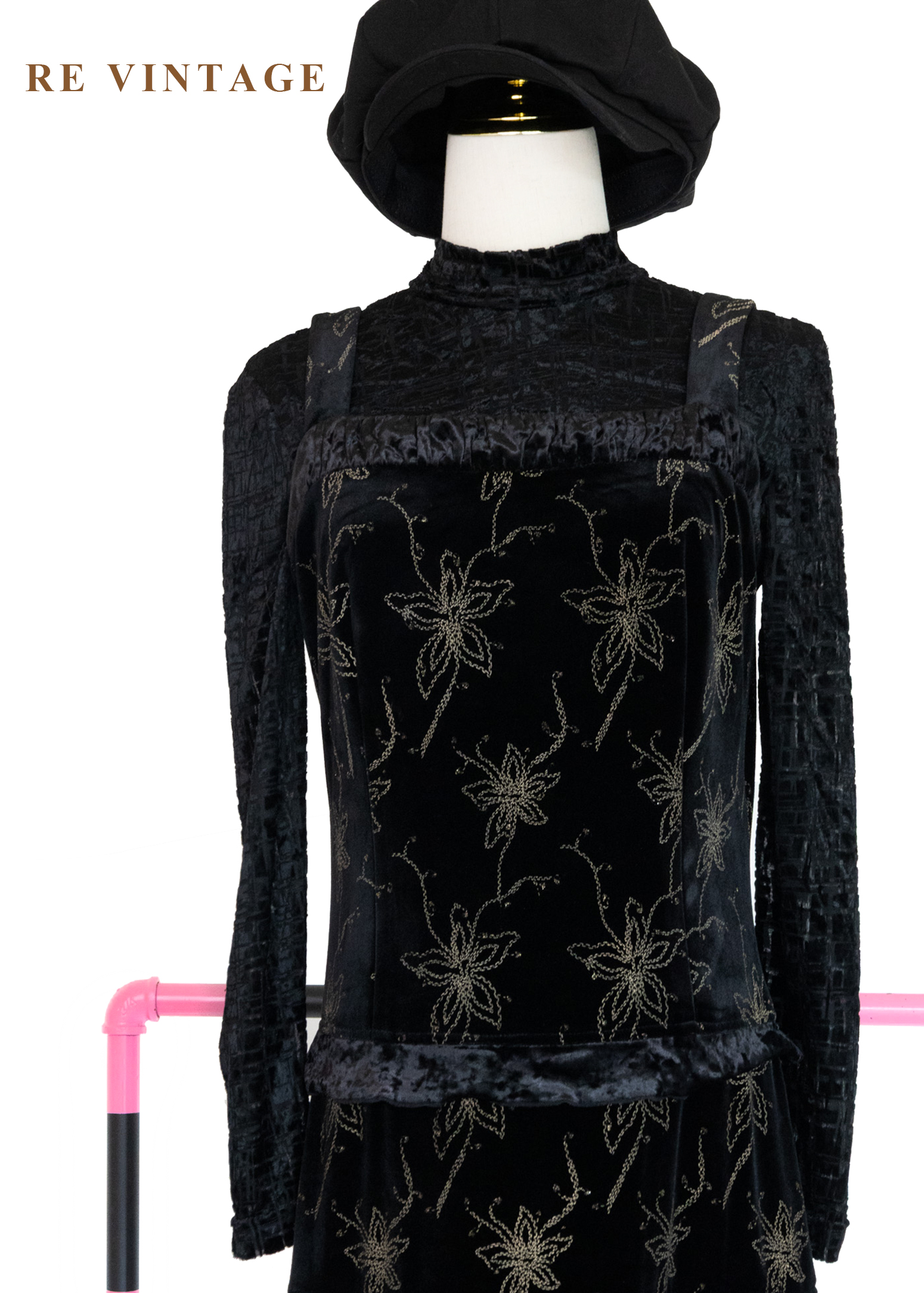 夜幕星軌金線百合黑絨長洋裝
