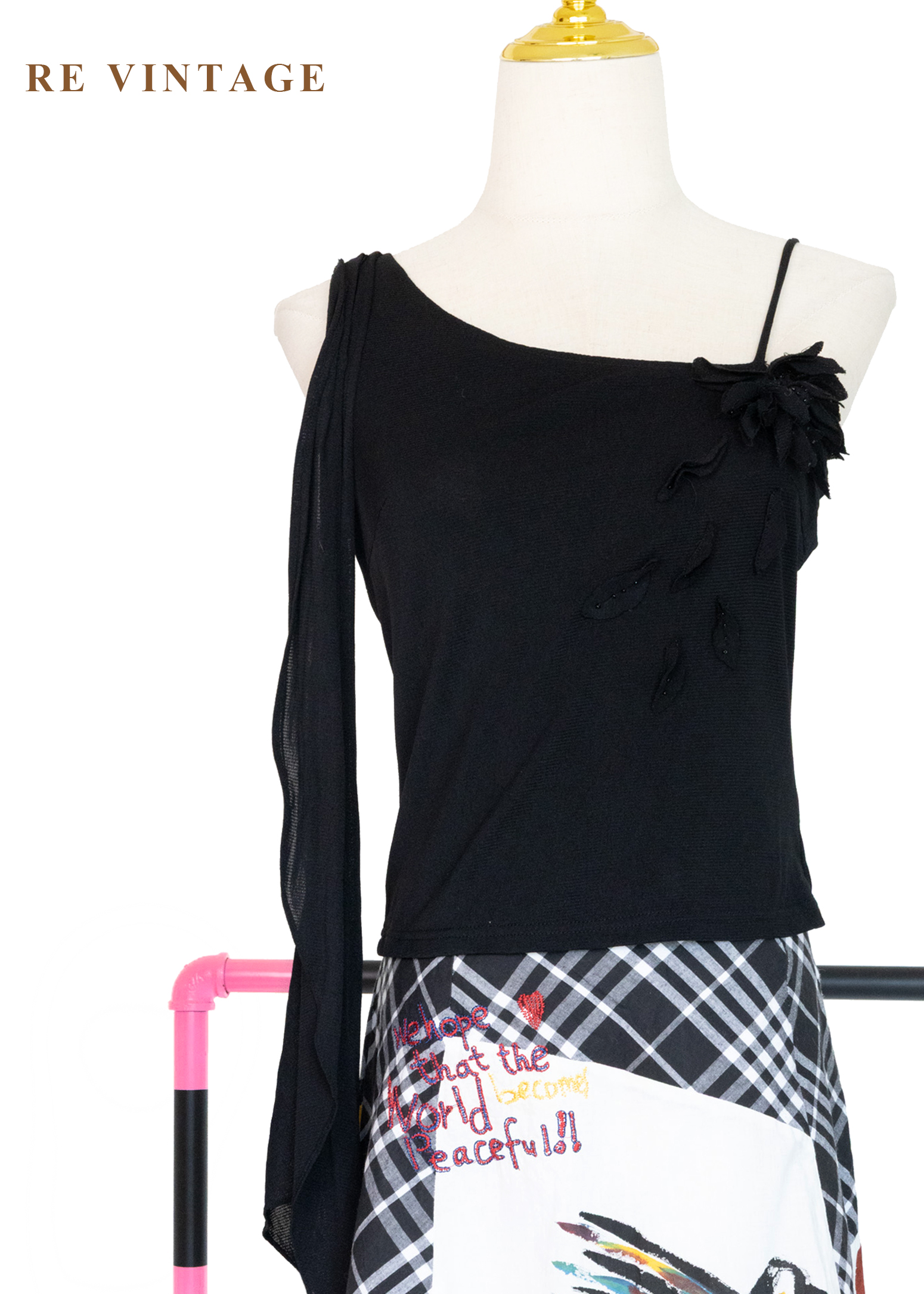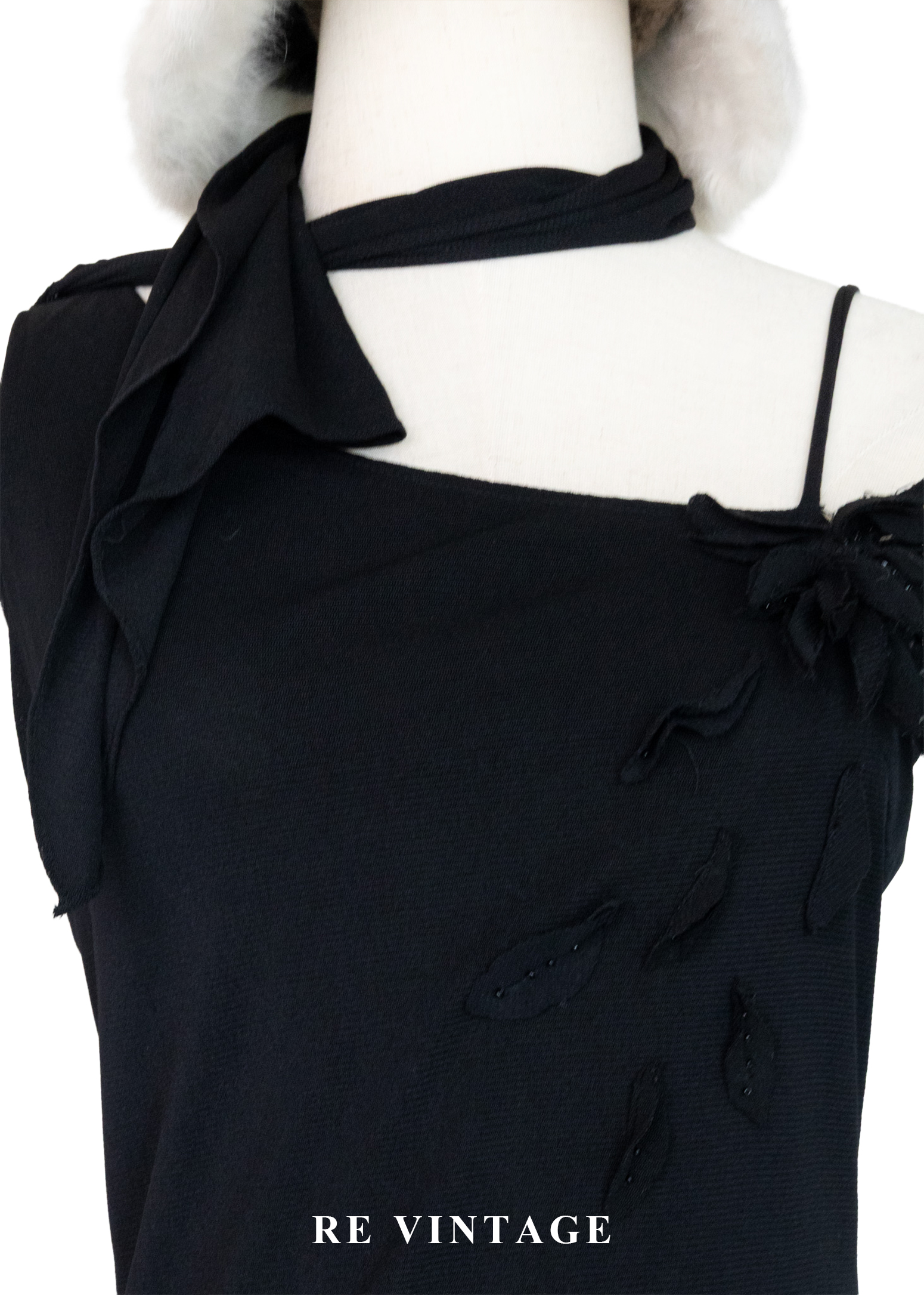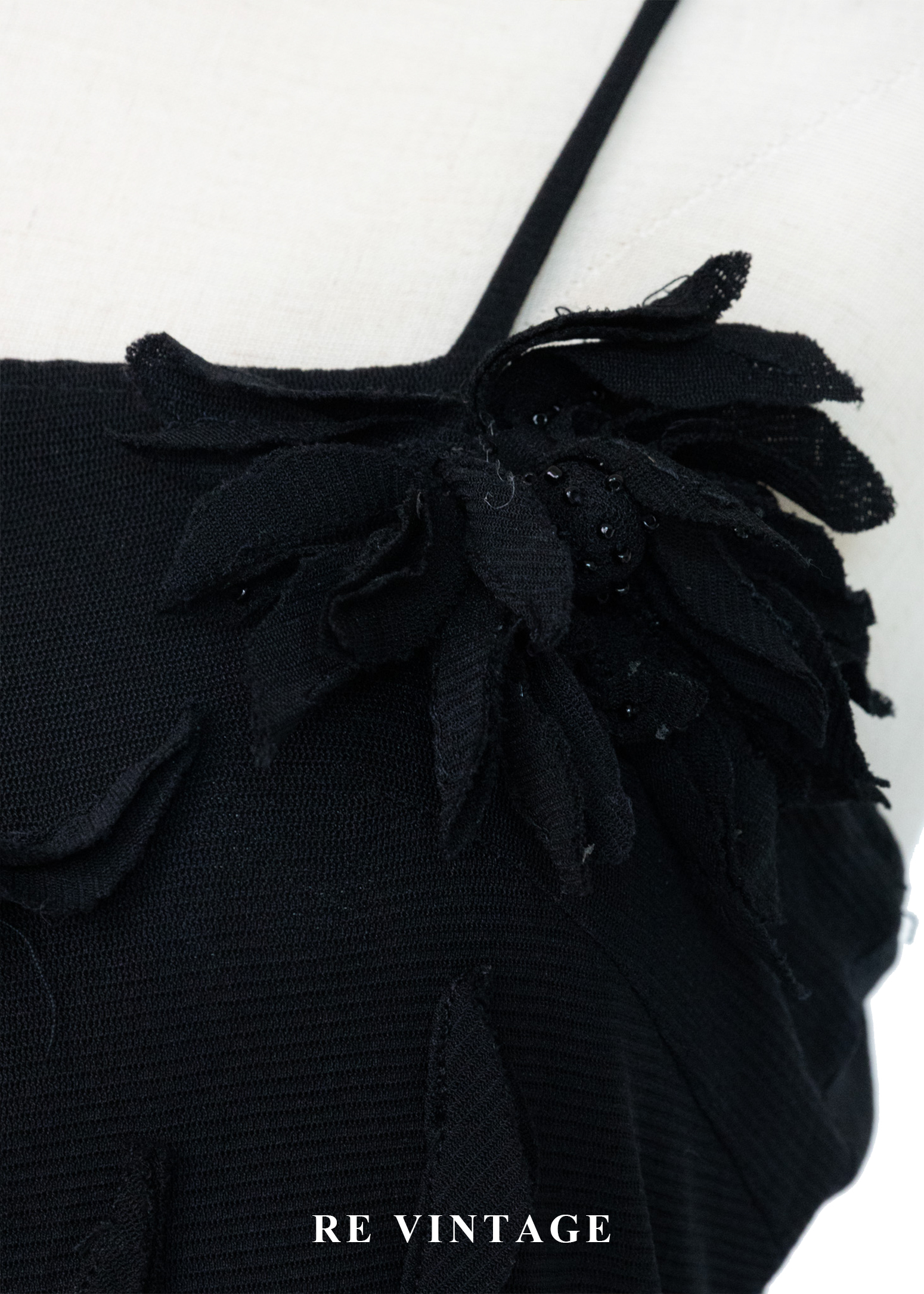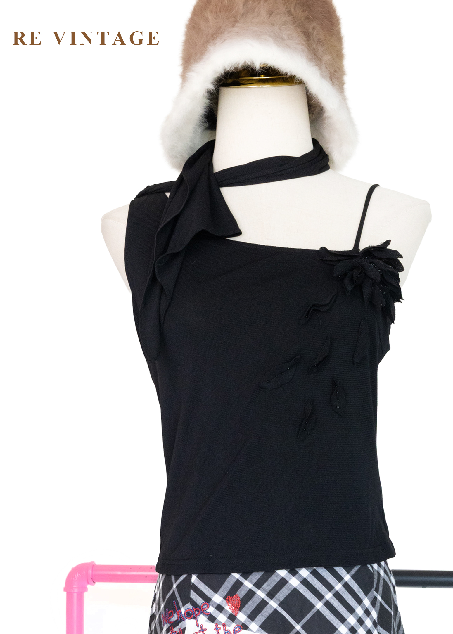 夜色交響曲 - 立體花卉不對稱細肩帶背心