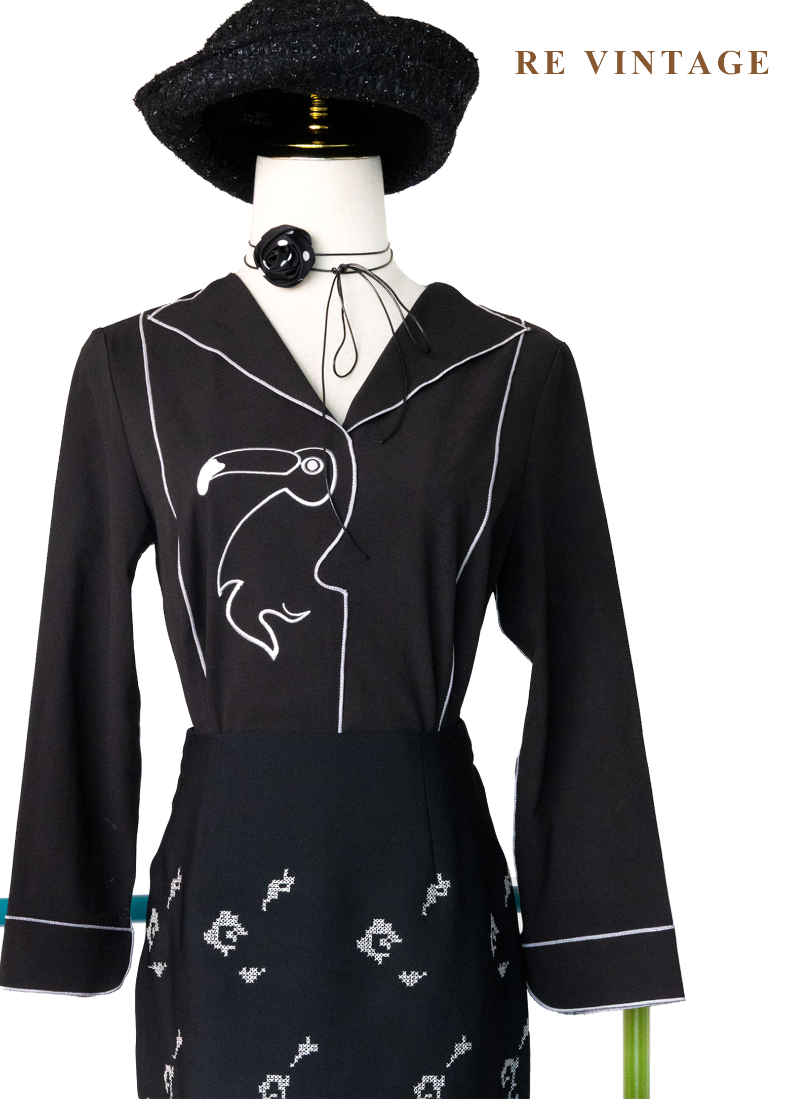 大嘴鳥幾何滾邊白線上衣