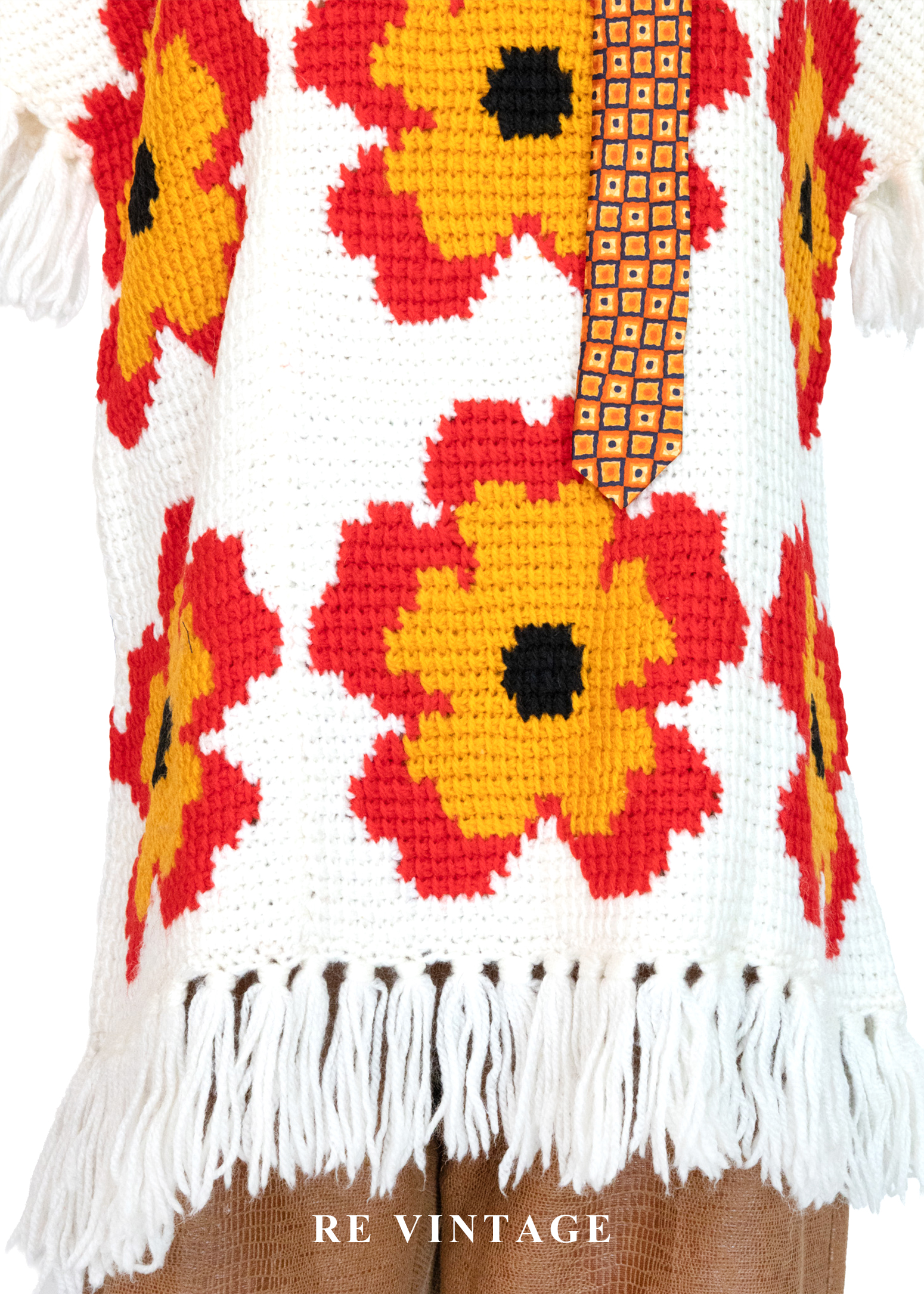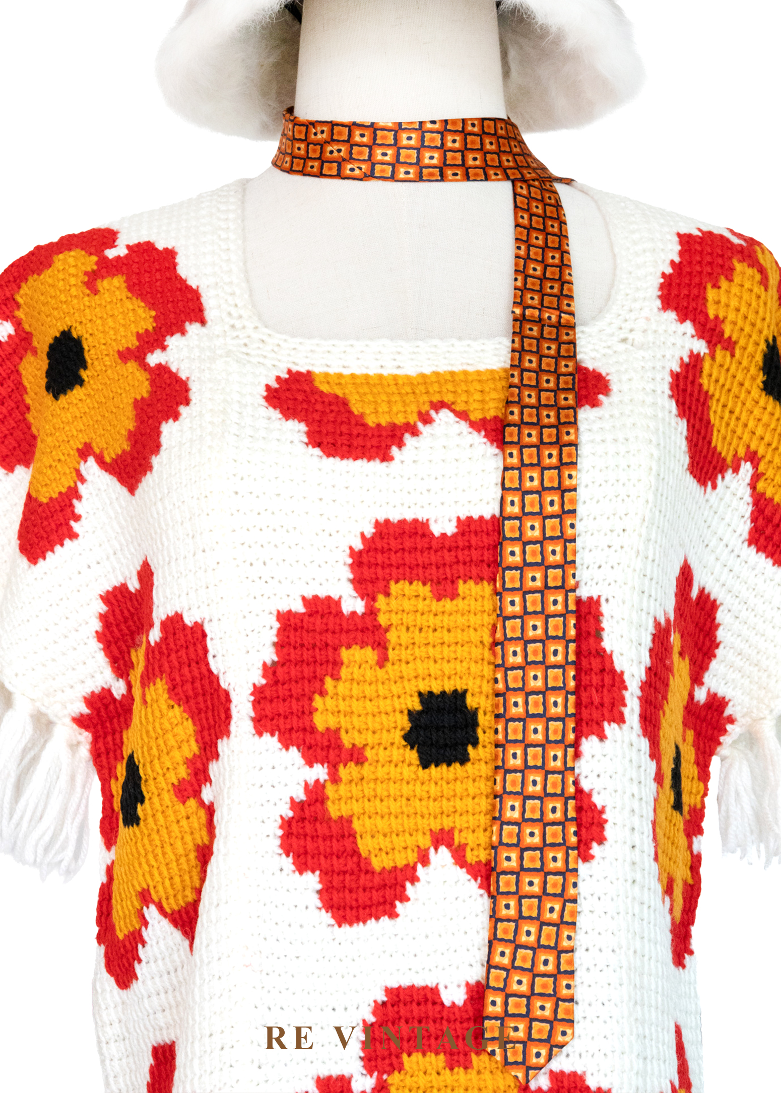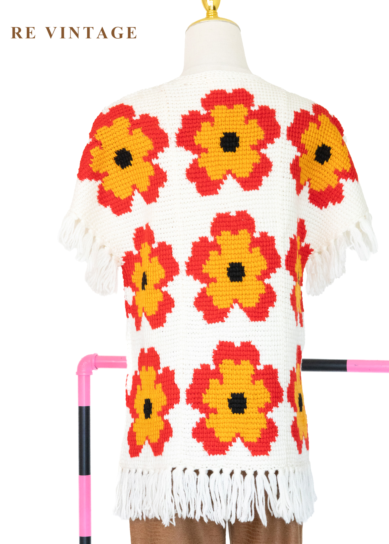 大紅花嬉皮白日夢像素針織上衣