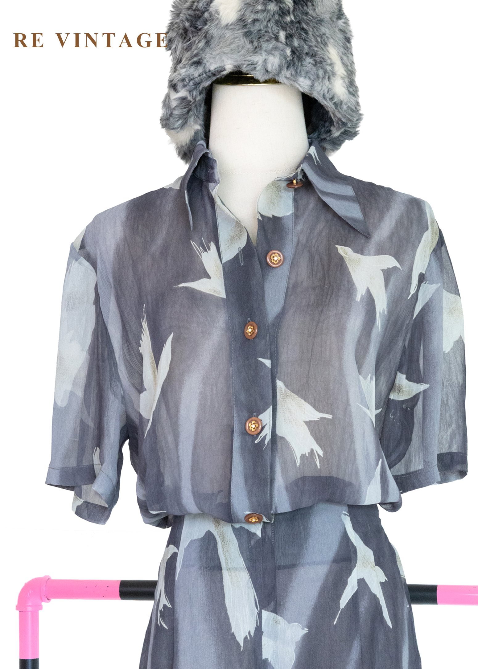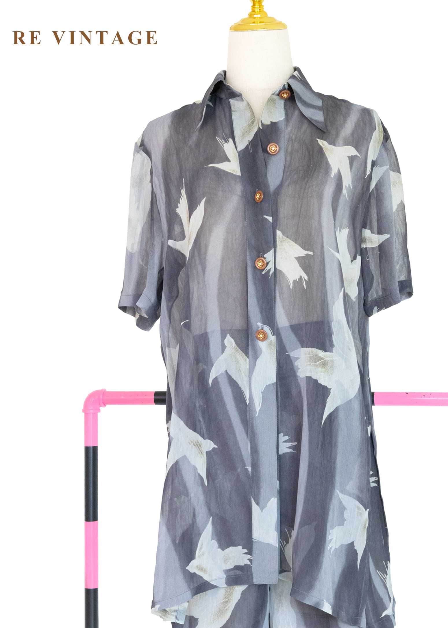 套裝上衣 - 煙雨霧色裡的飛鳥上衣