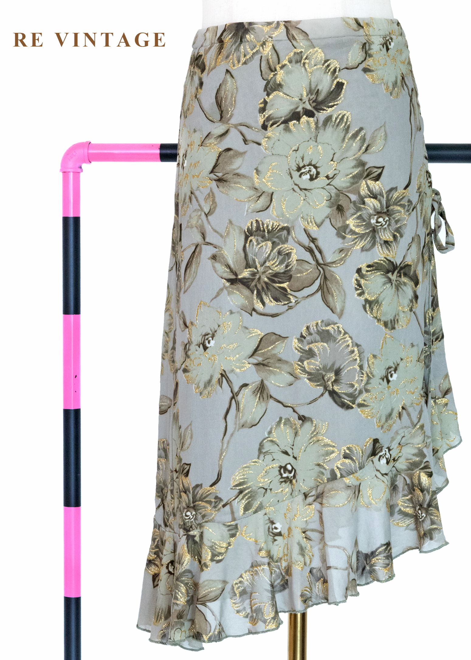 套裝裙子 - 金色午後的華麗金線勾勒花卉裙(26-29")