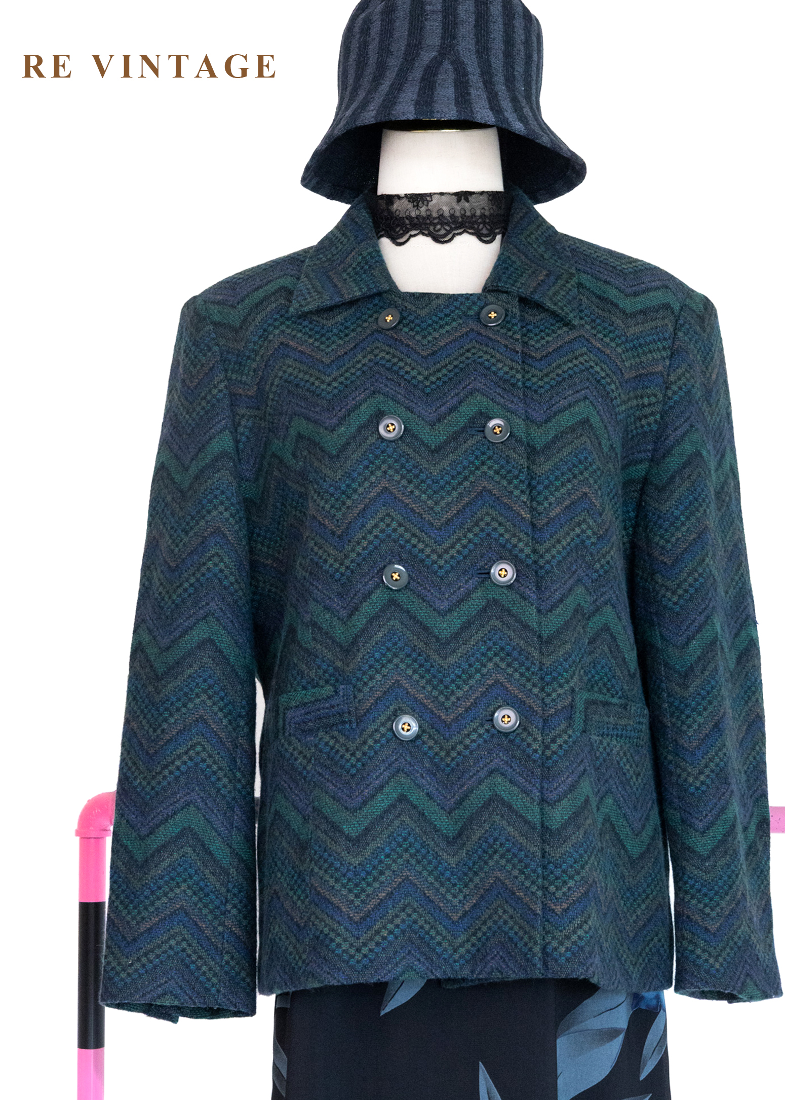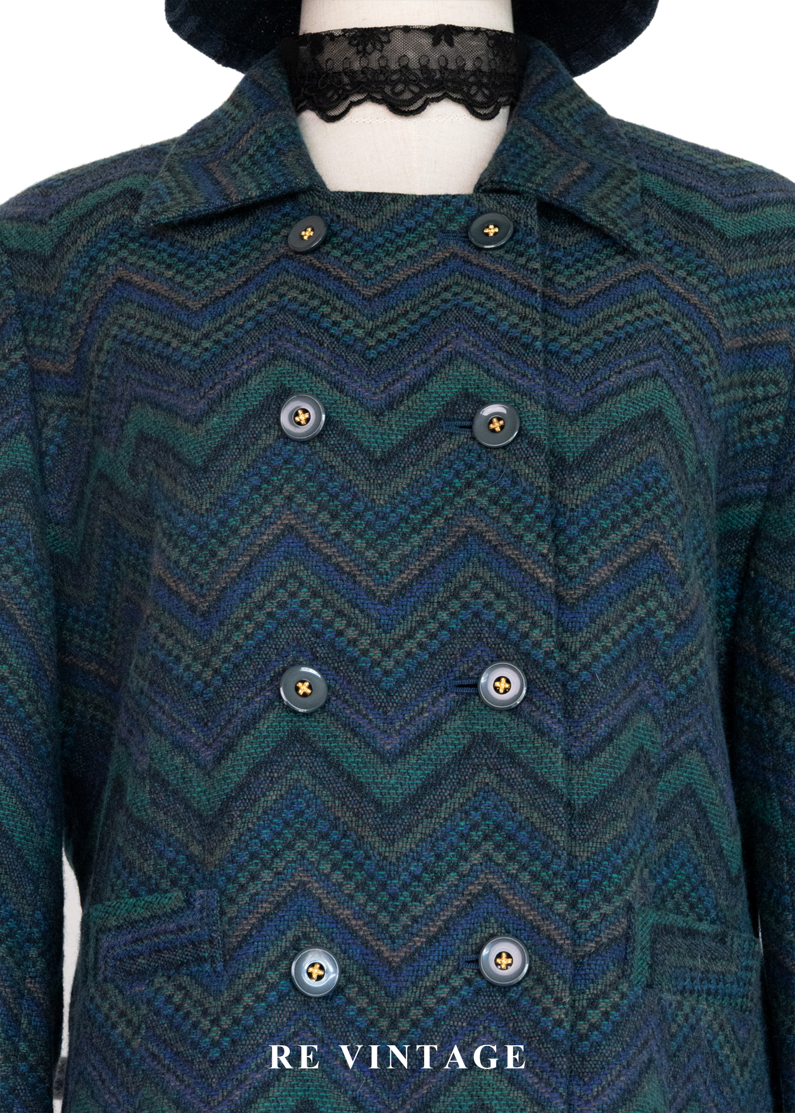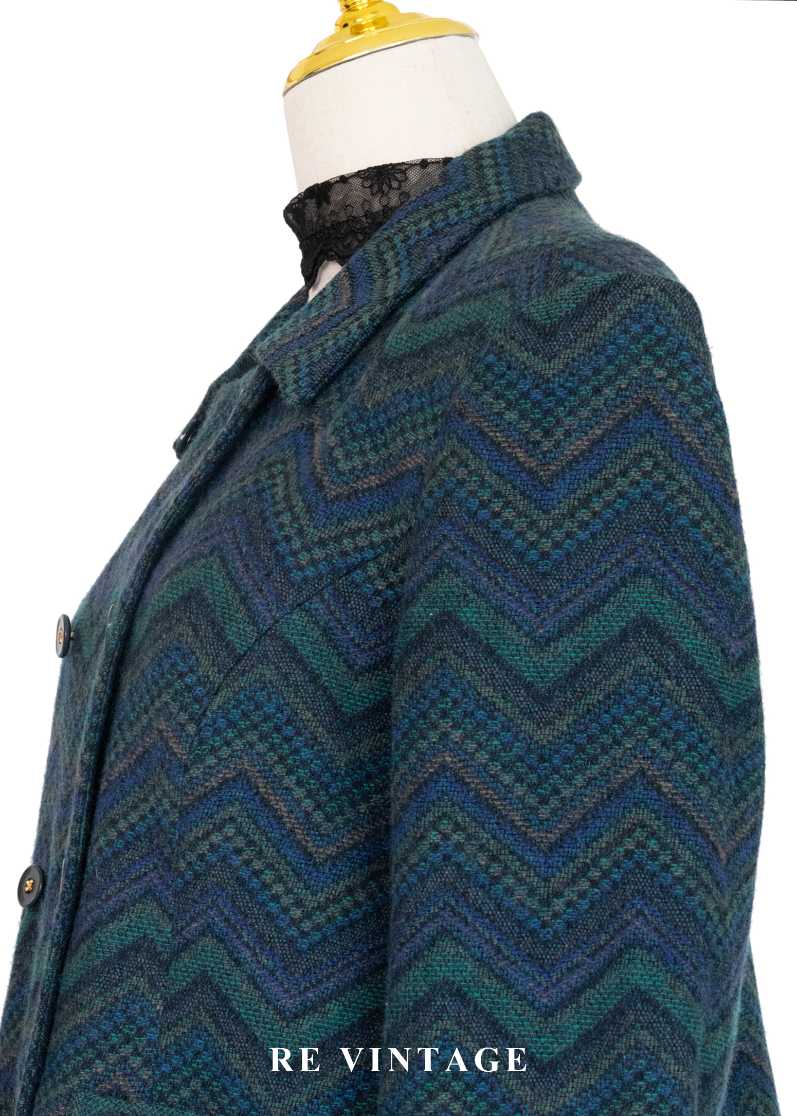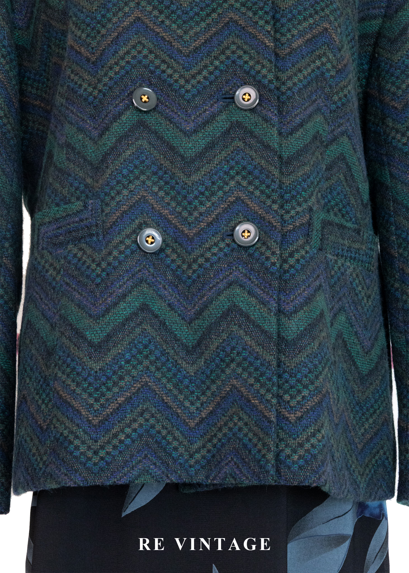 孔雀綠復古鋸齒紋雙排釦西裝外套
