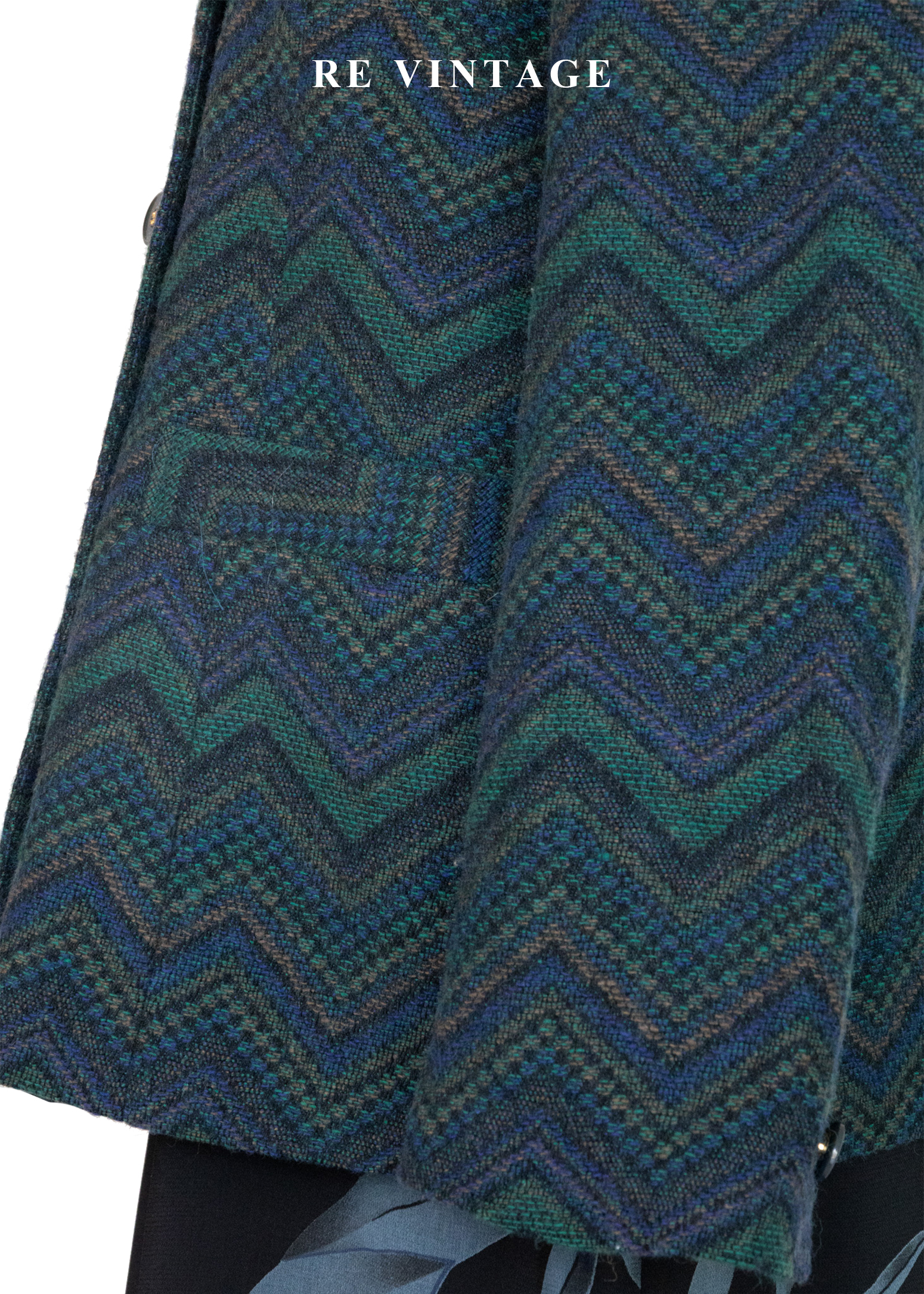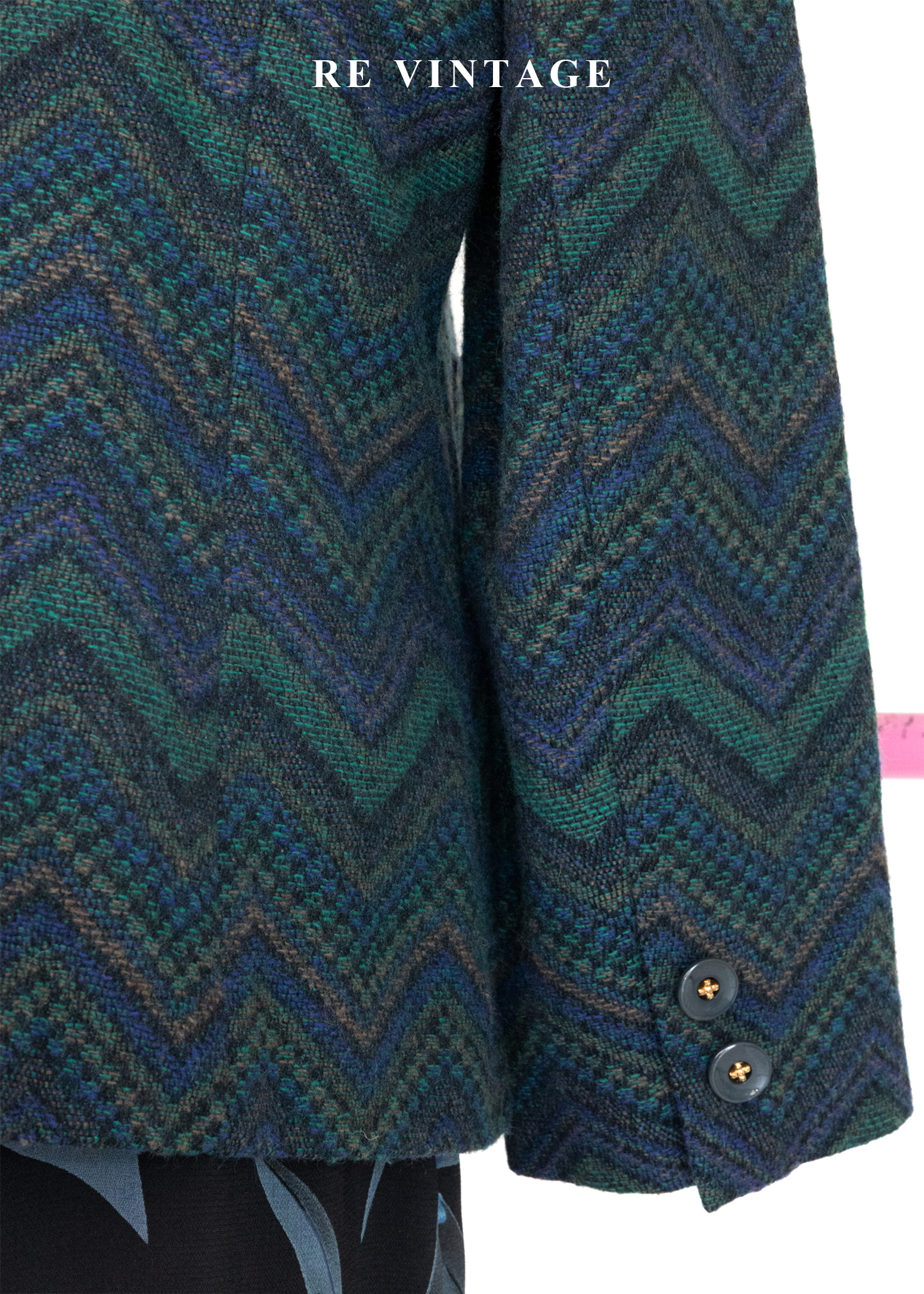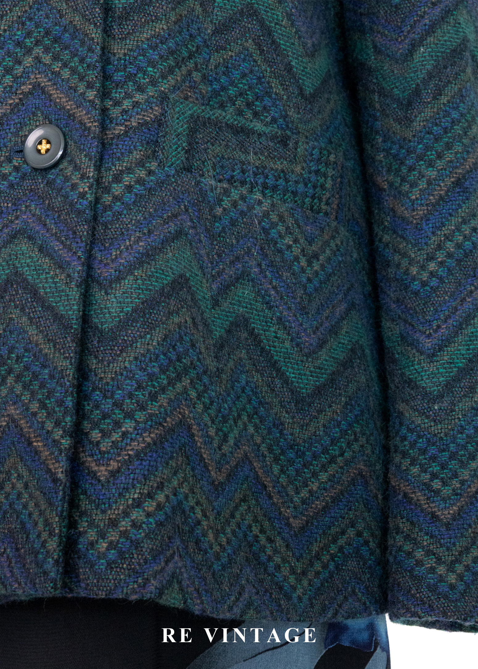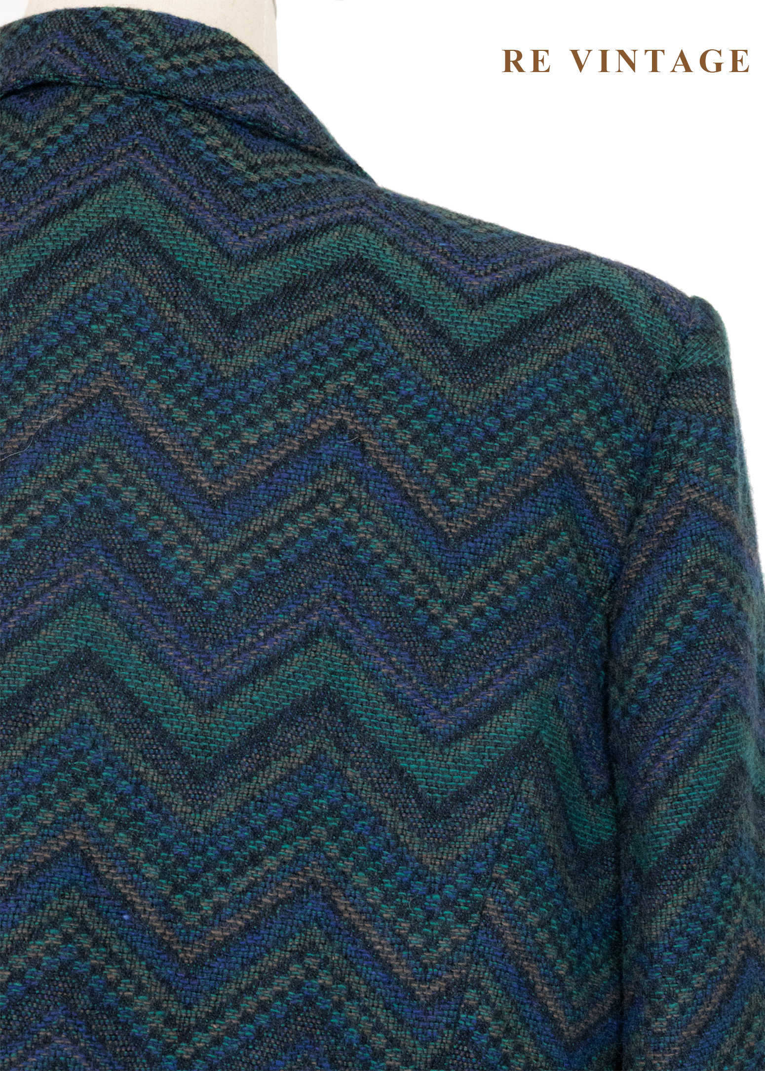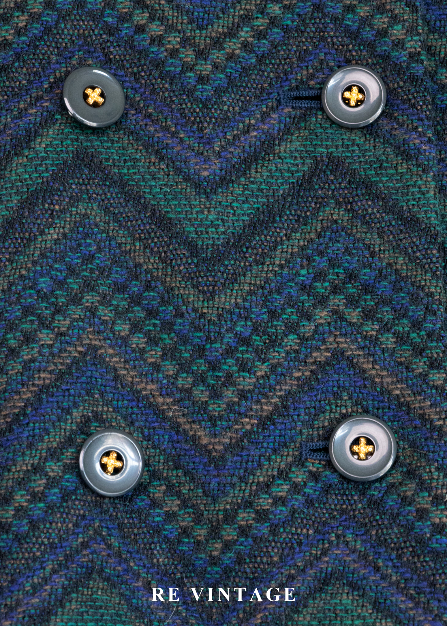 孔雀綠復古鋸齒紋雙排釦西裝外套