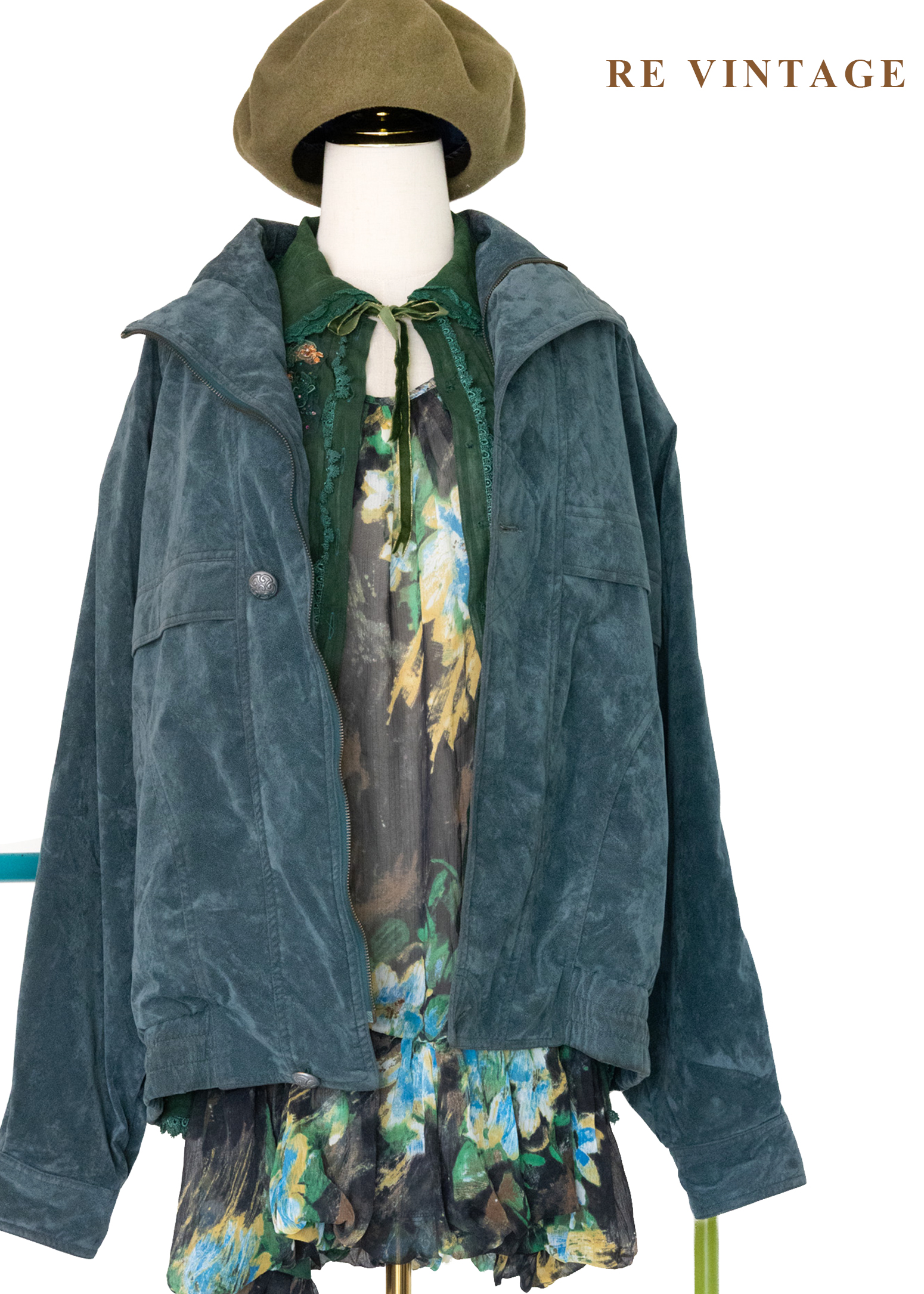 復古孔雀綠工裝夾克外套