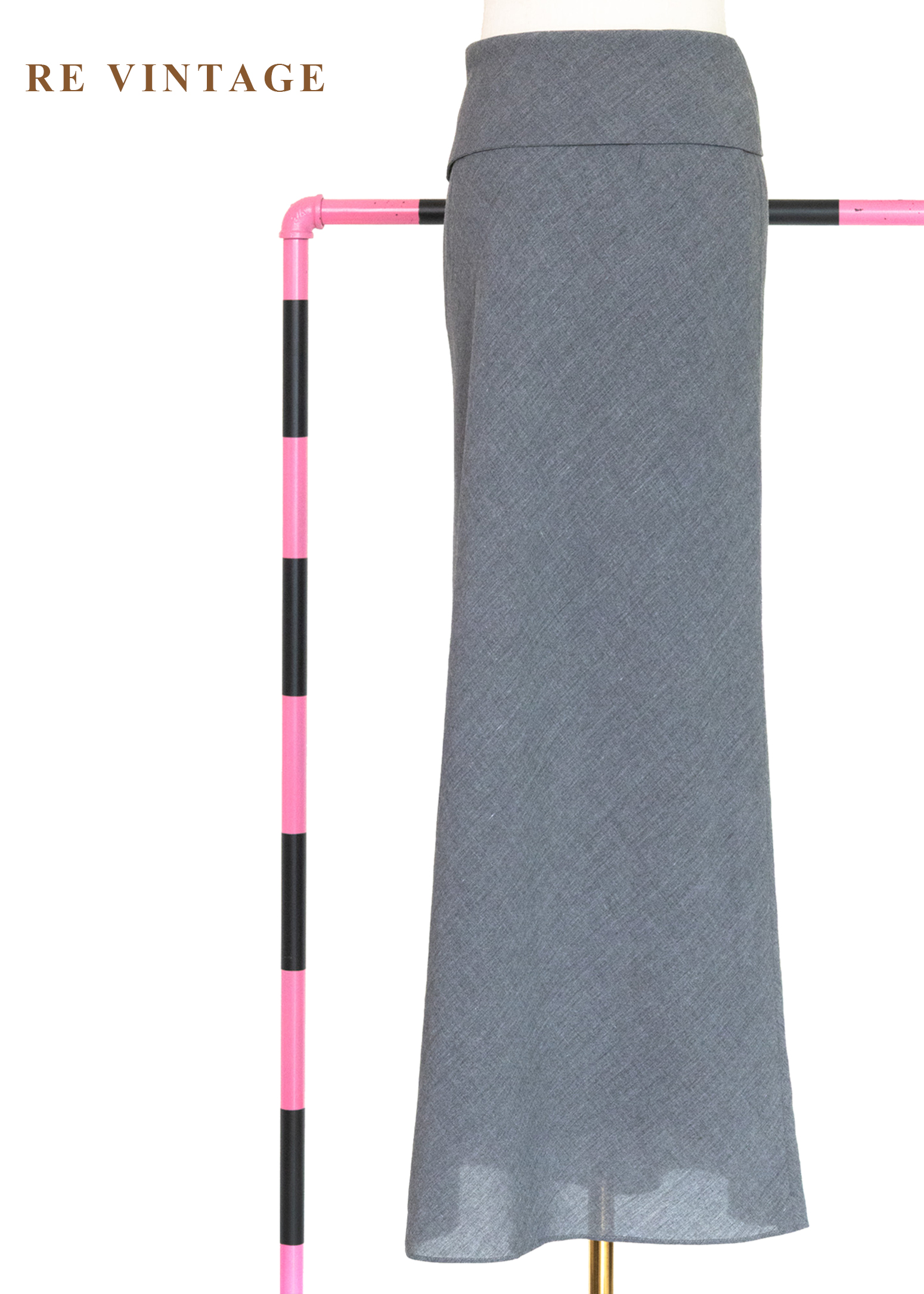 必備單品 - 翻摺簡約氣質灰色長裙(26")