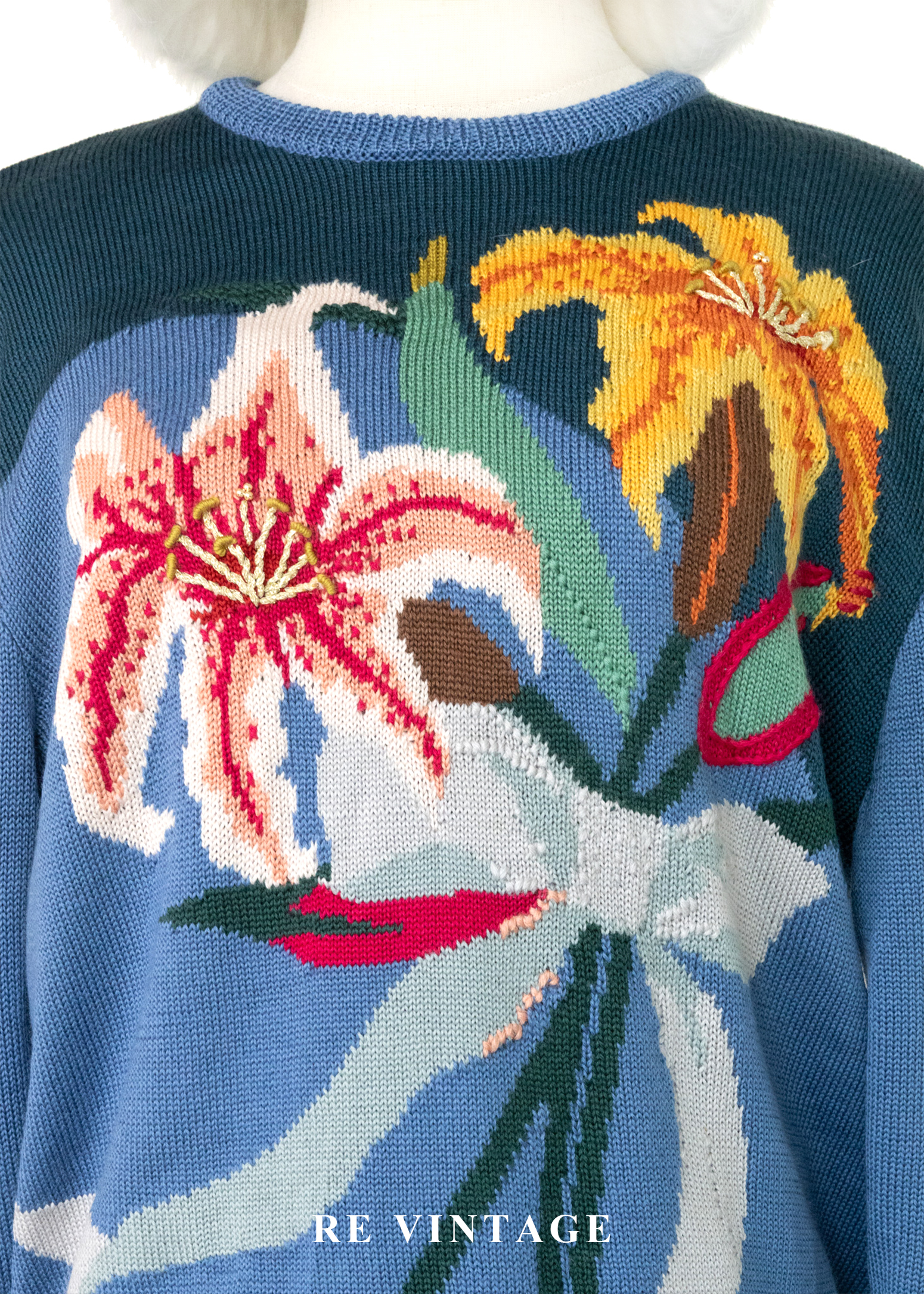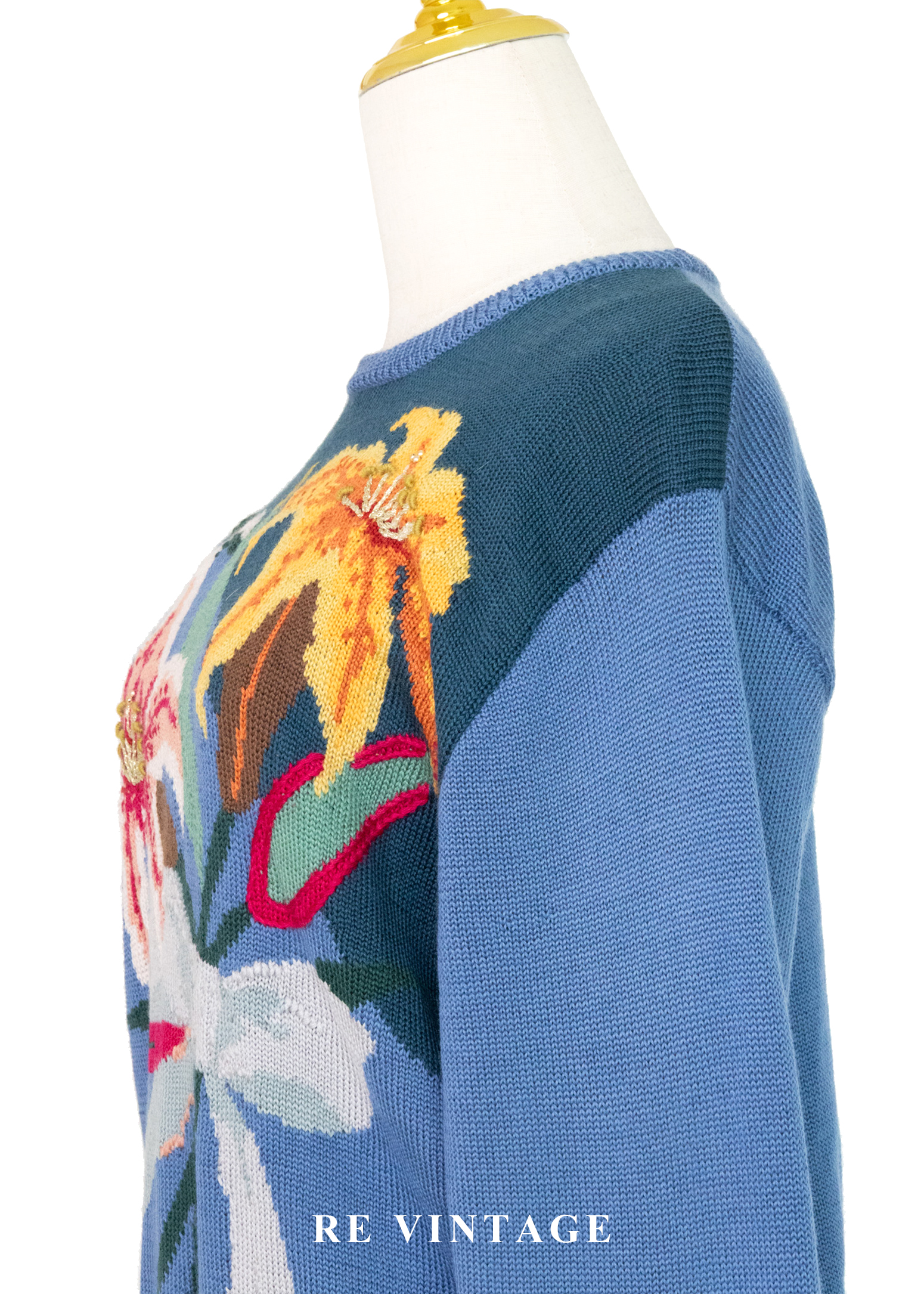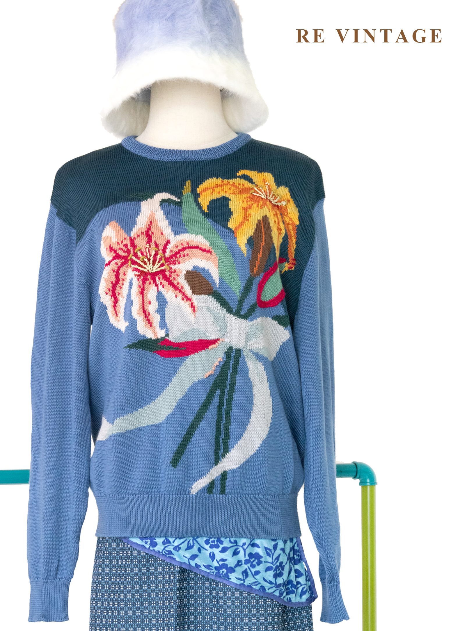 憂鬱藍百合撞色針織毛衣