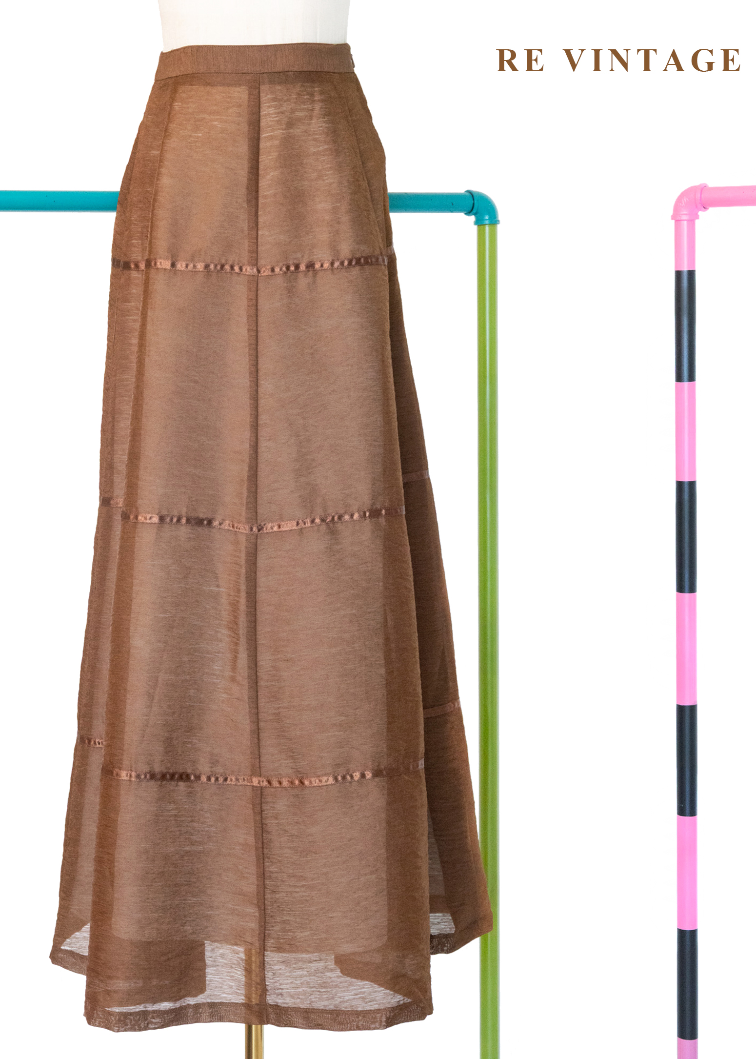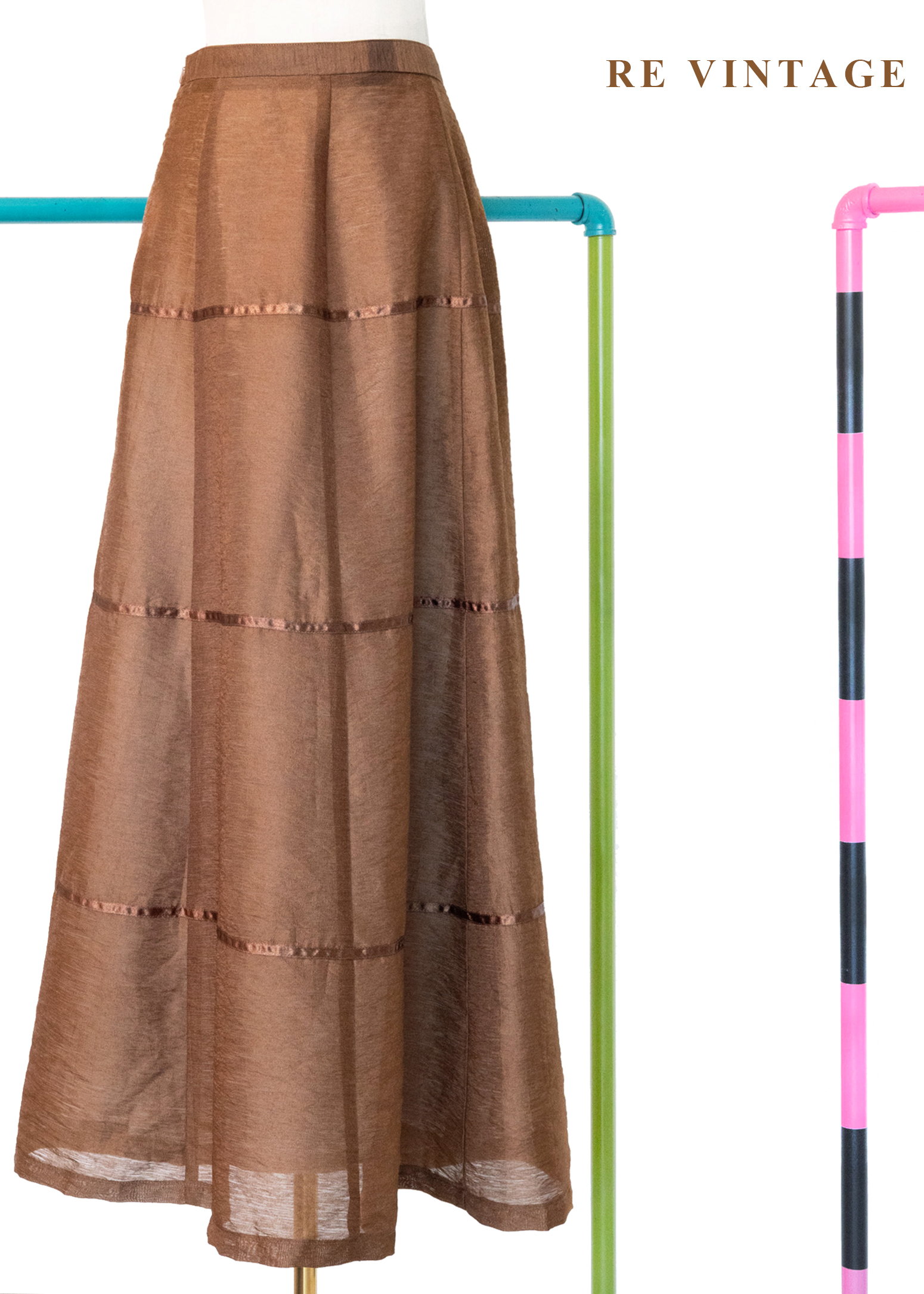 摩卡咖啡的餘韻緞帶拼接大圓裙(24")
