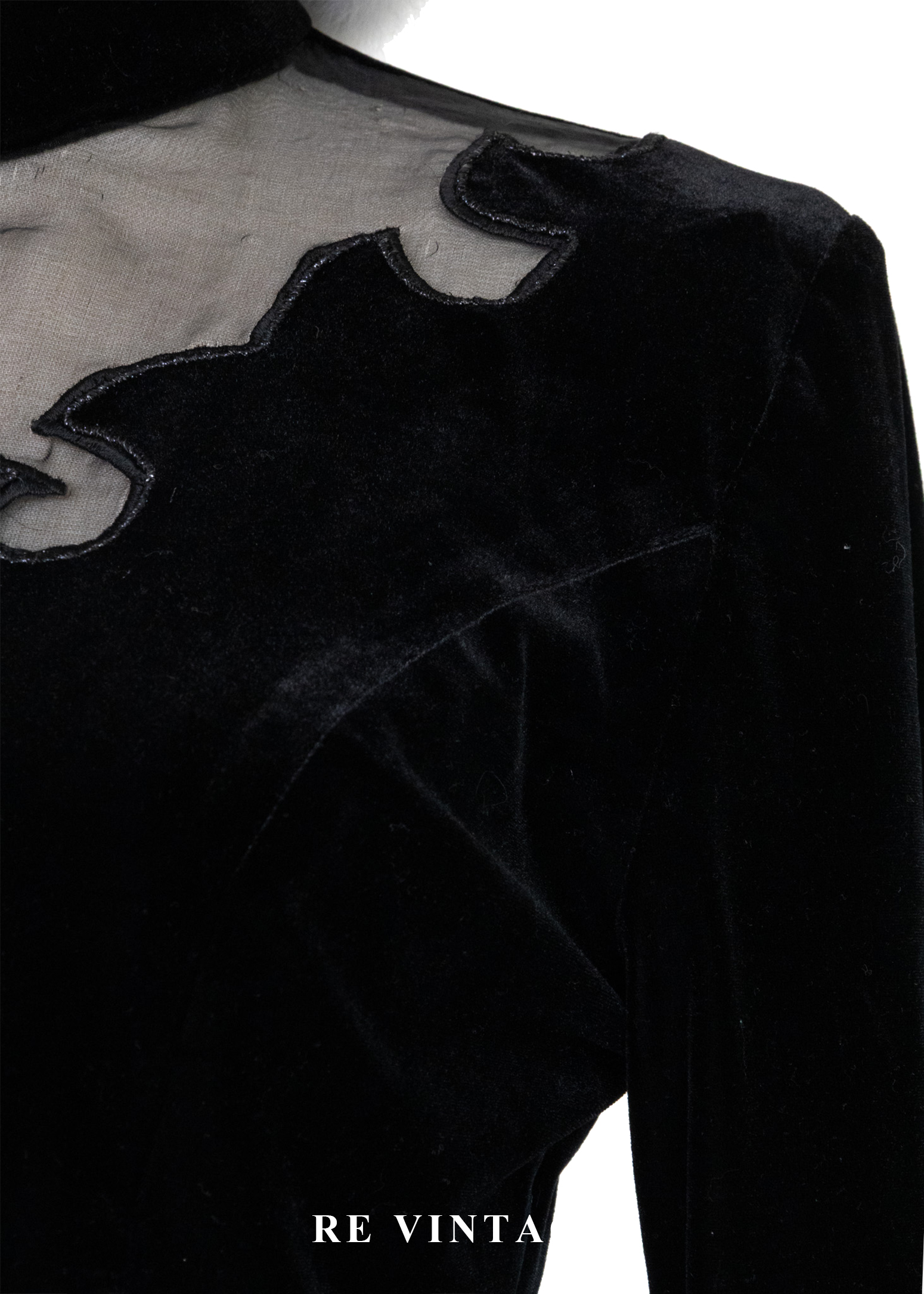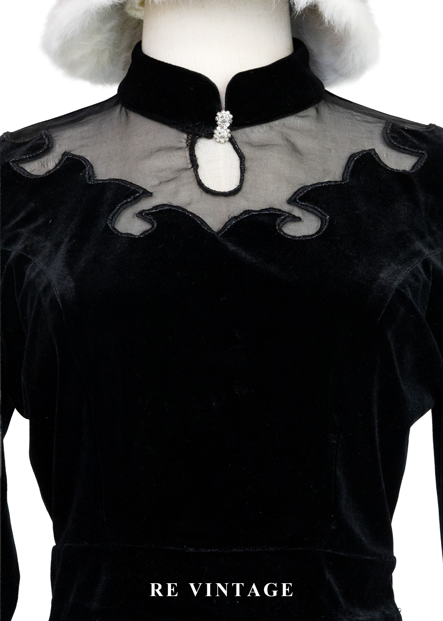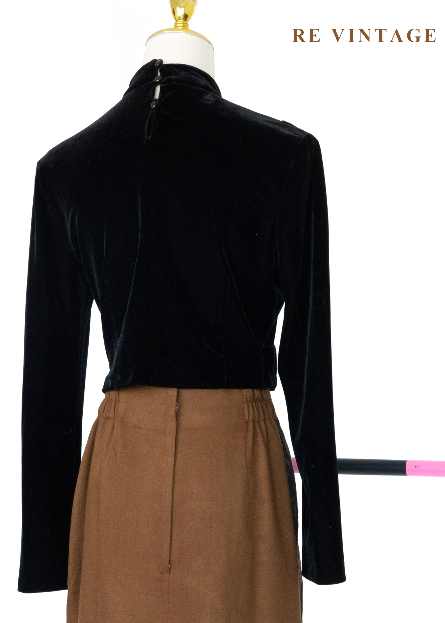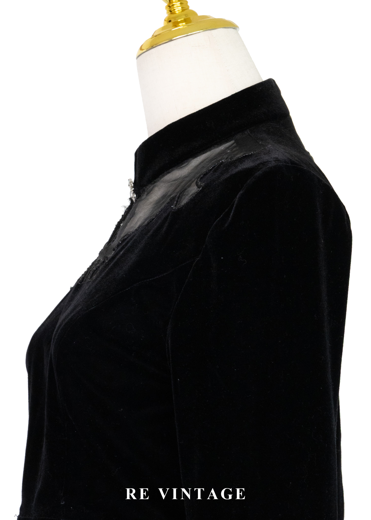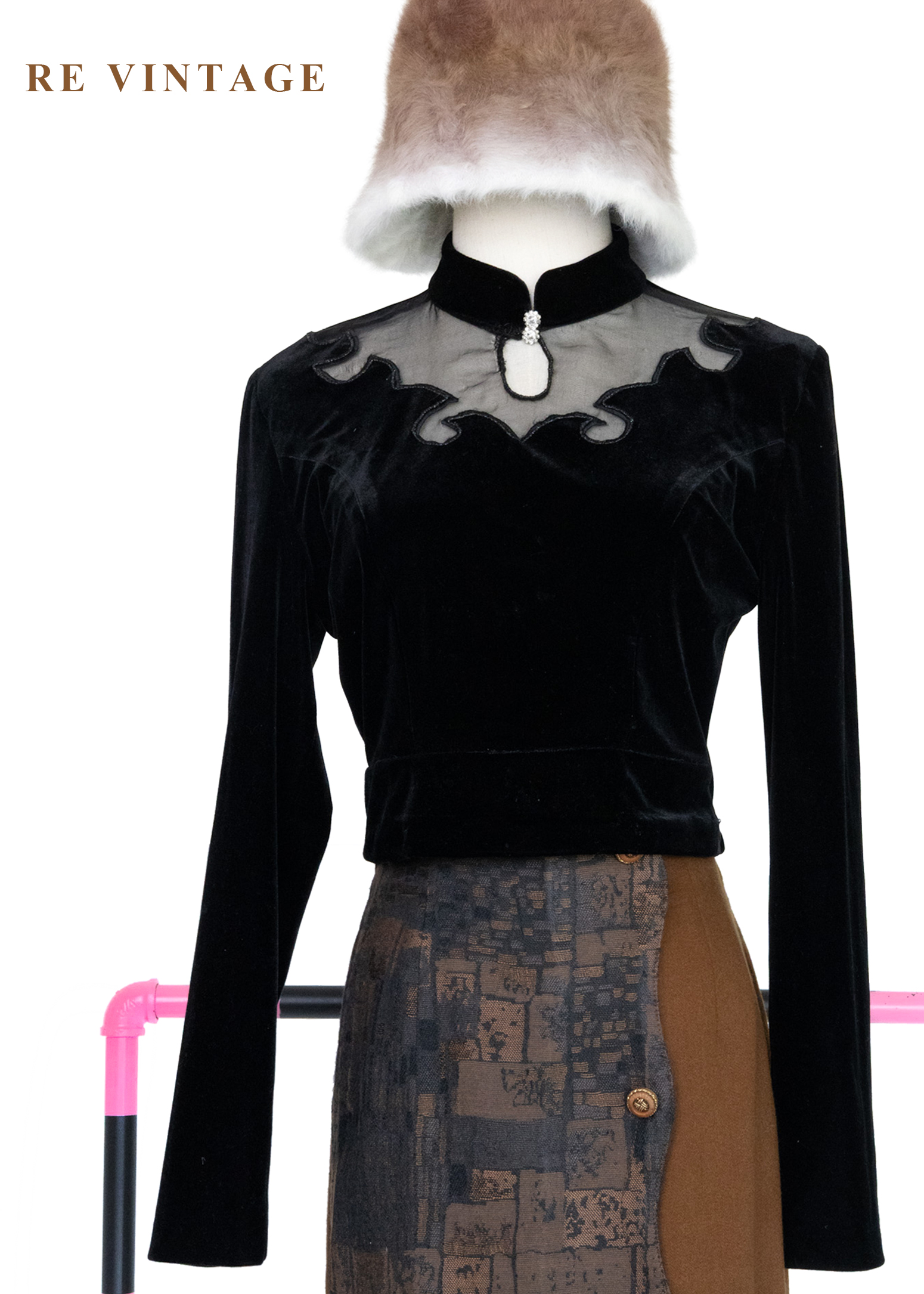 文藝少女 - 雲紋鏤空立領絨布上衣