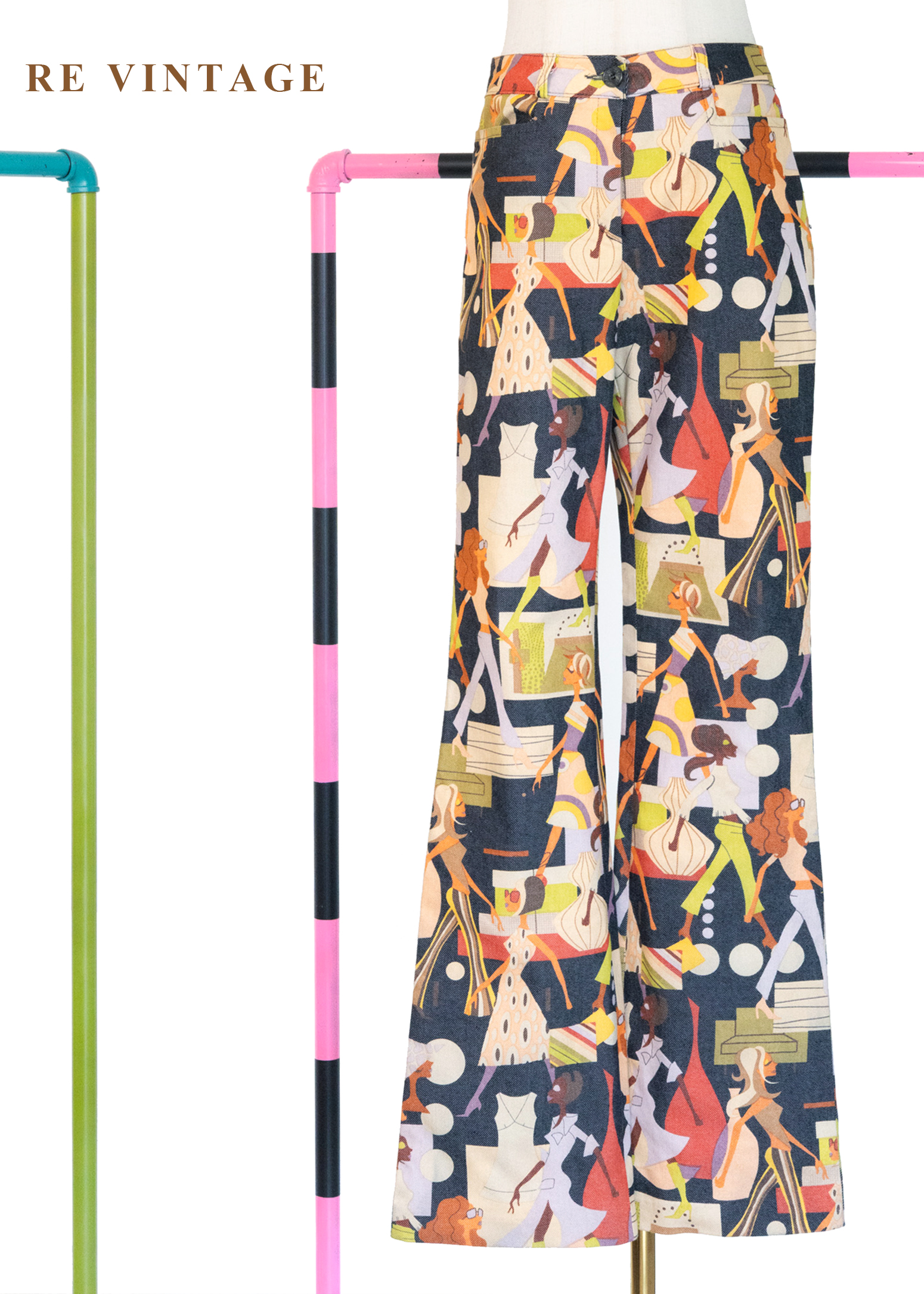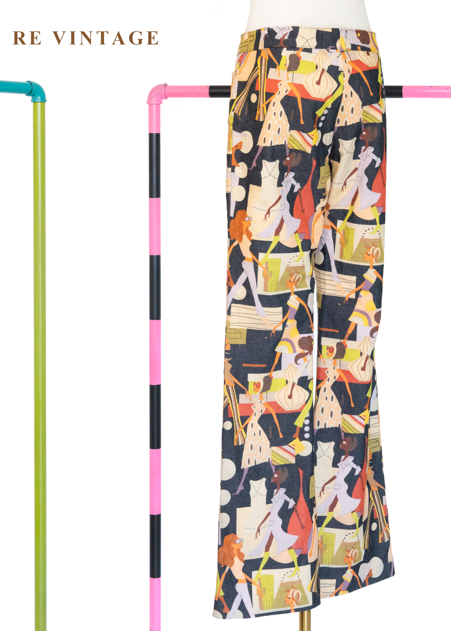 時尚插畫摩登色女伶長褲(27")