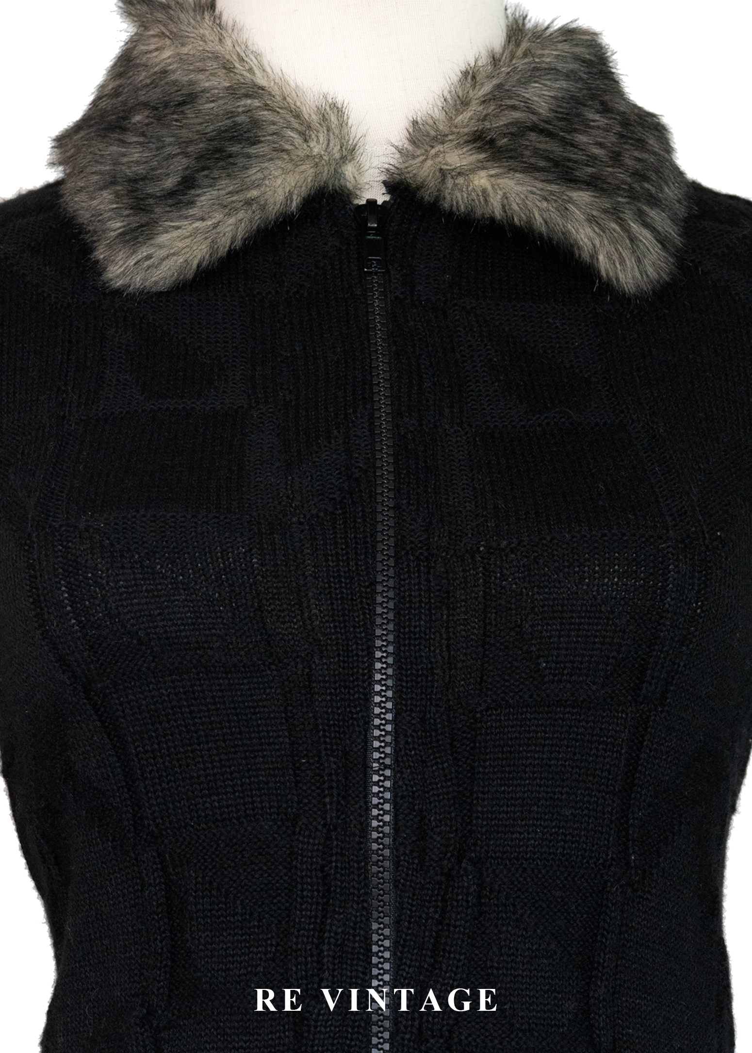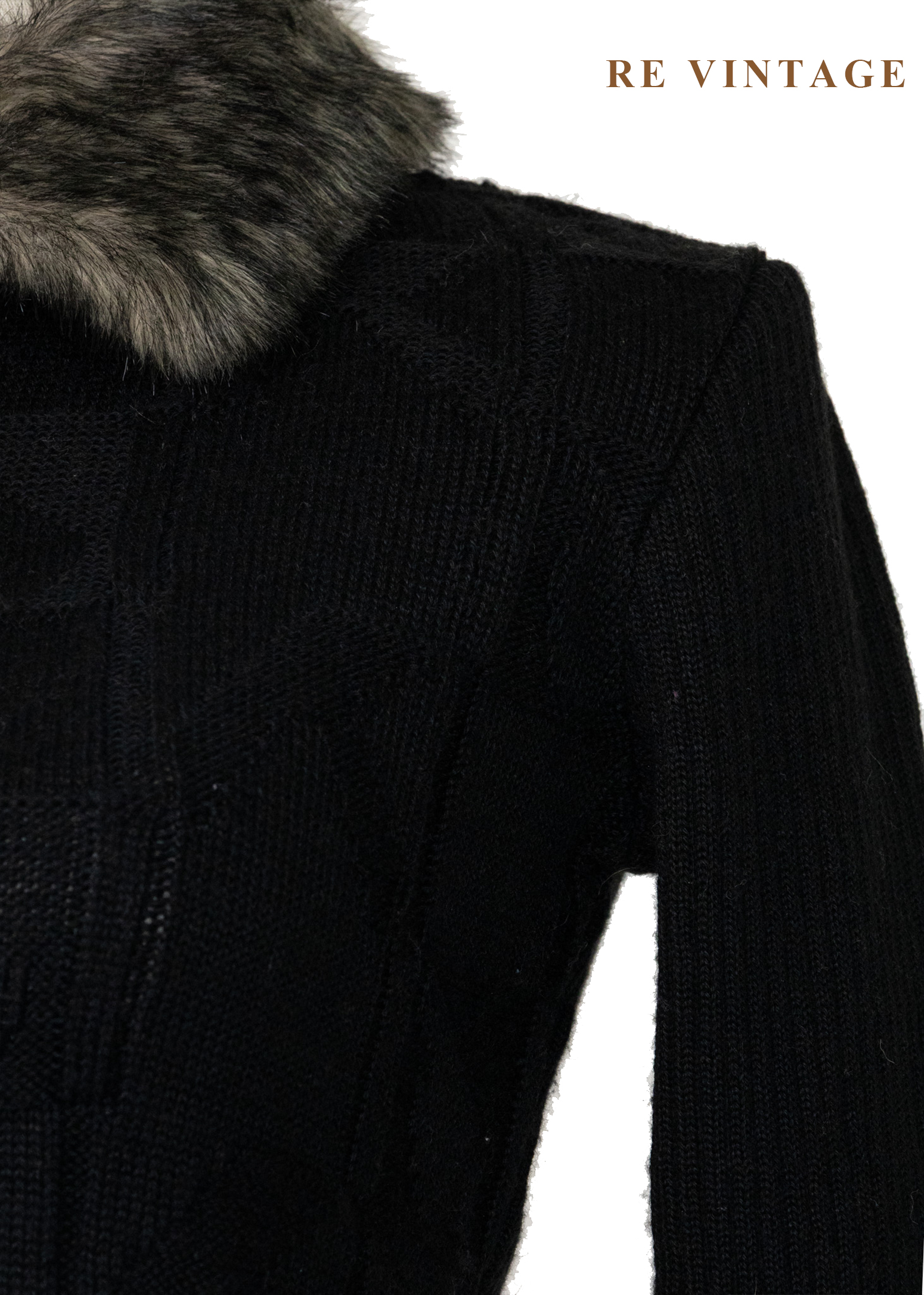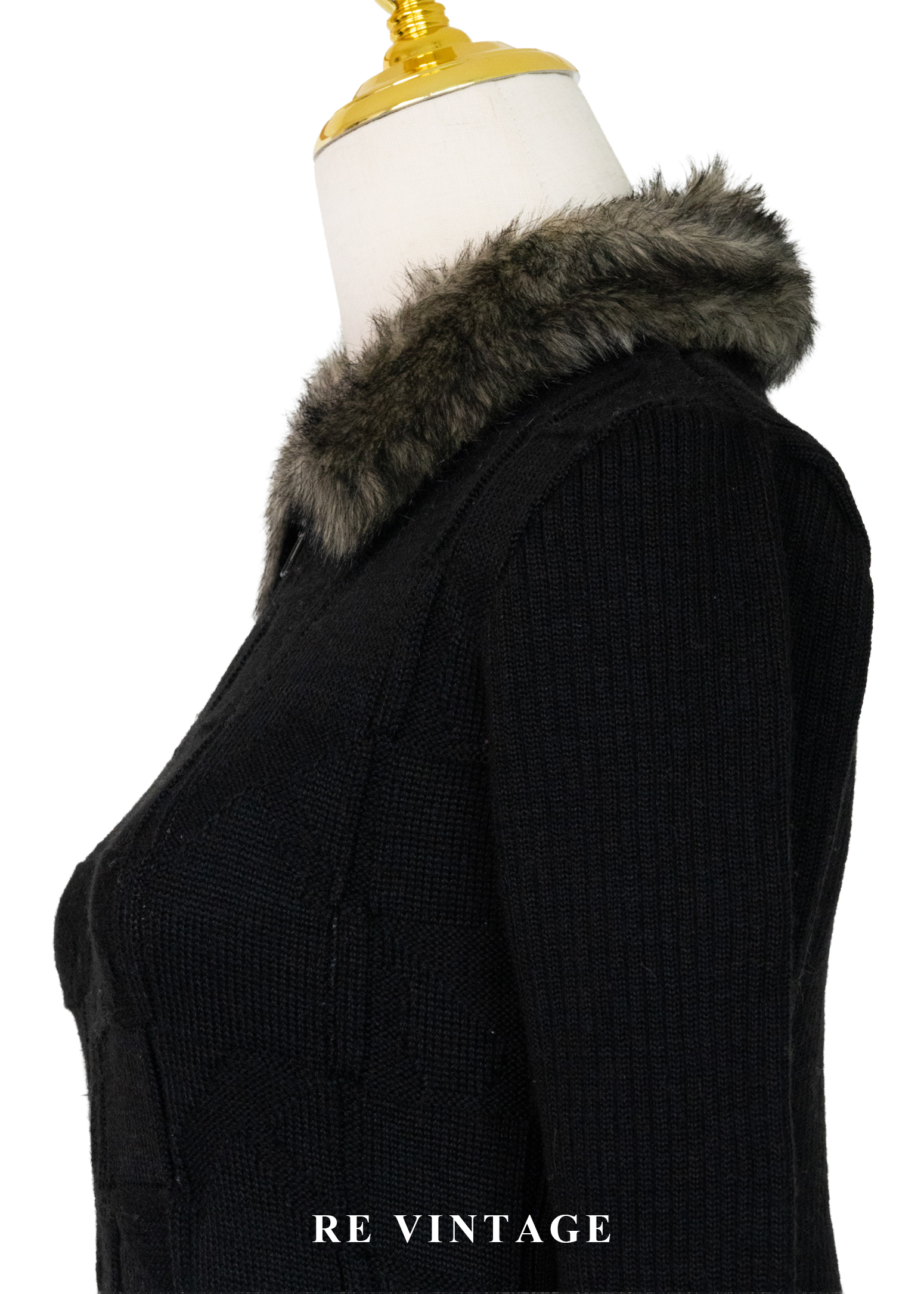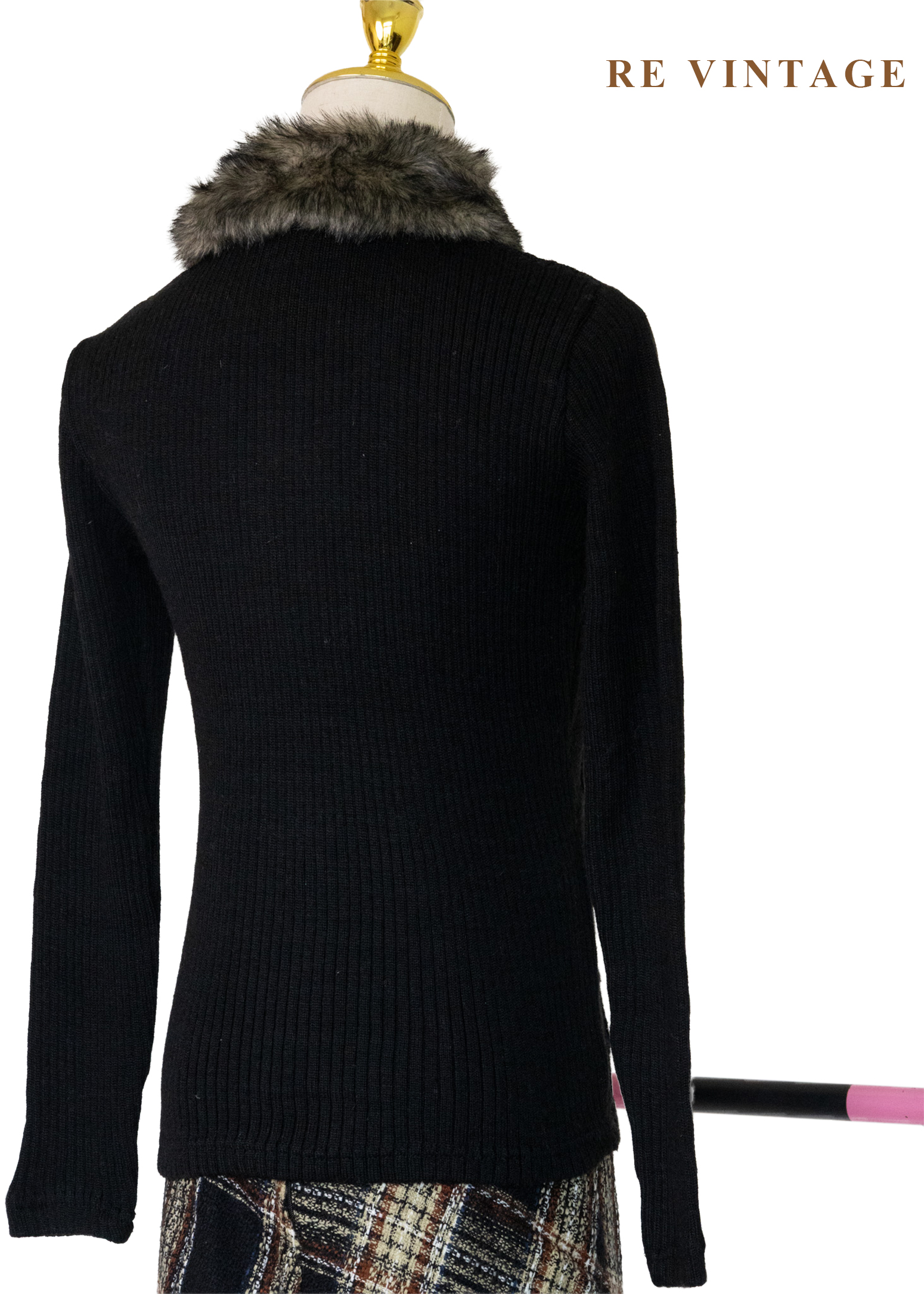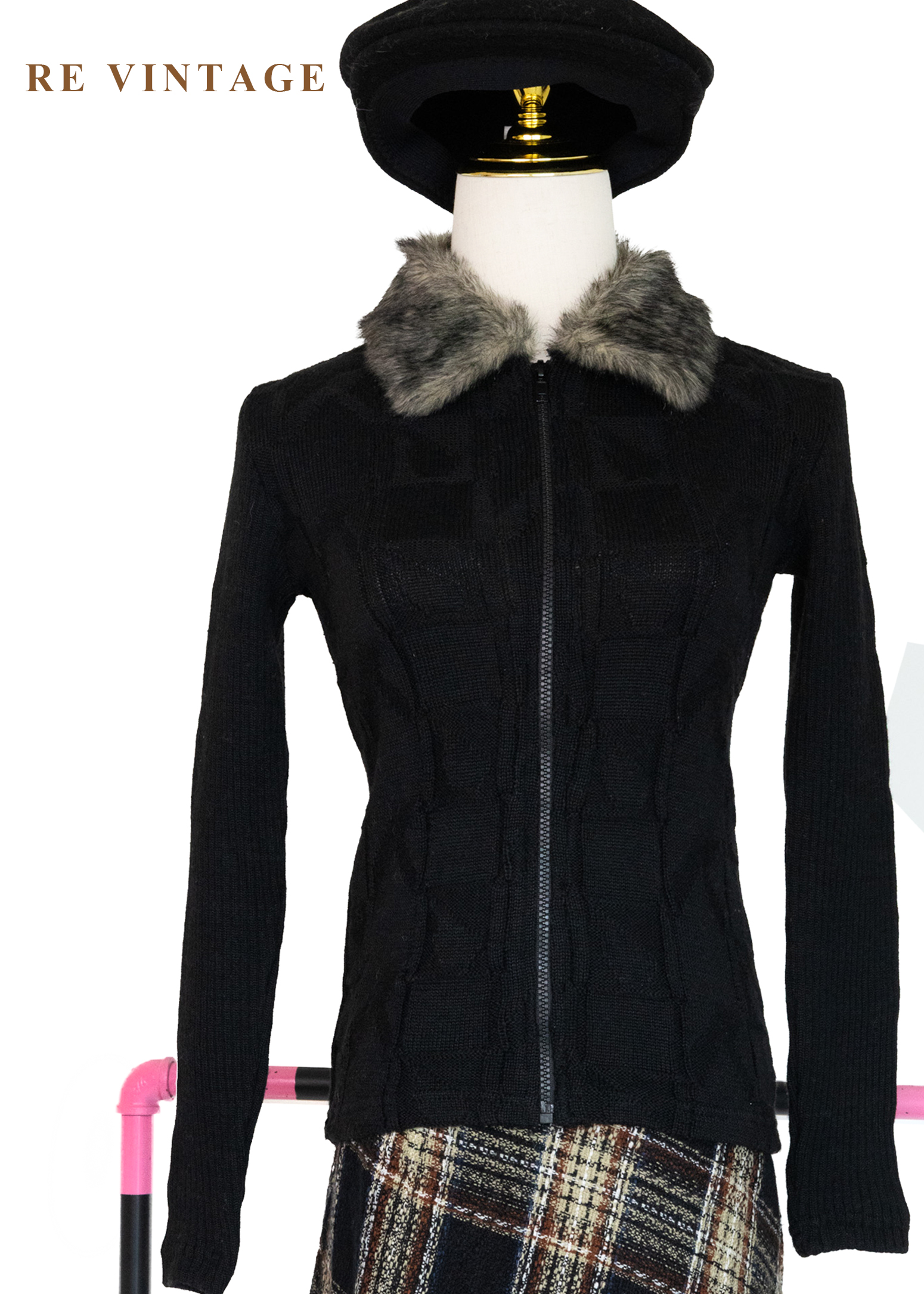 棋盤格紋毛領針織外套