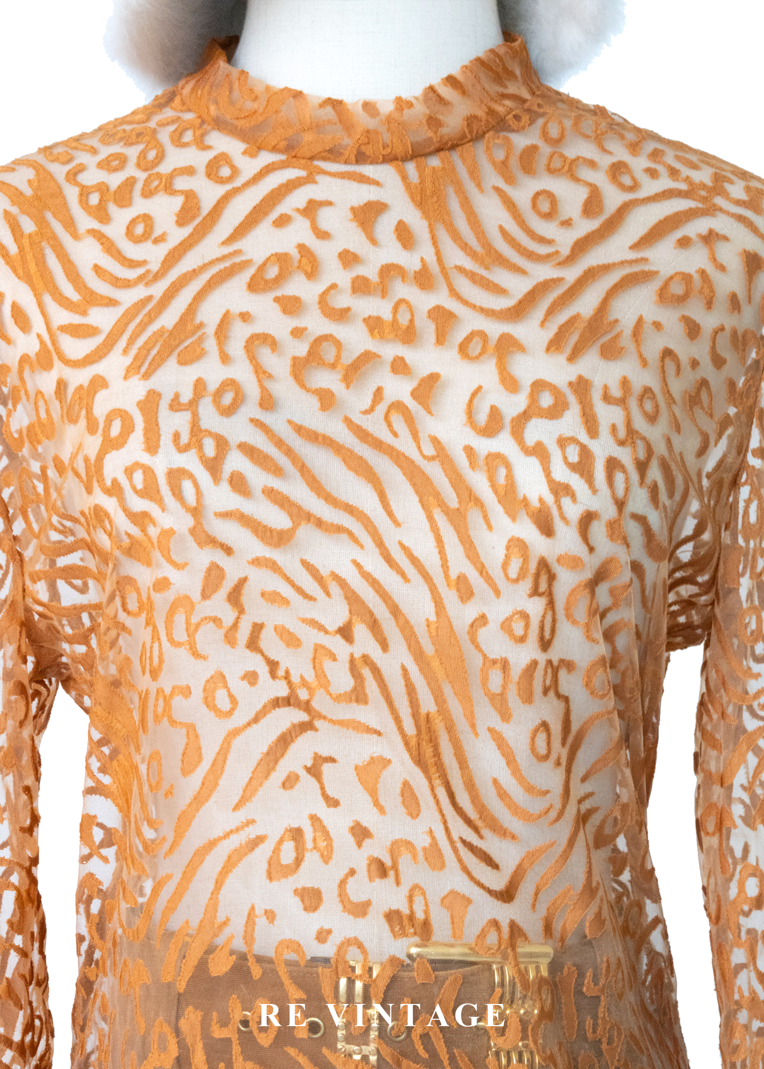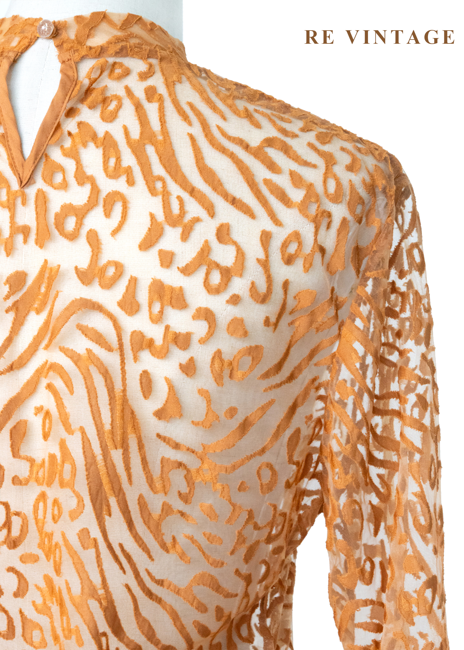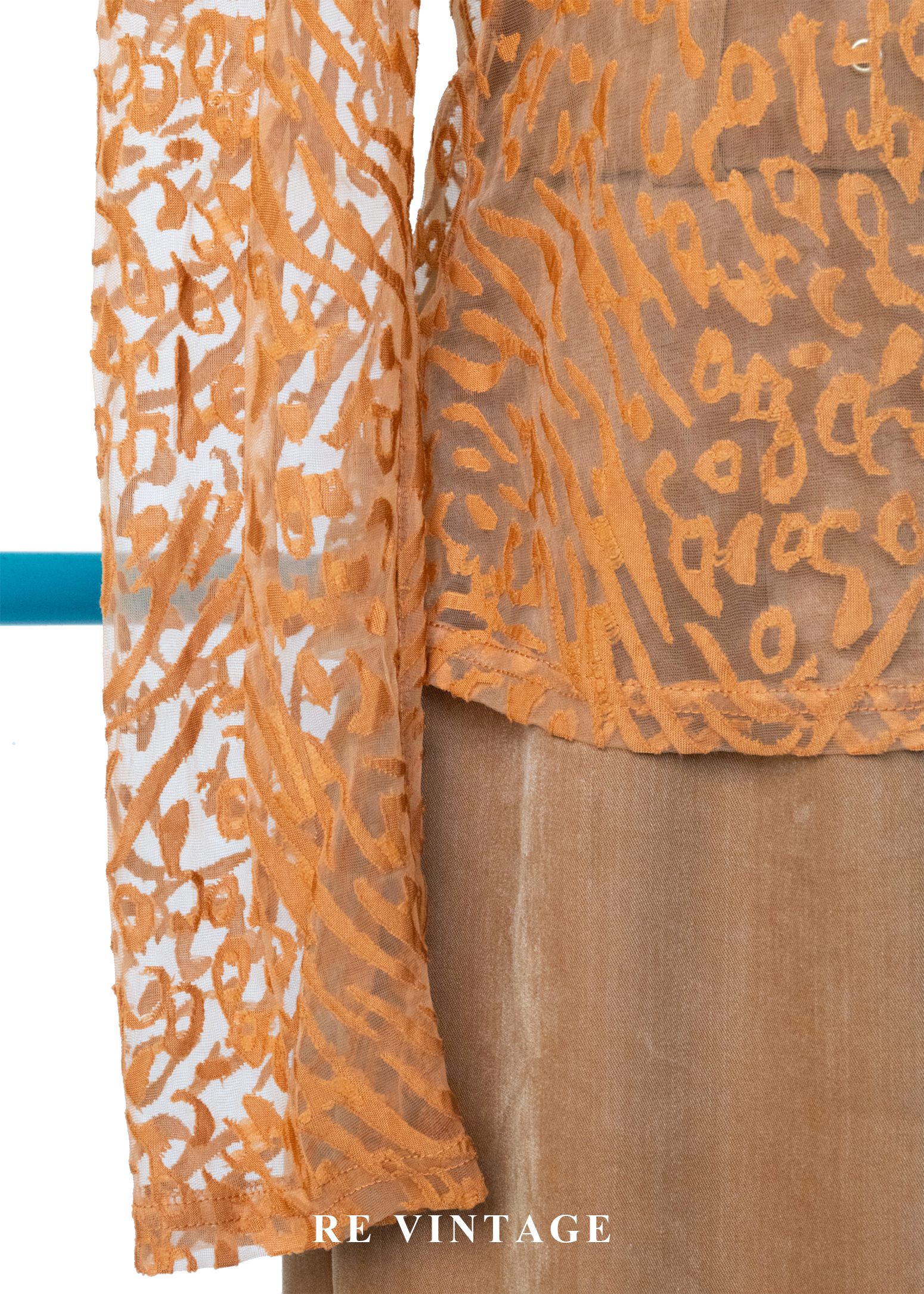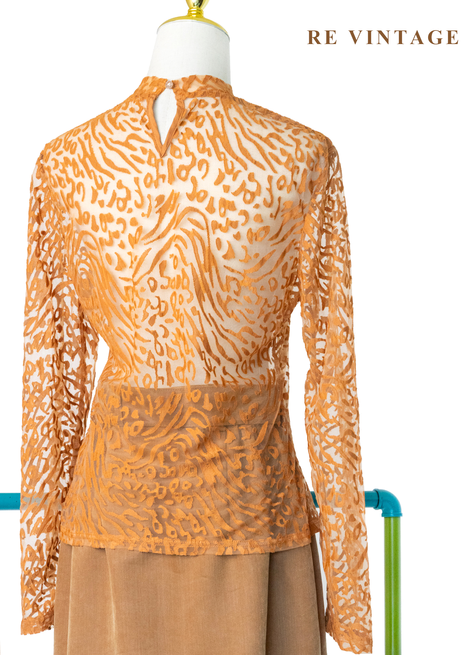橘子色野性豹紋透膚上衣