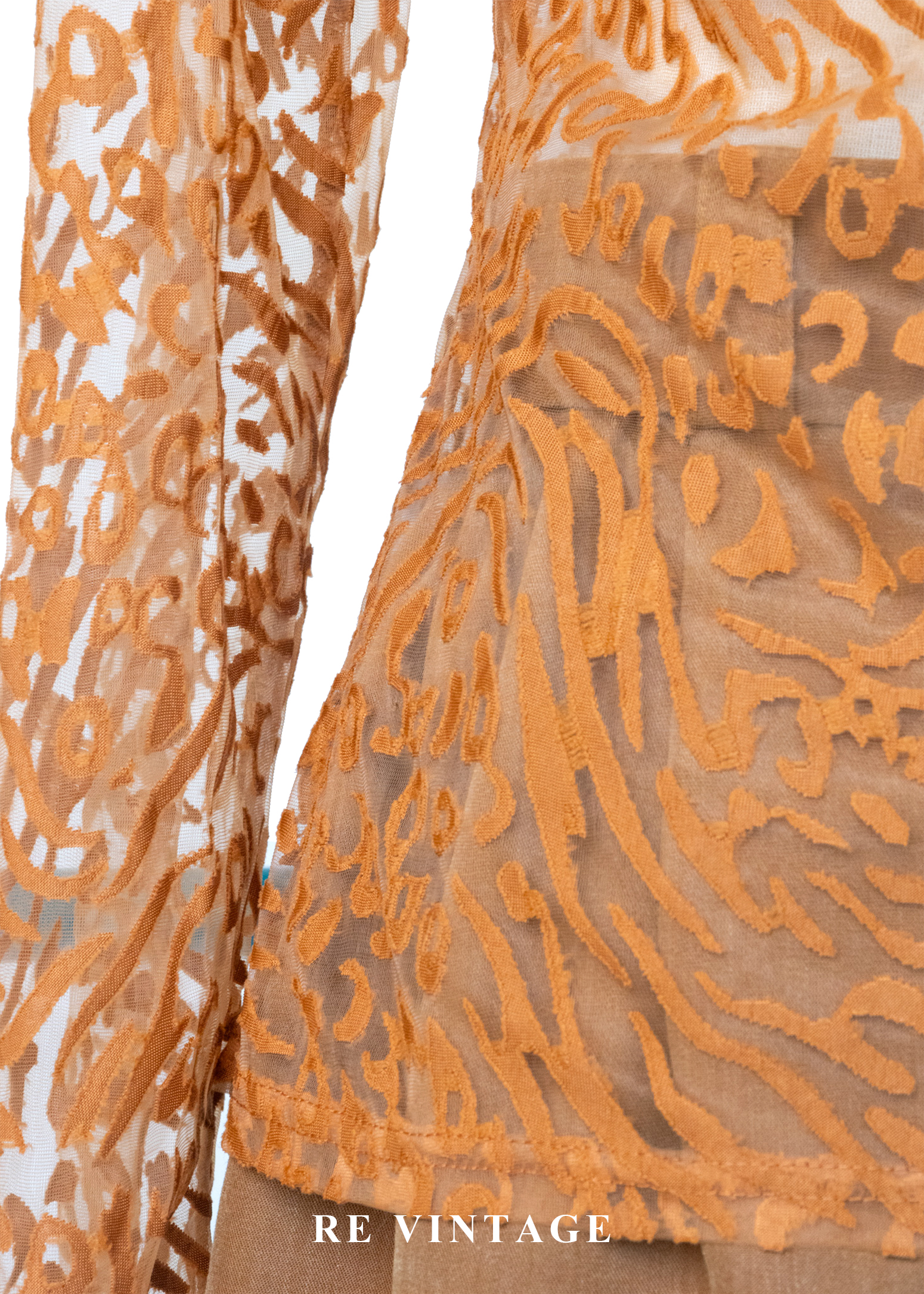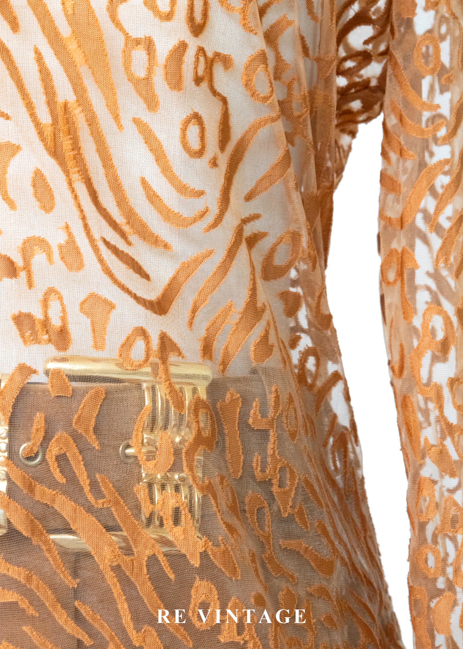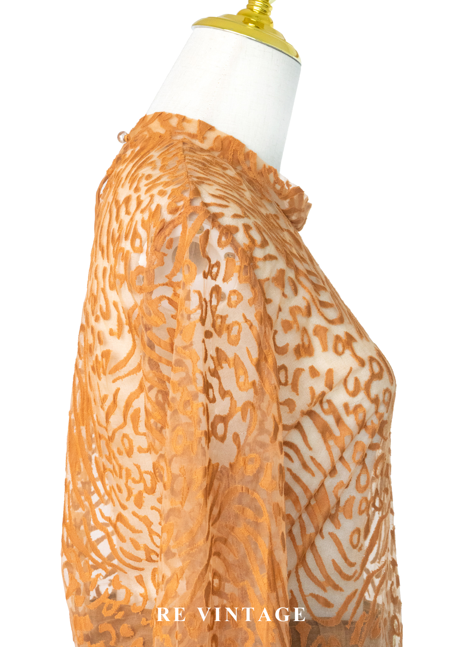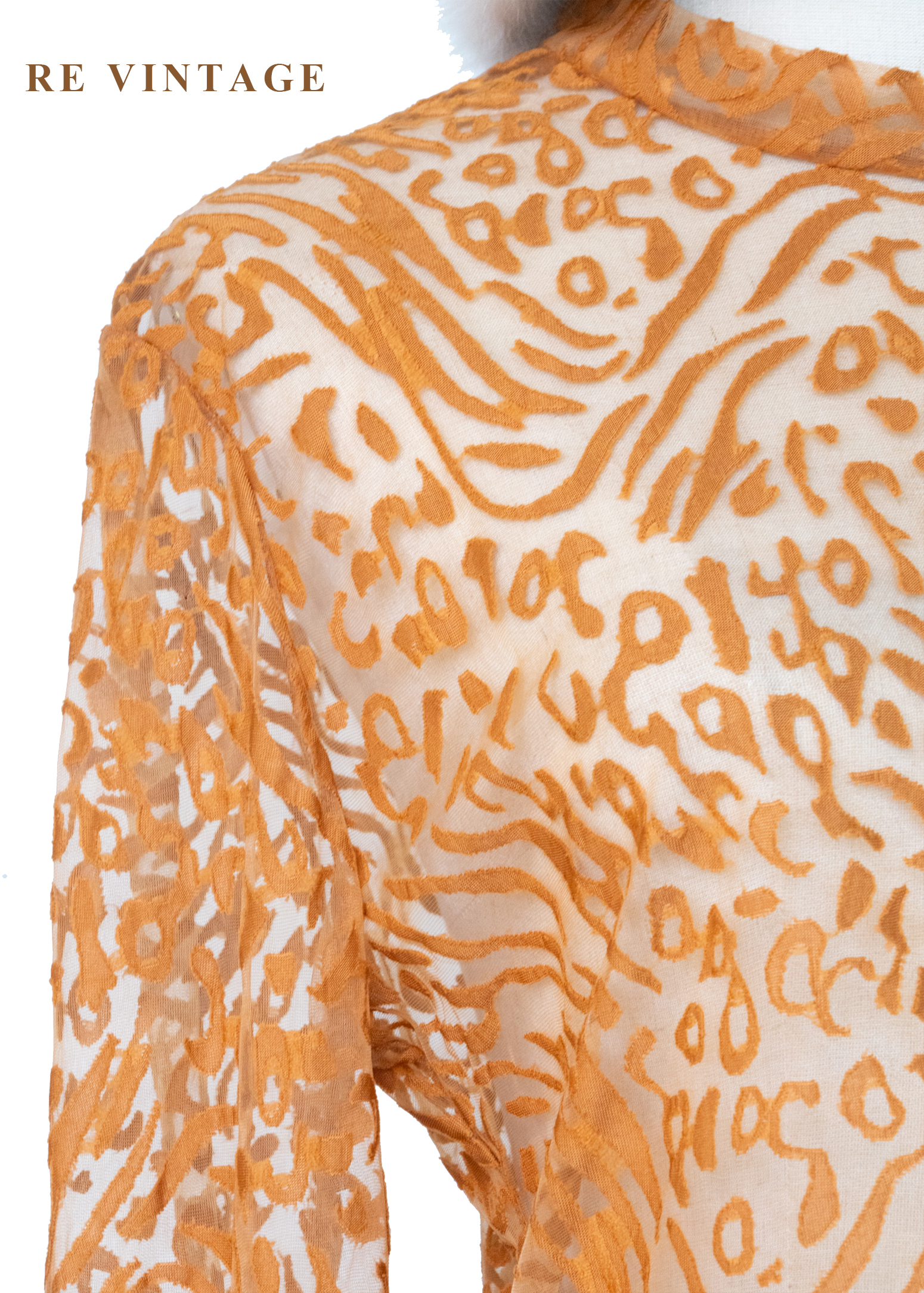 橘子色野性豹紋透膚上衣