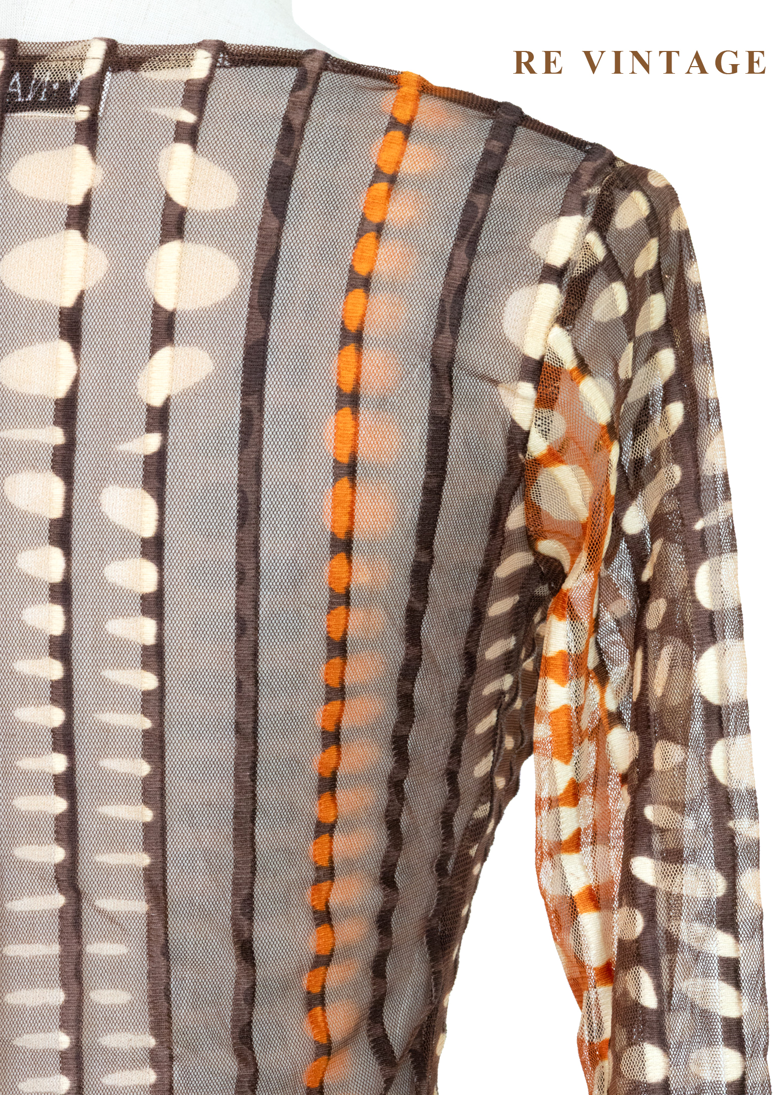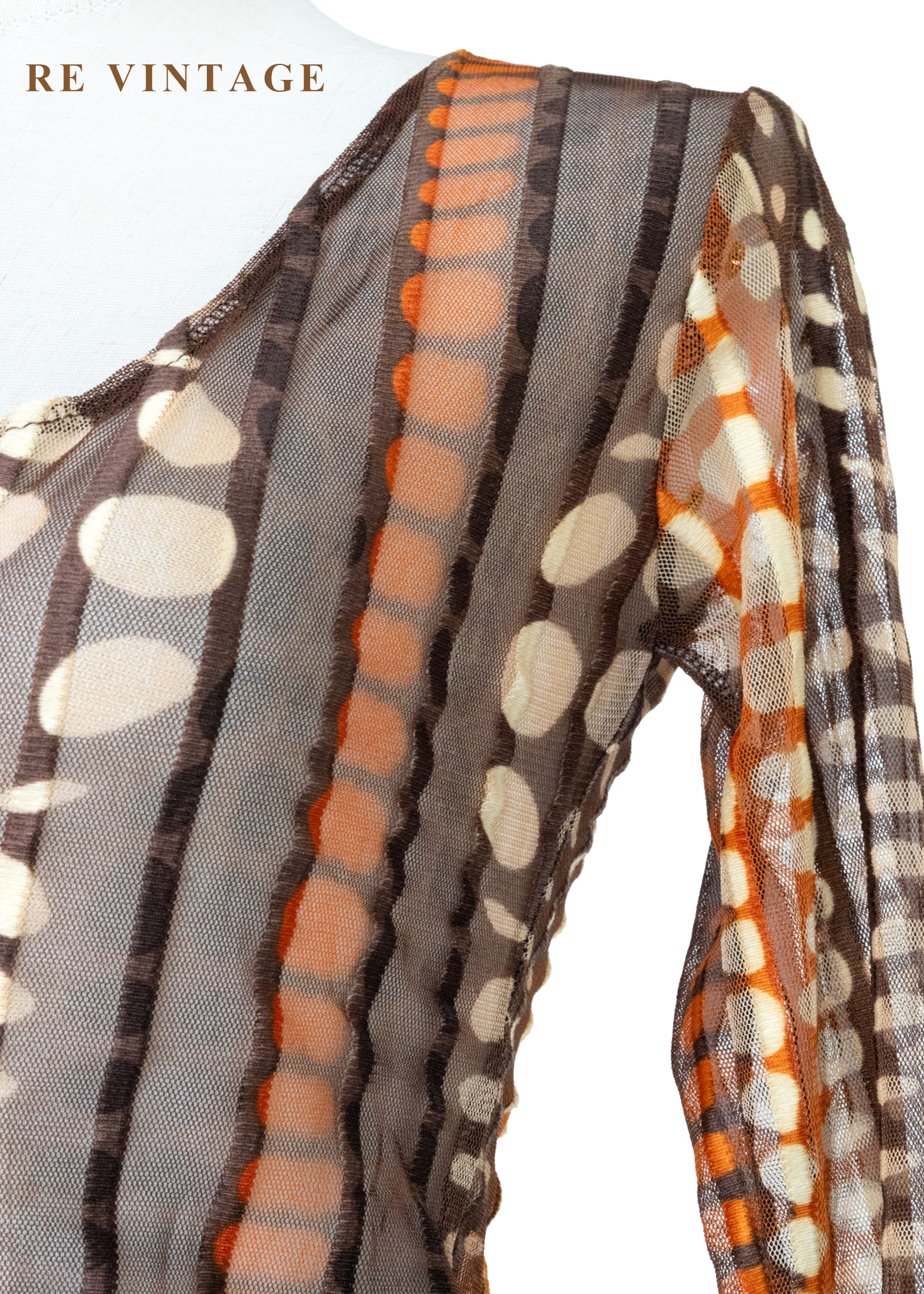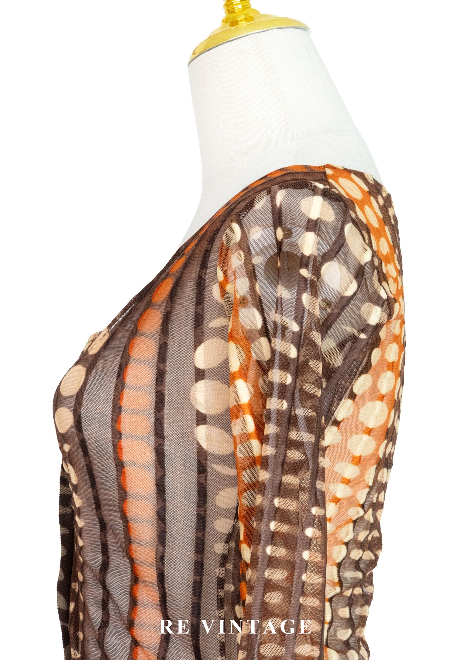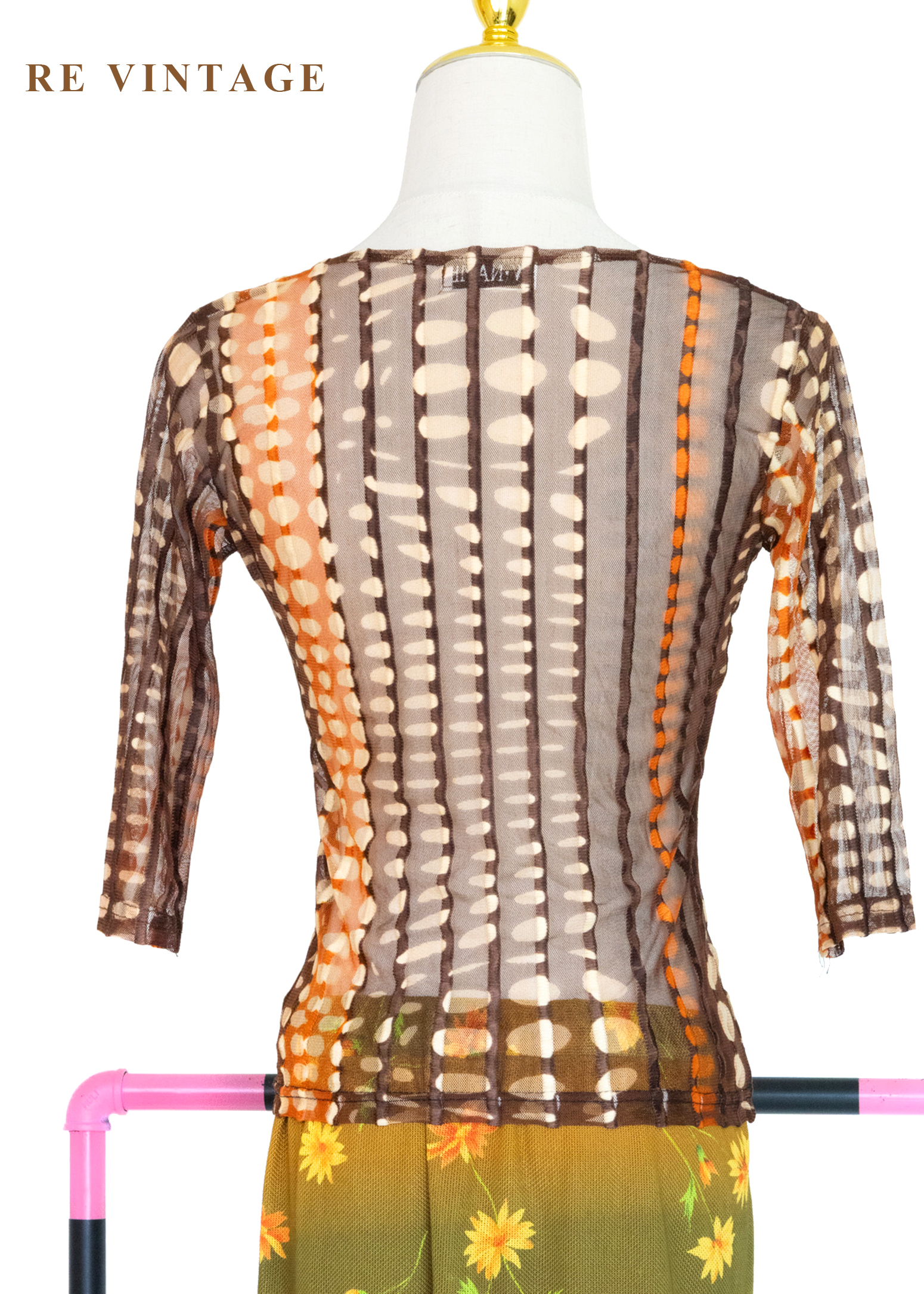 深棕橘子色圓點線條透膚上衣