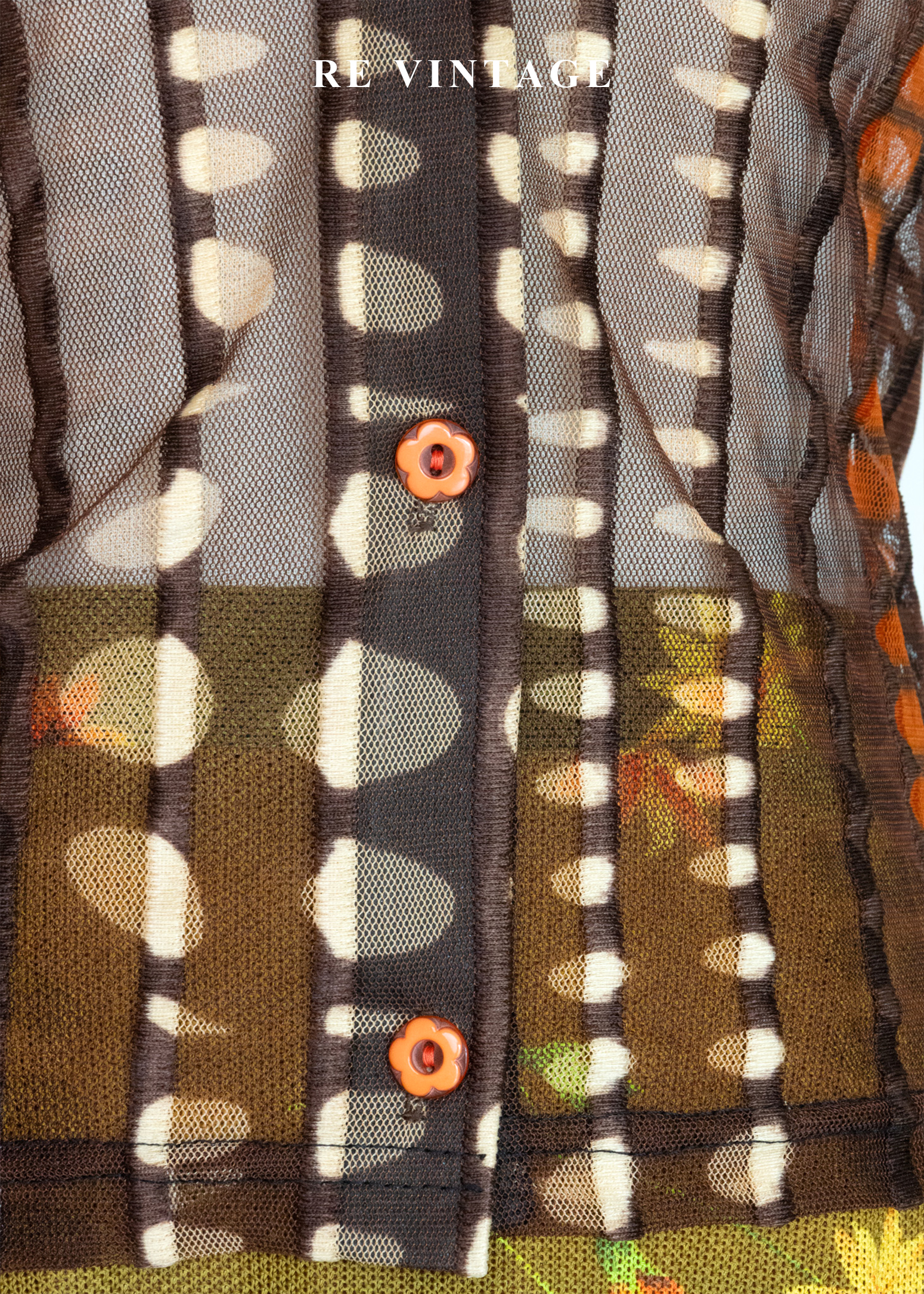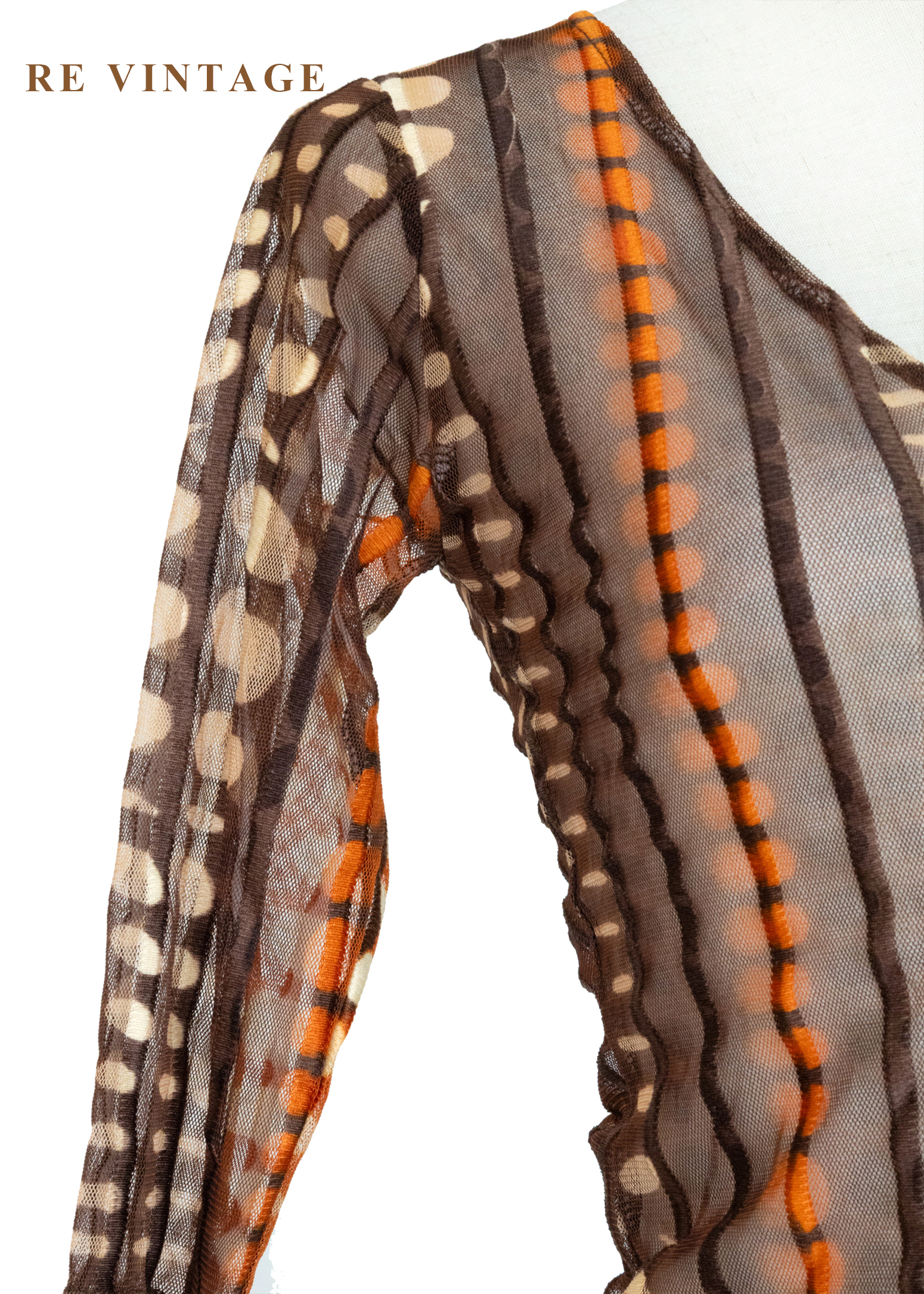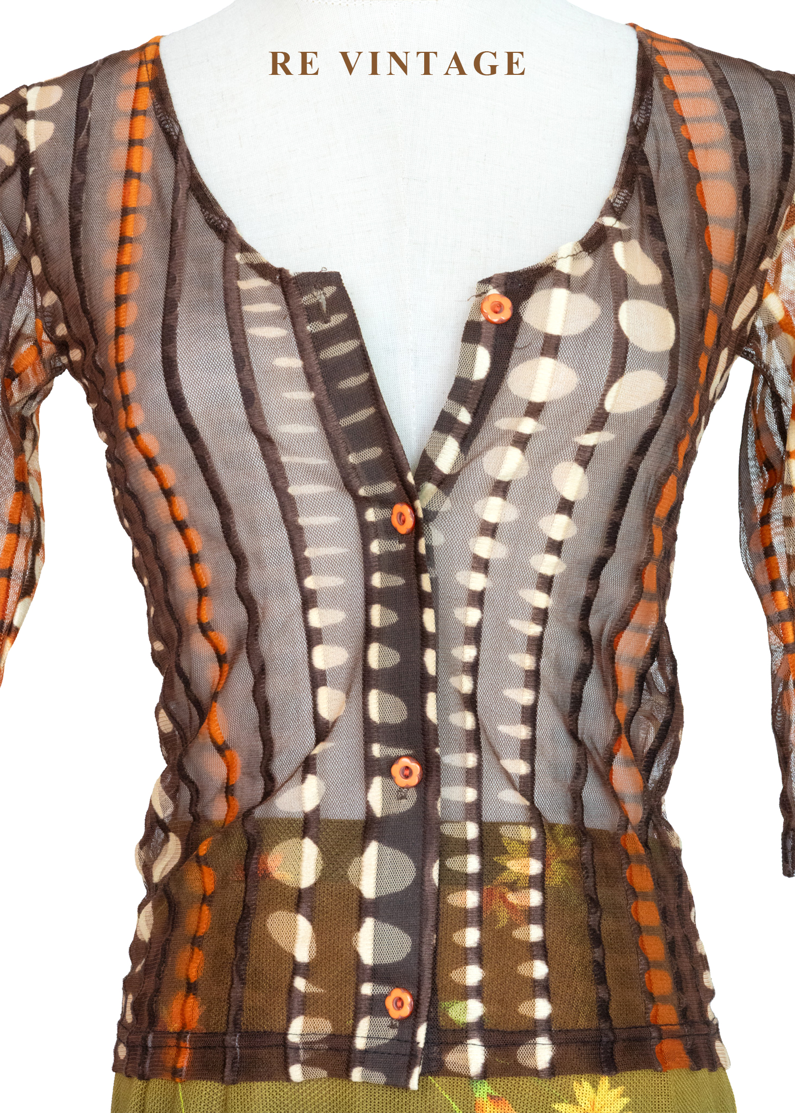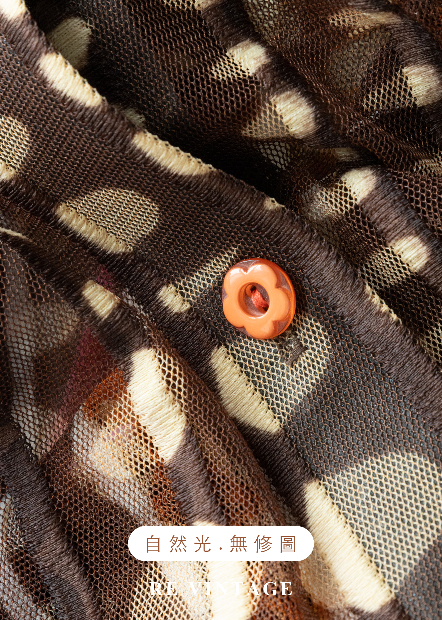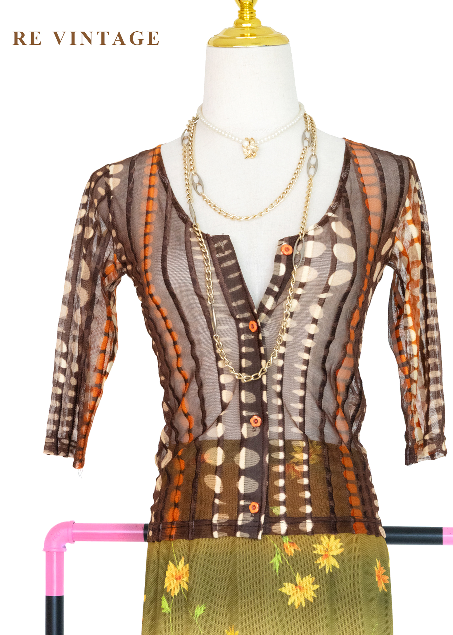 深棕橘子色圓點線條透膚上衣