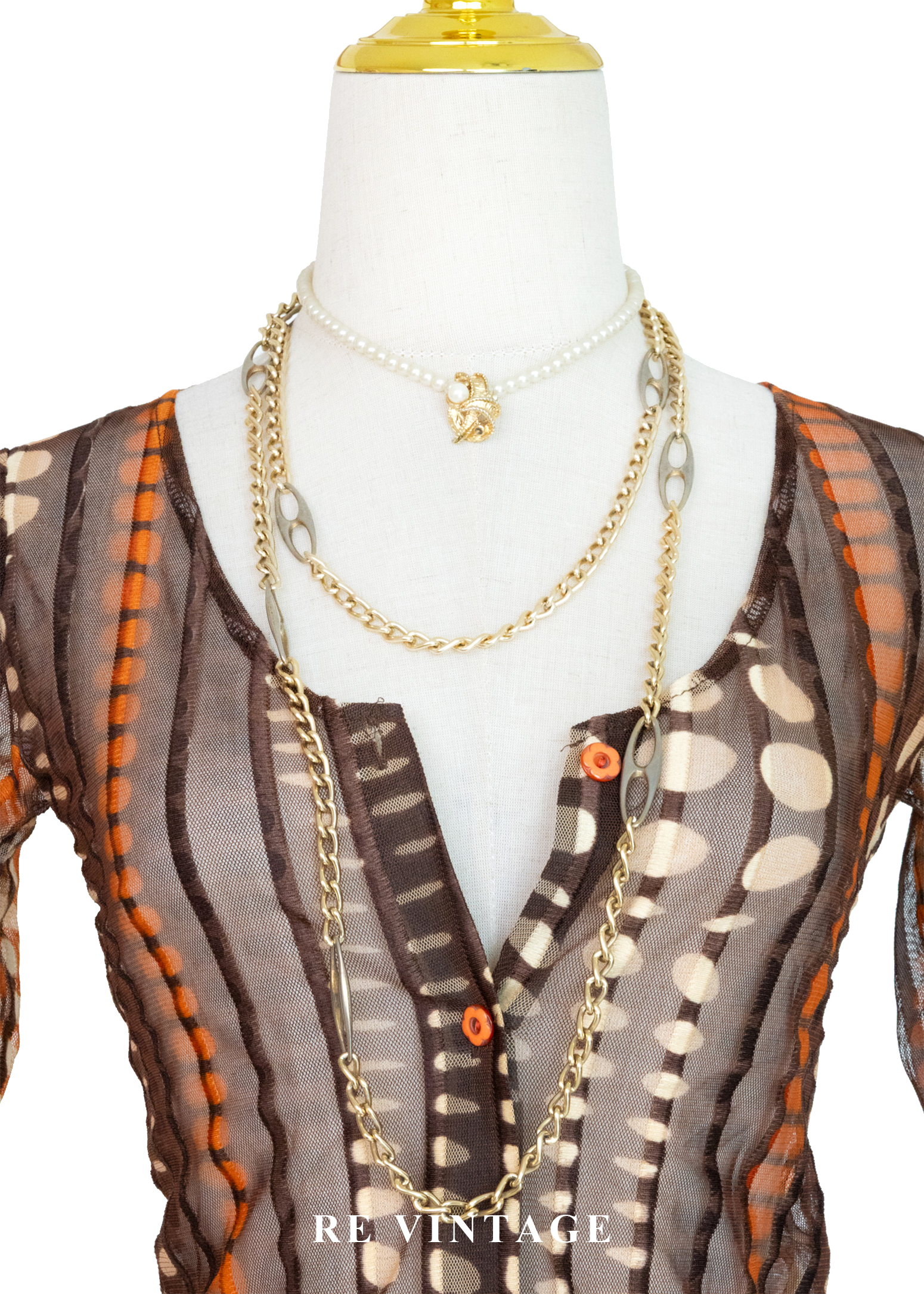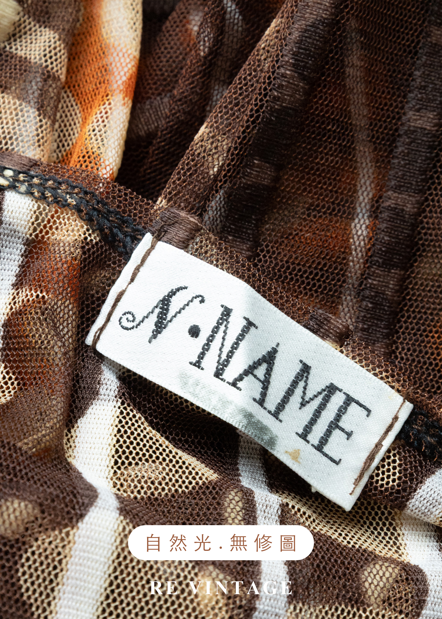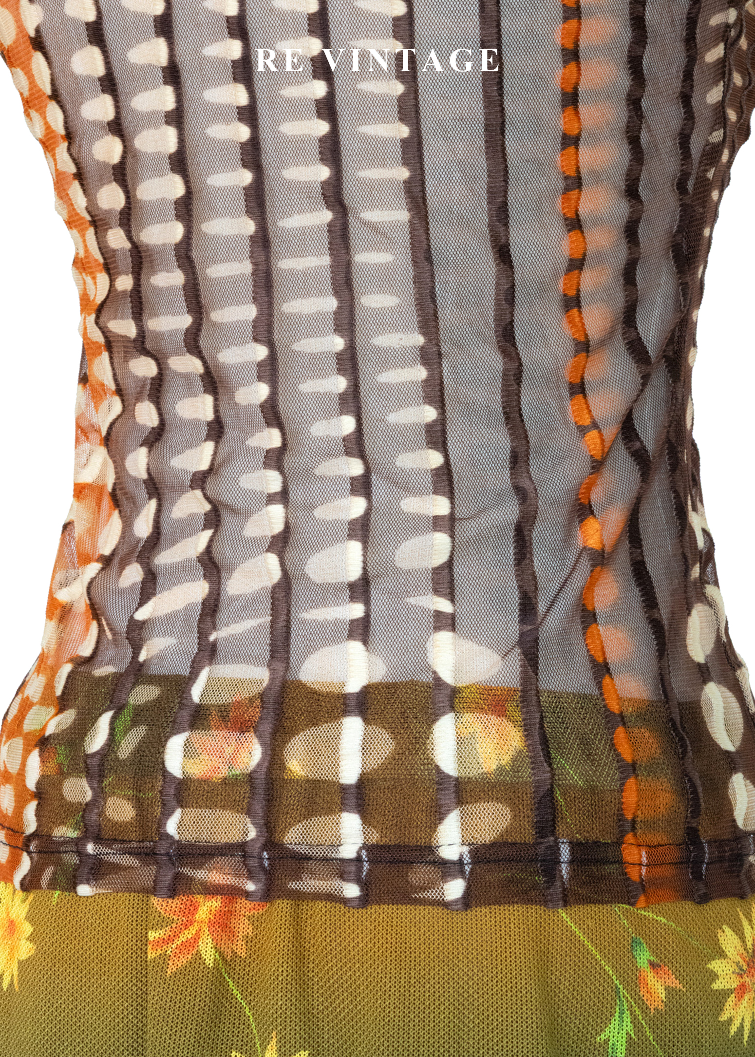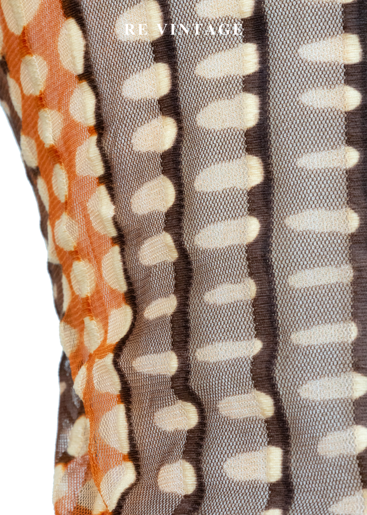 深棕橘子色圓點線條透膚上衣