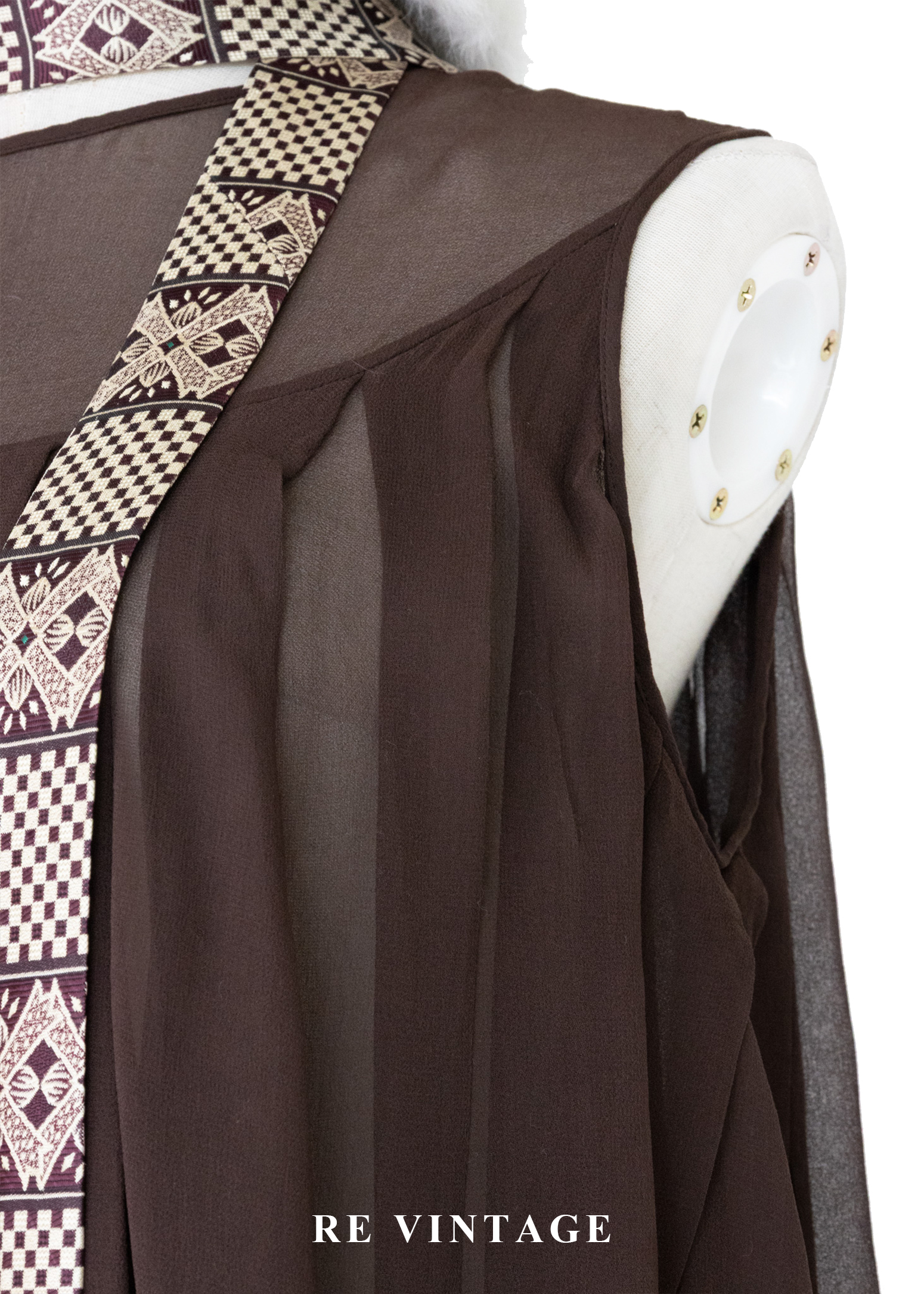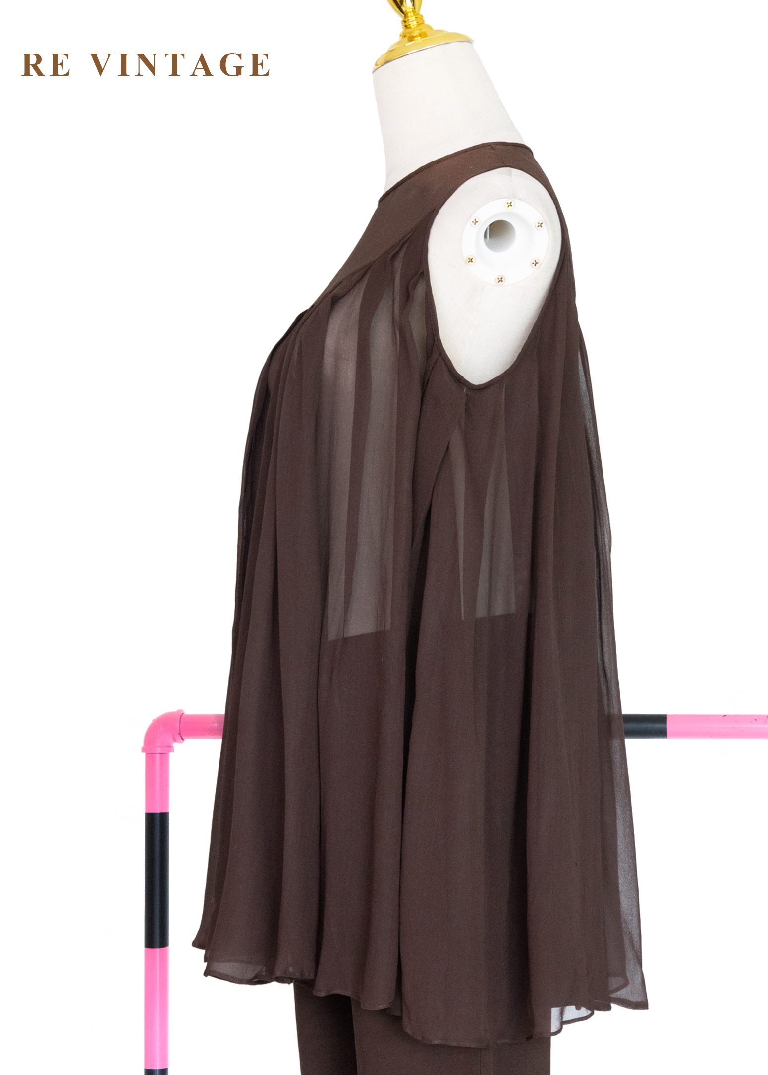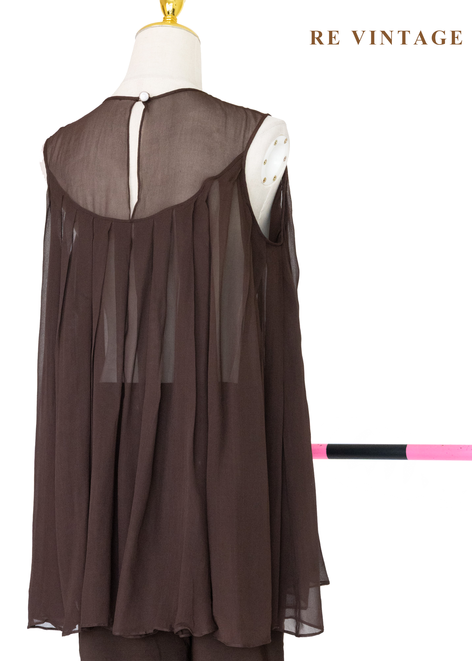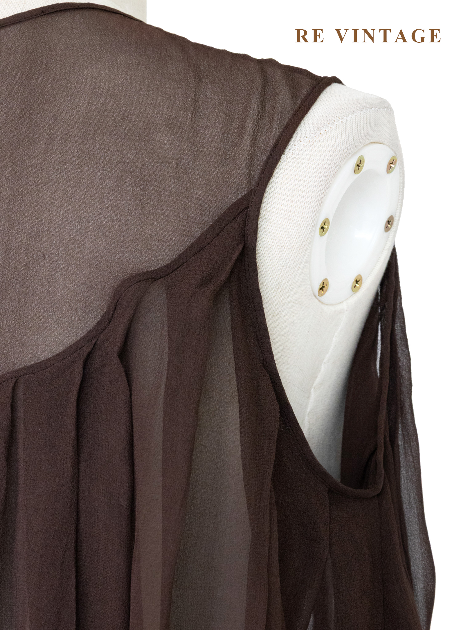 深褐流沙 - 極簡透感壓褶雪紡背心