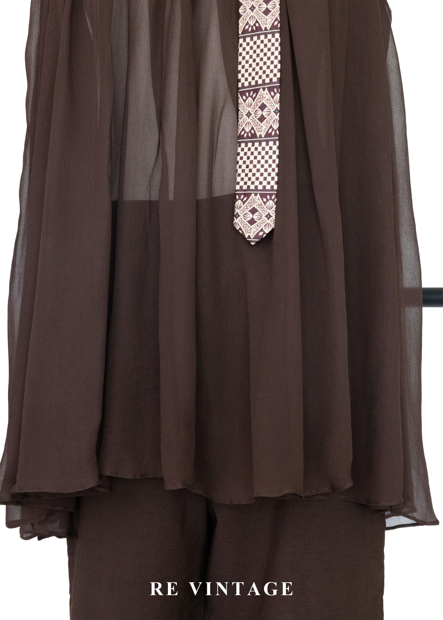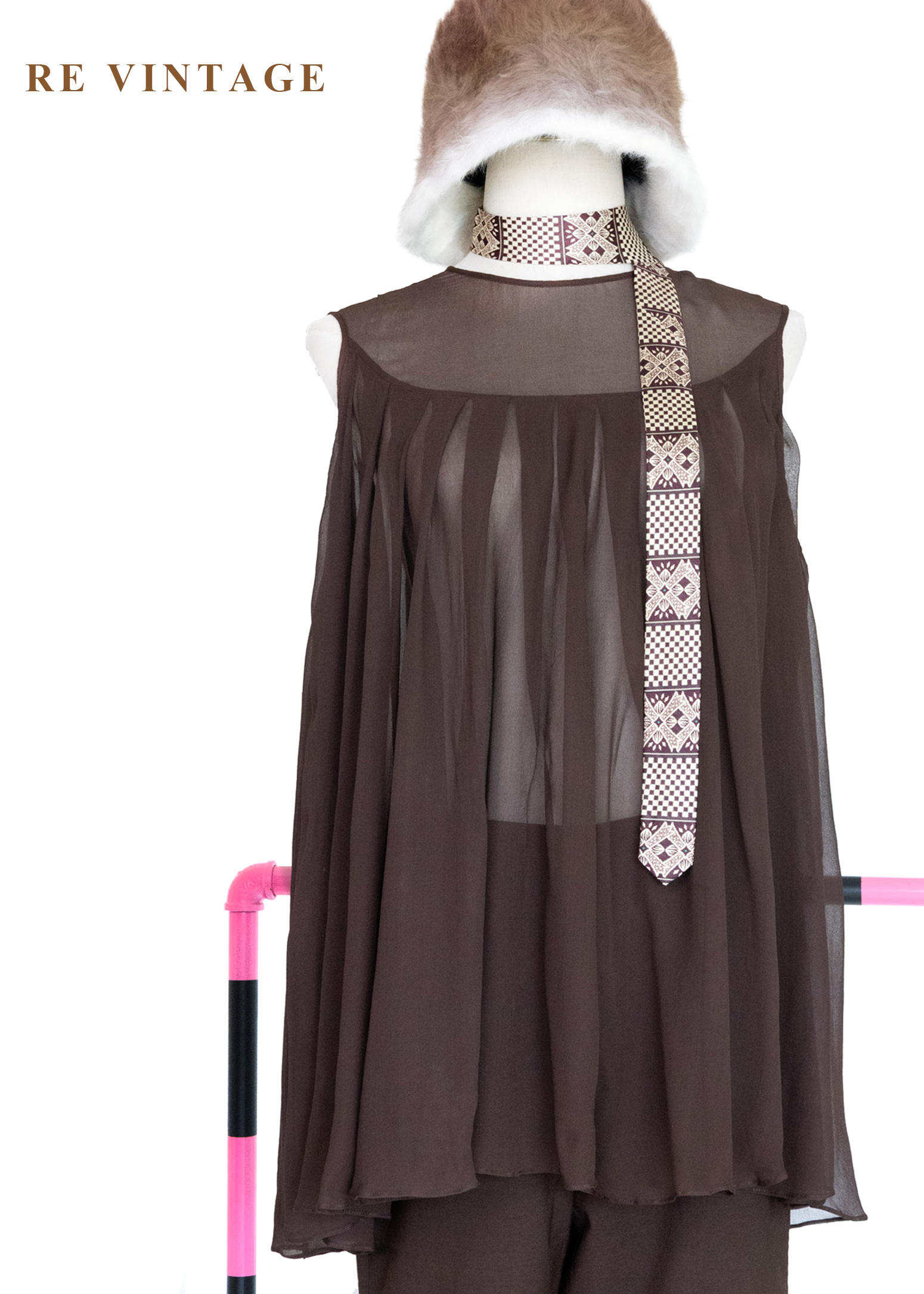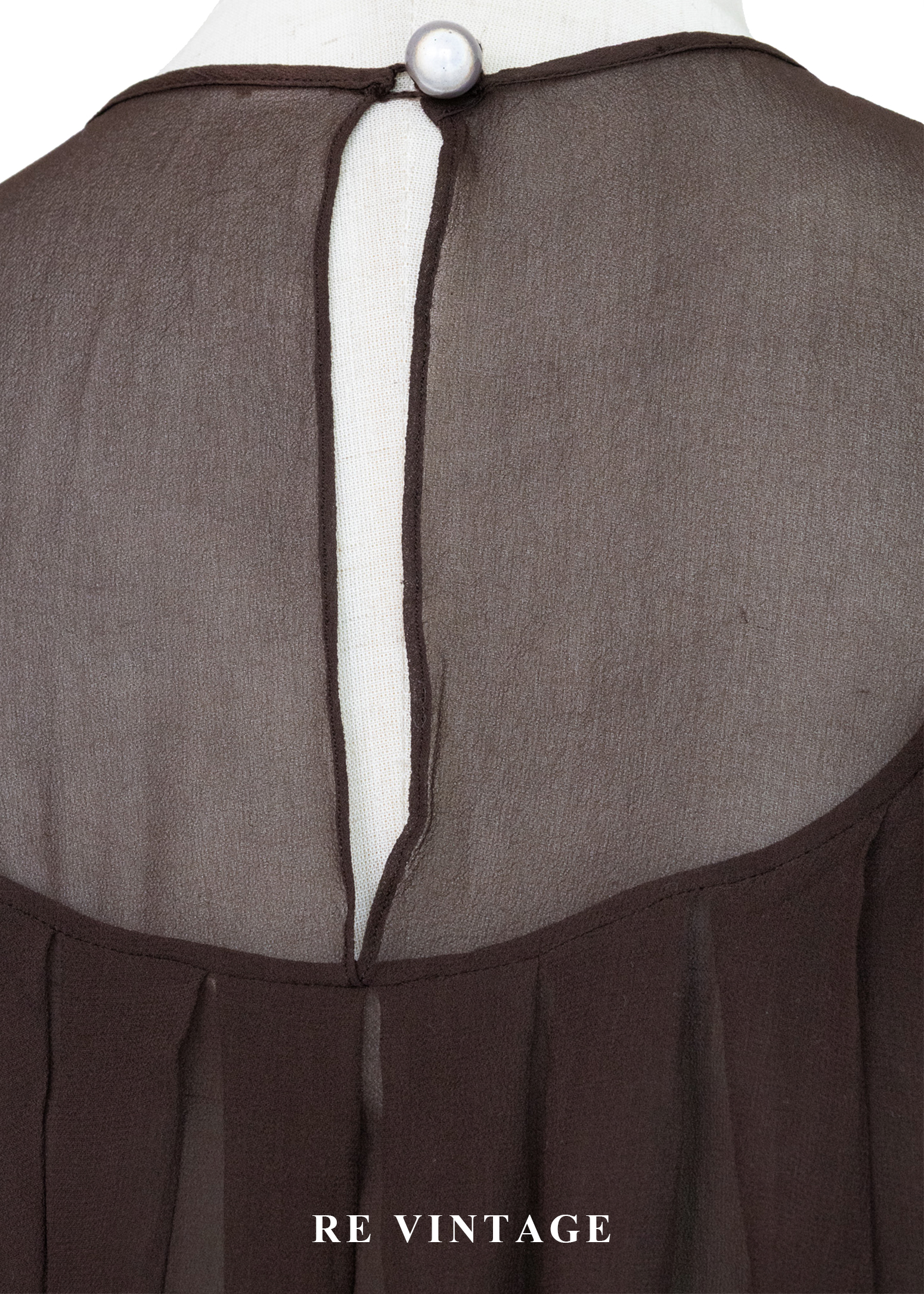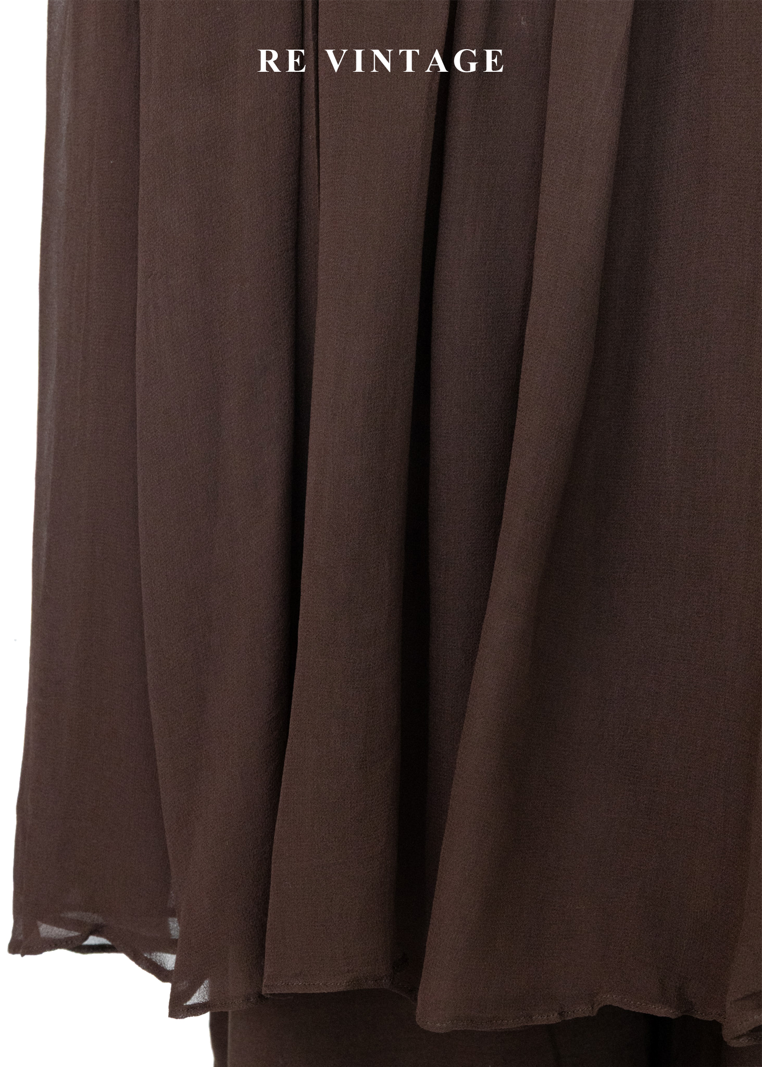 深褐流沙 - 極簡透感壓褶雪紡背心