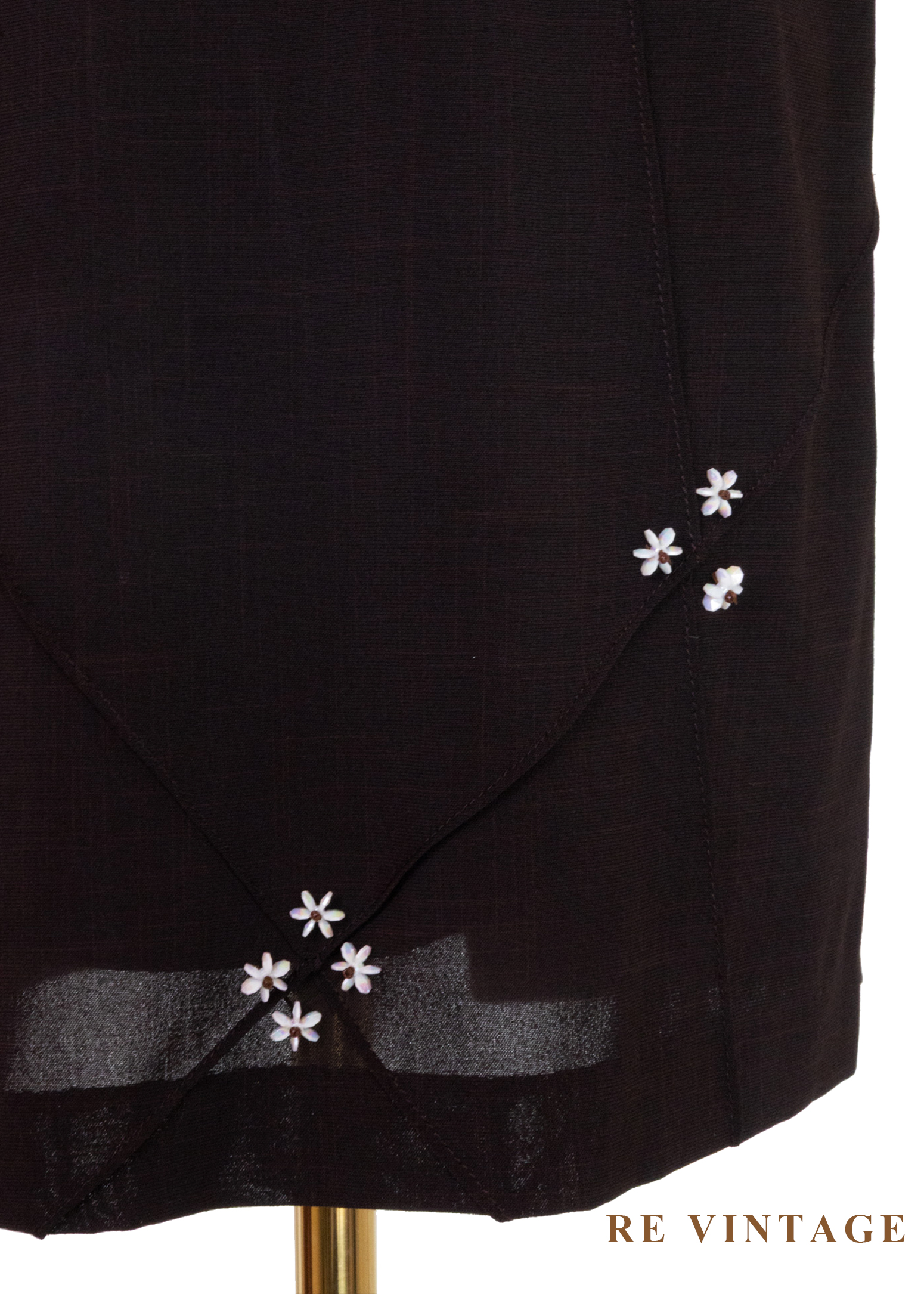 深褐色角落小白花綻放短裙(27")