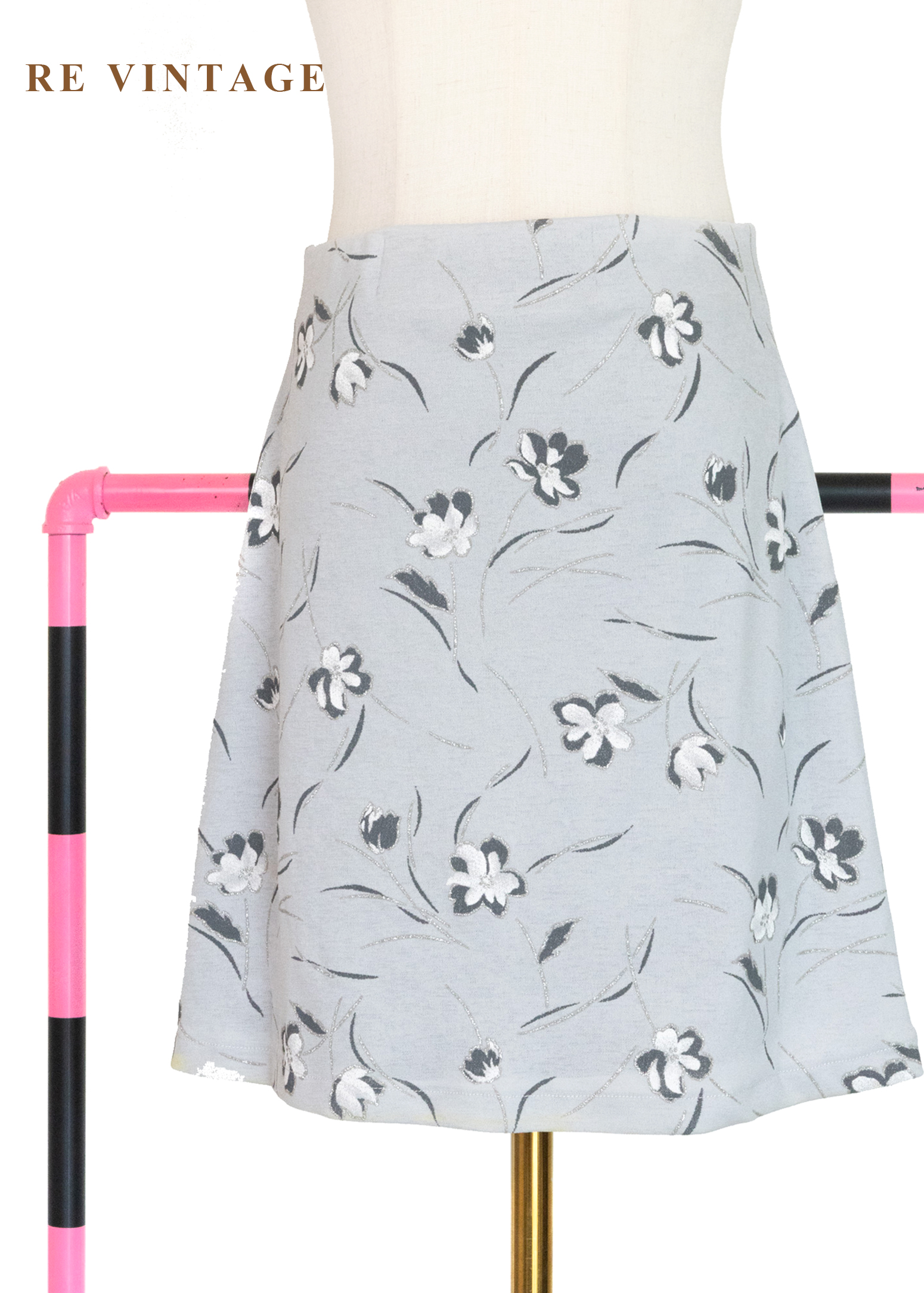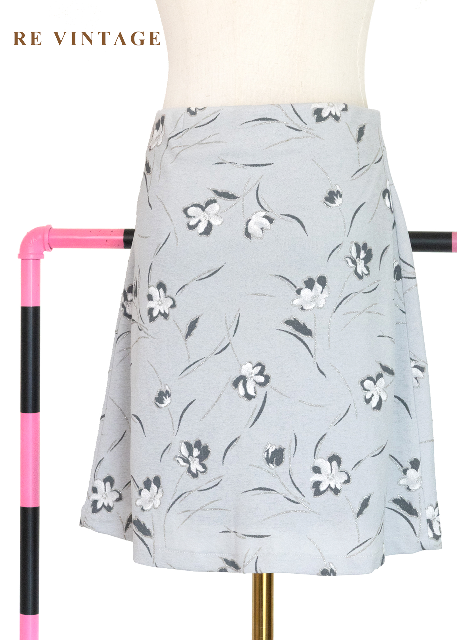 淺灰色柔軟小白花短裙(26-28")