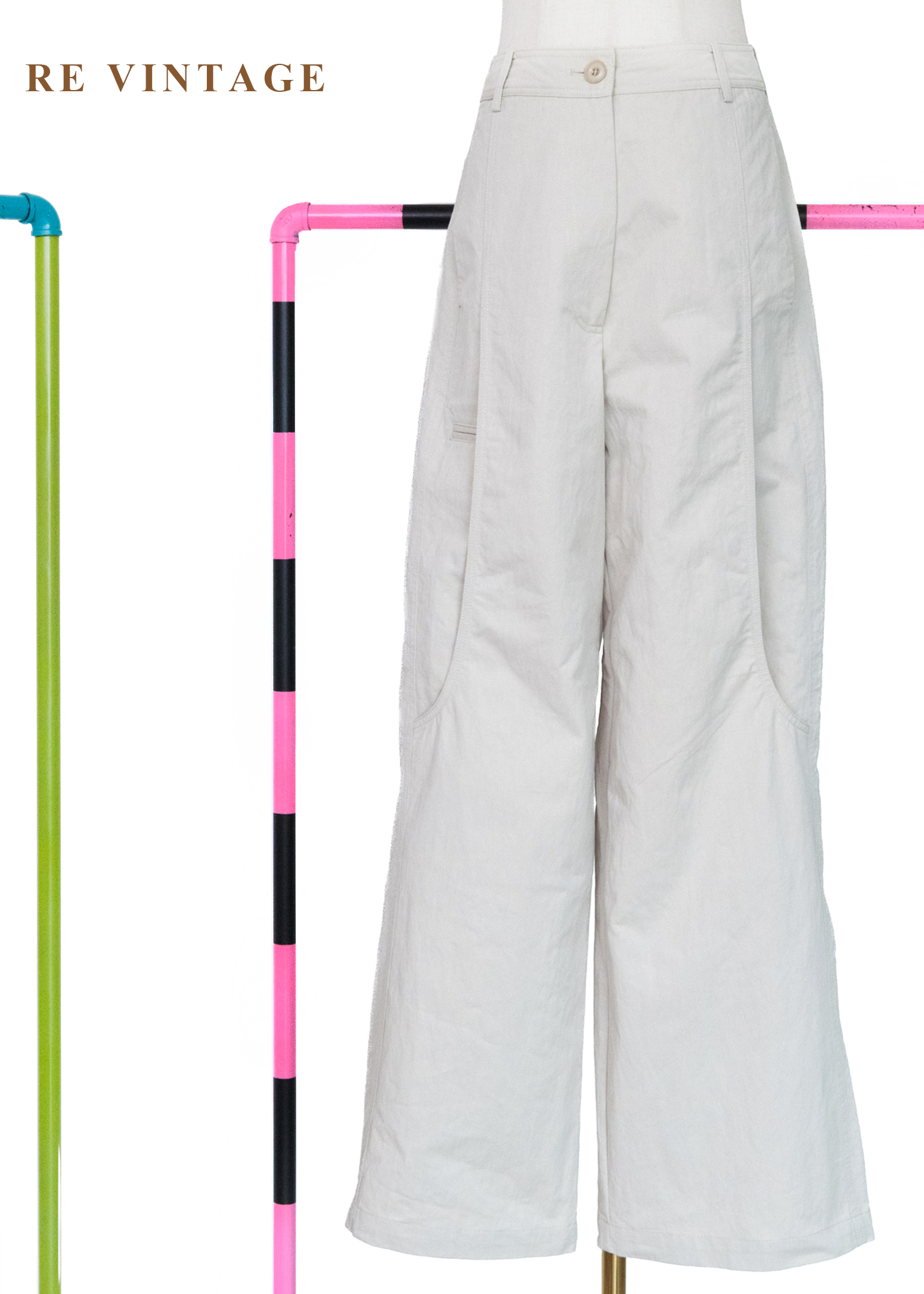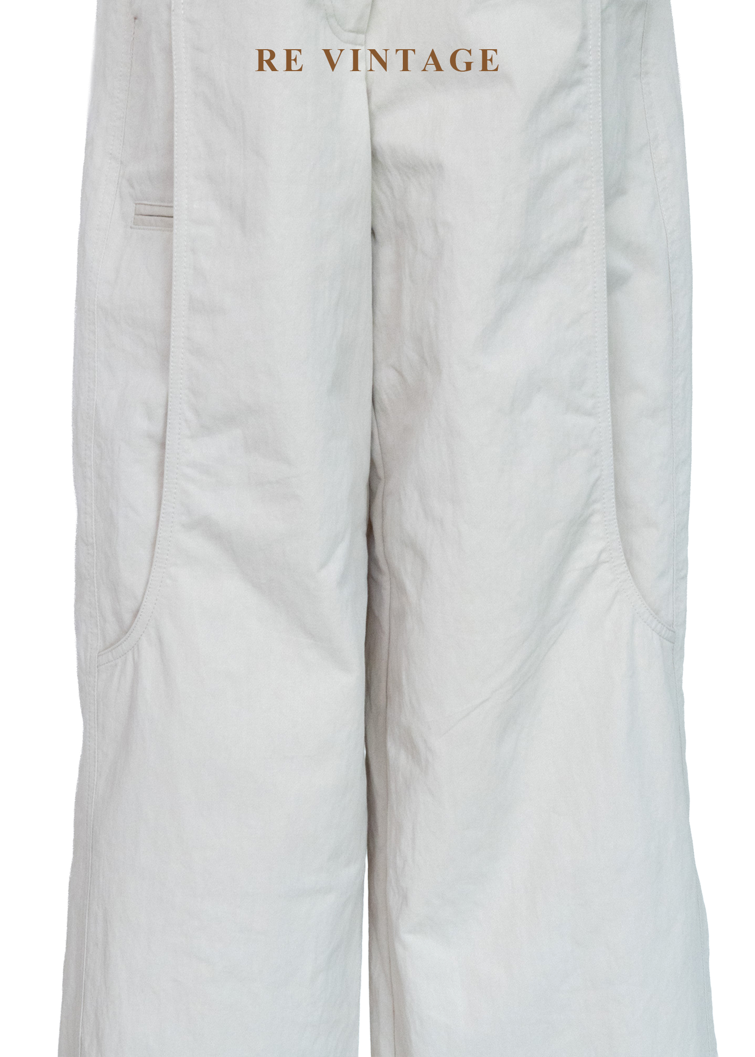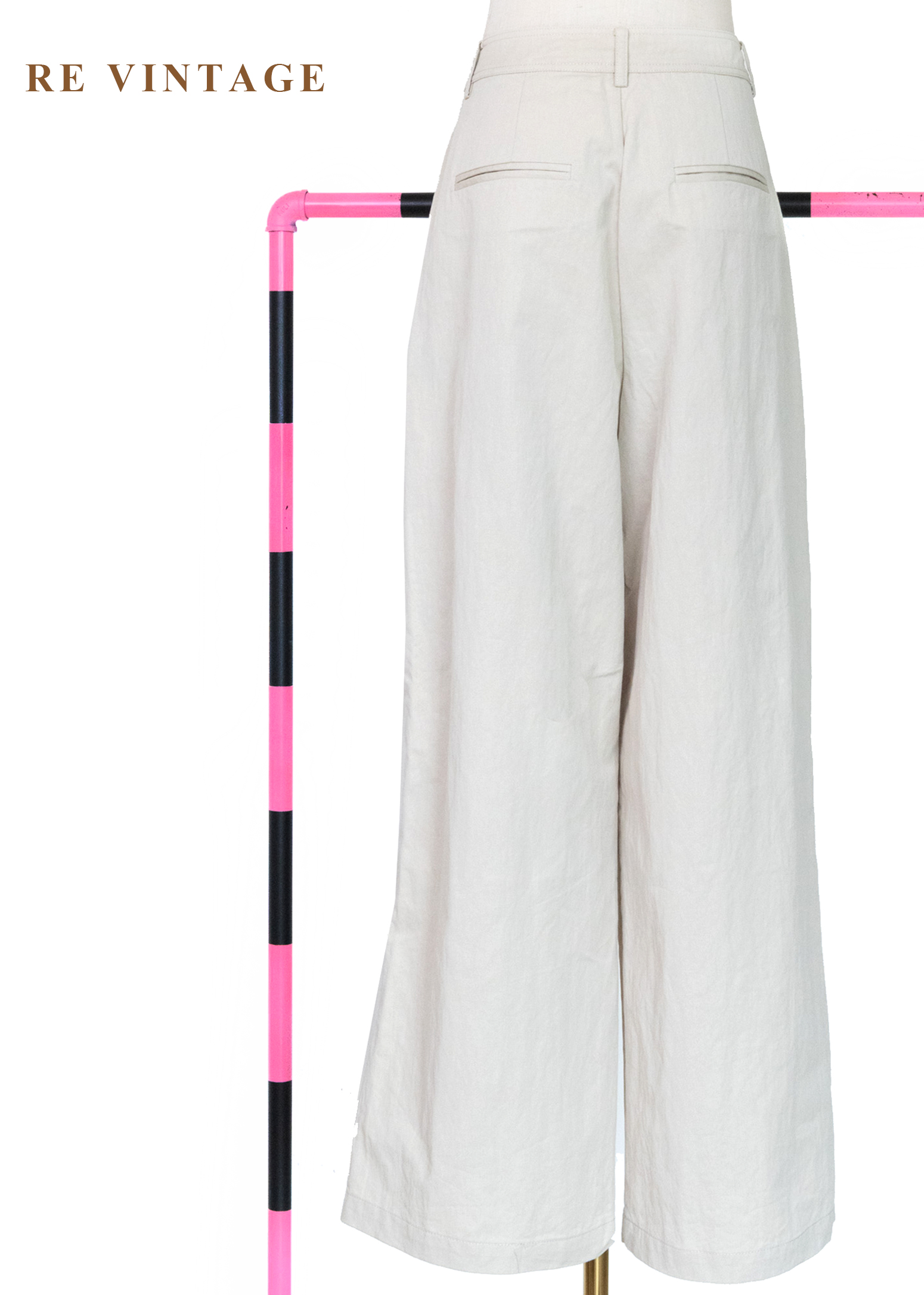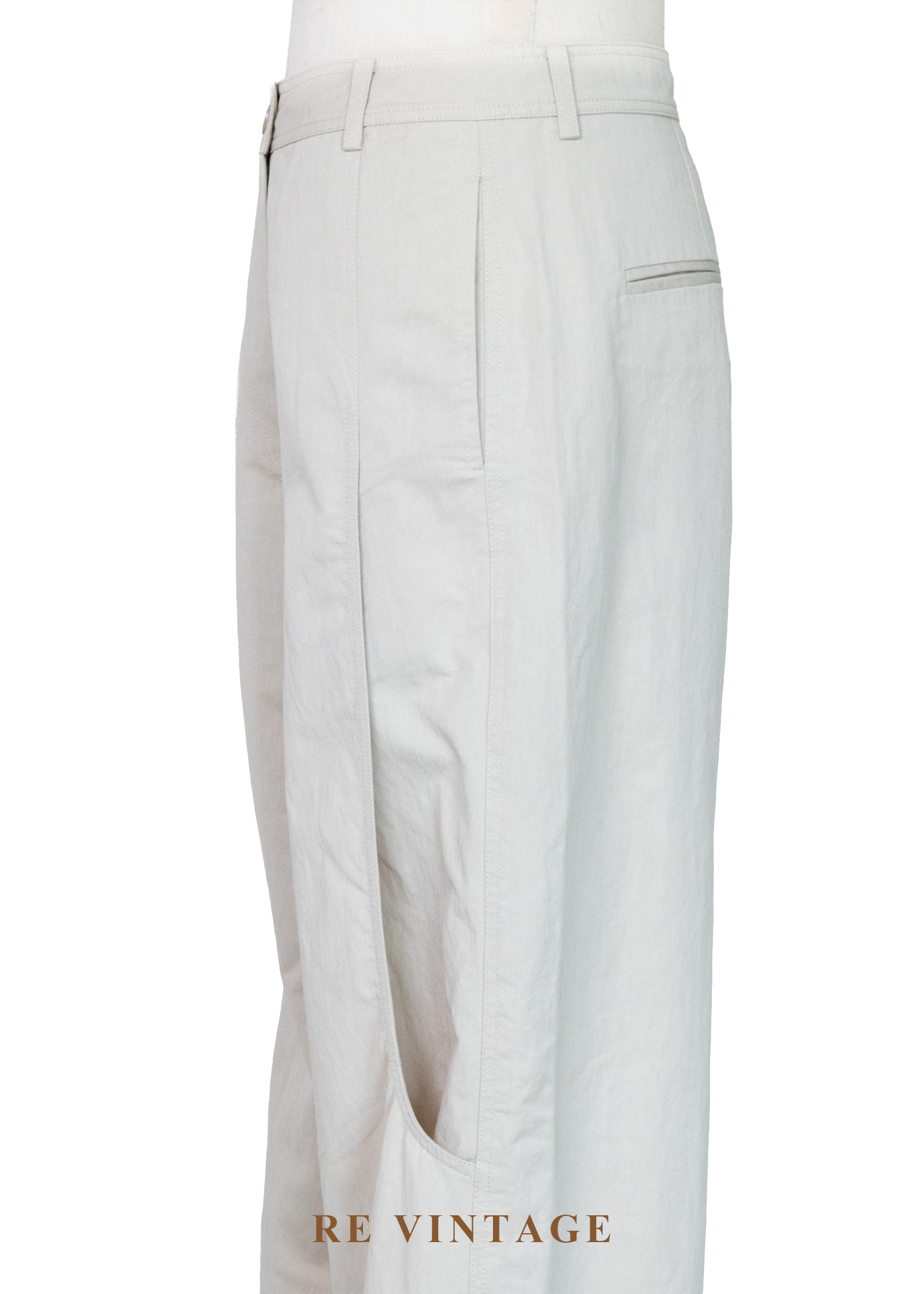 淺米灰挺闊棉麻質地工裝寬褲(24")