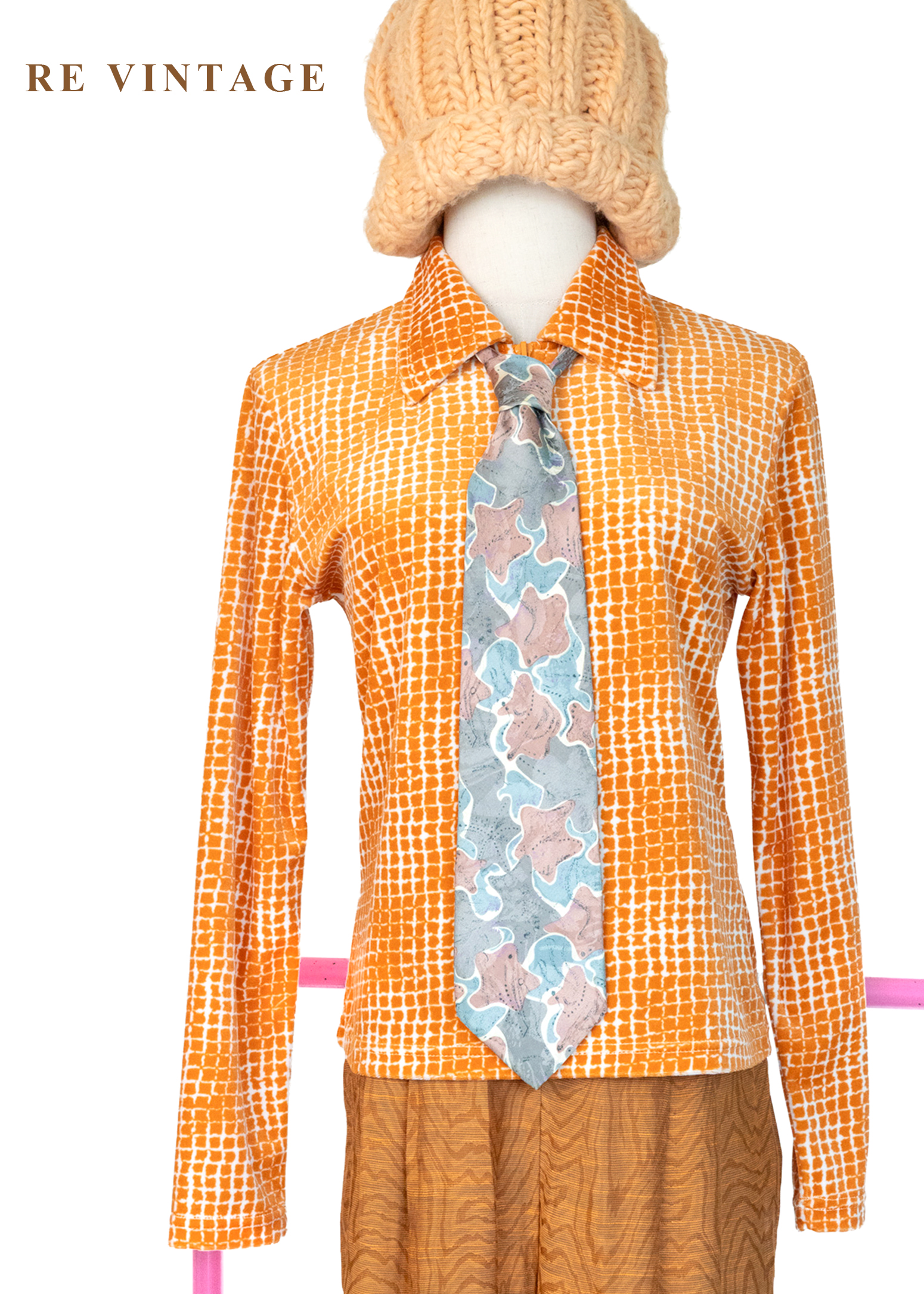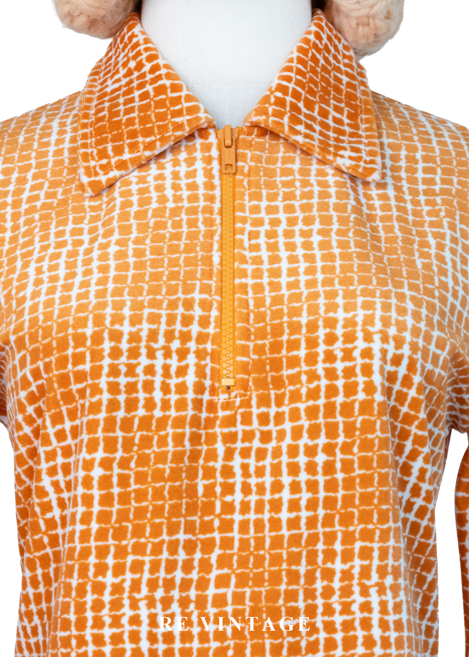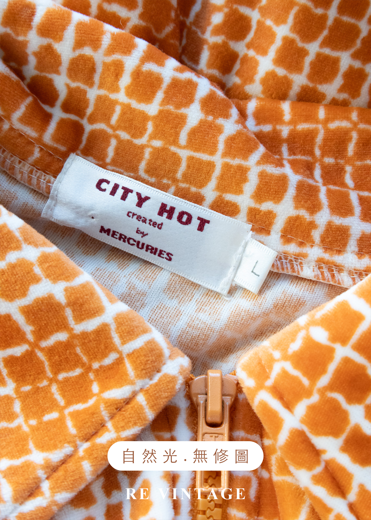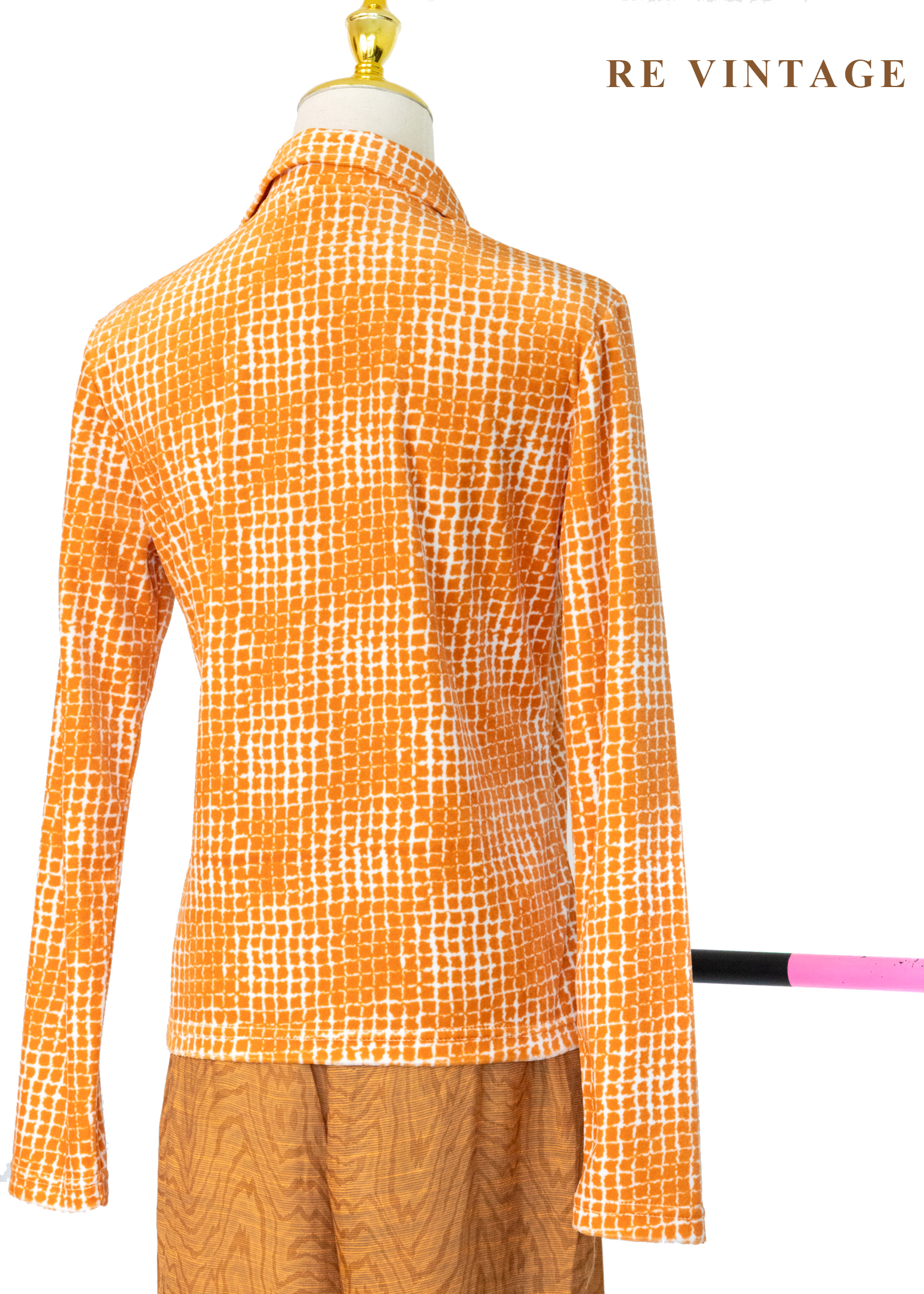溫潤橘子細密方格紋絨布上衣