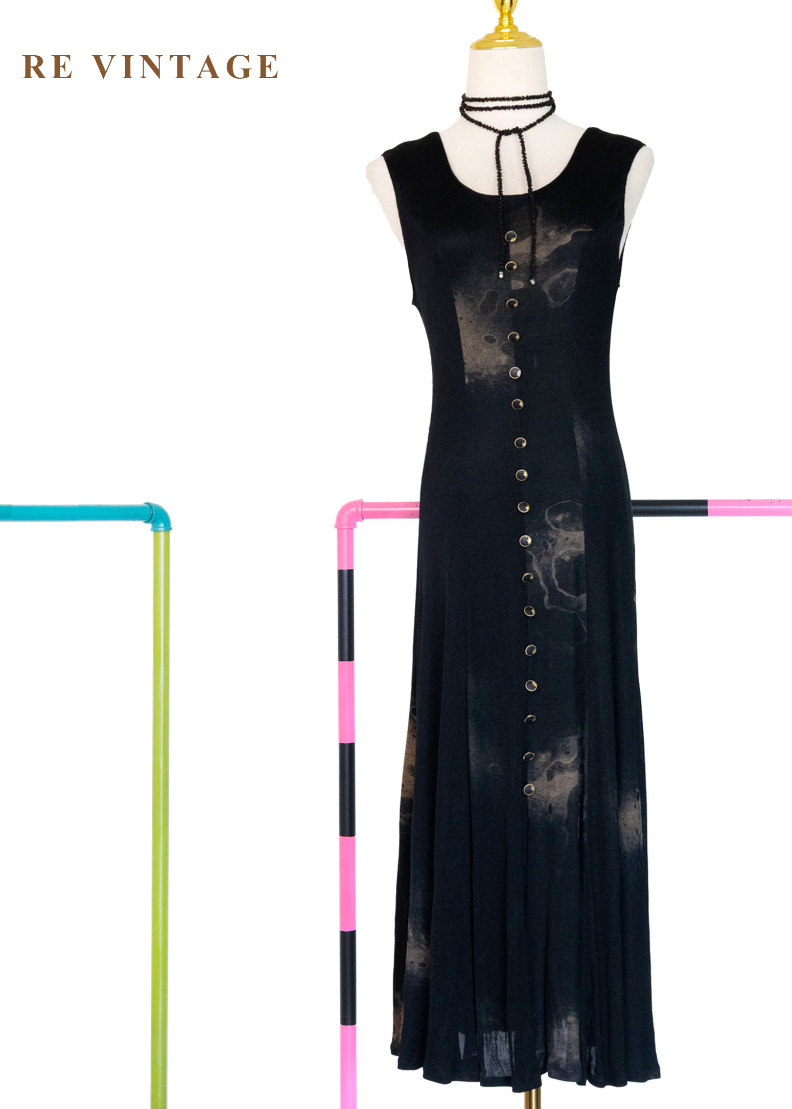 潑墨暈染排釦唯美長洋裝