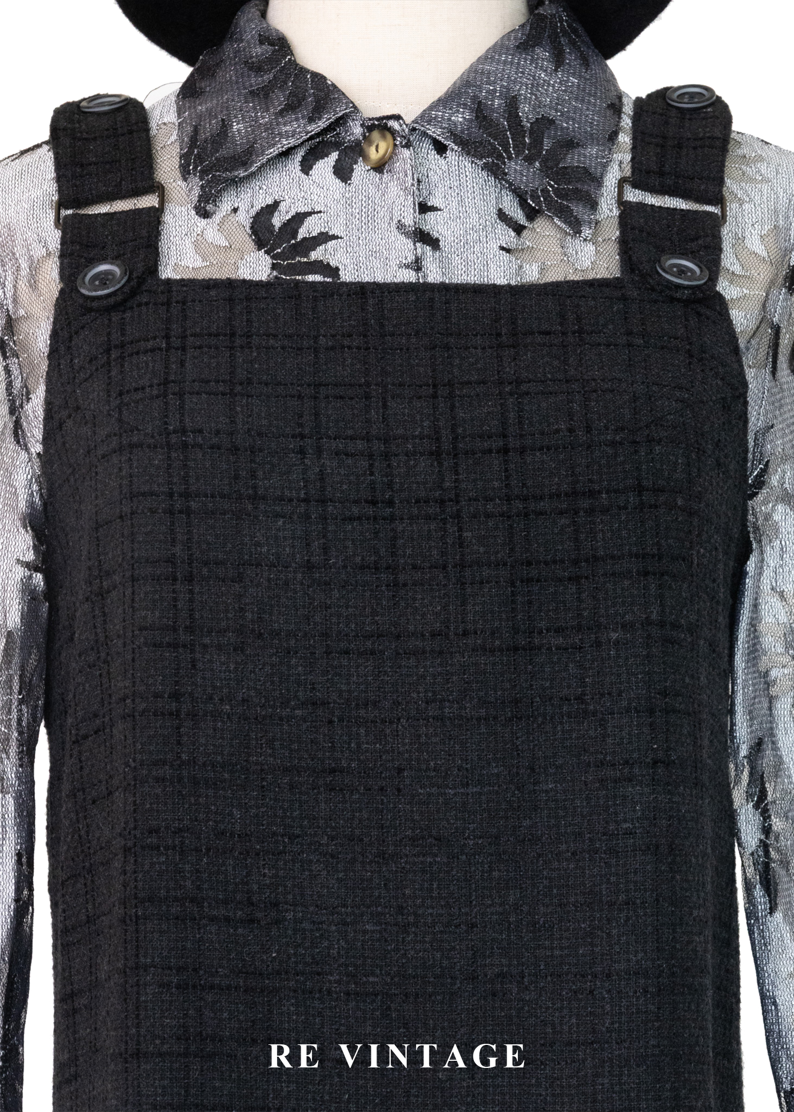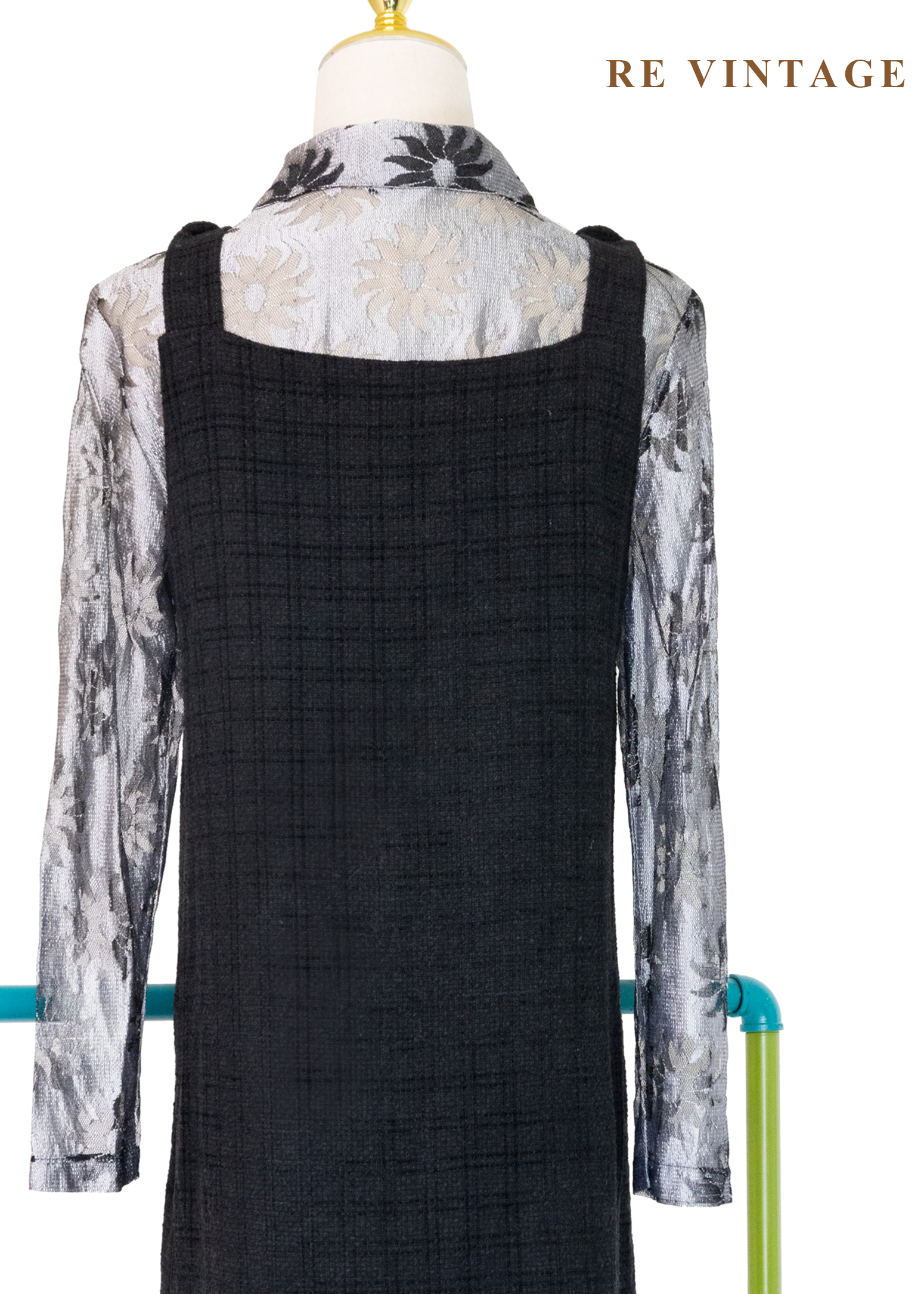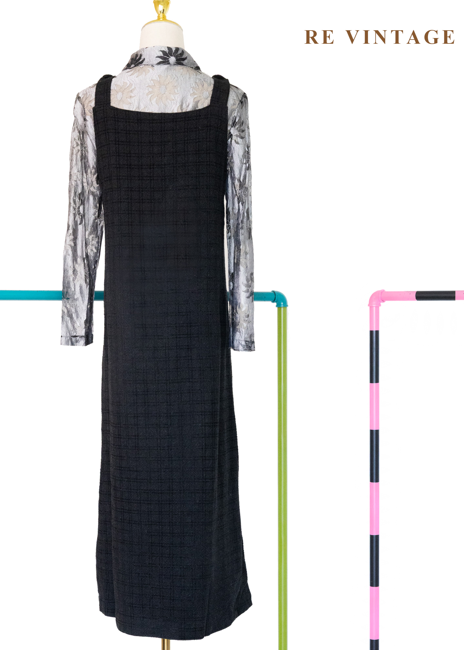 灰黑格紋織理吊帶裙