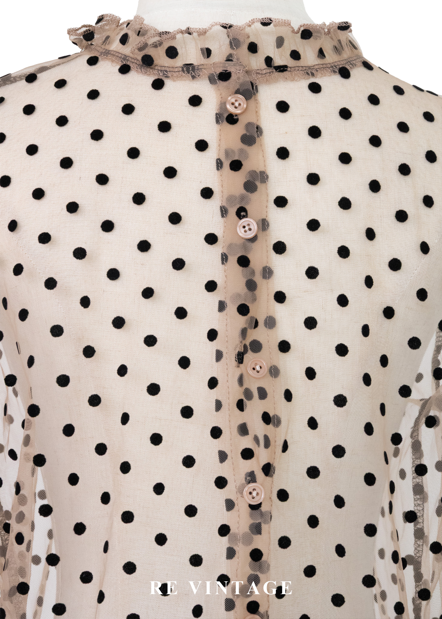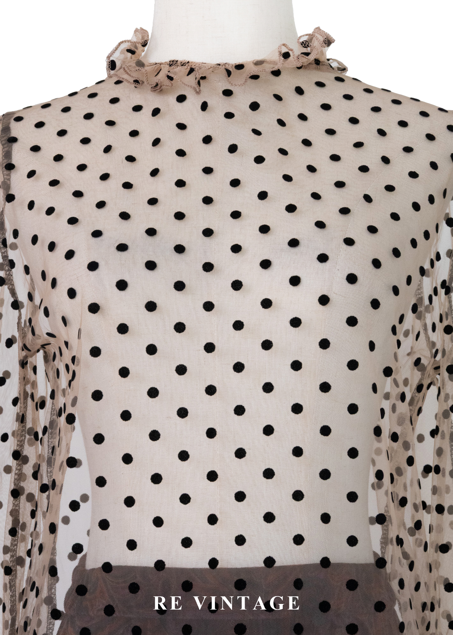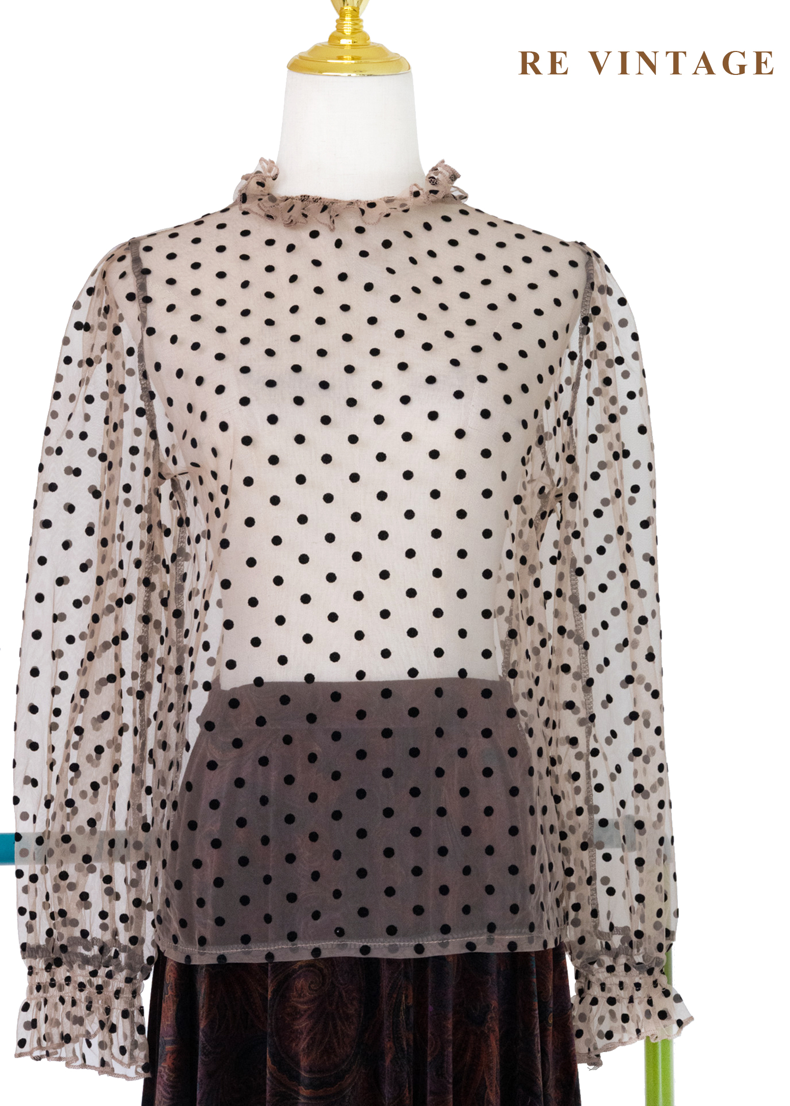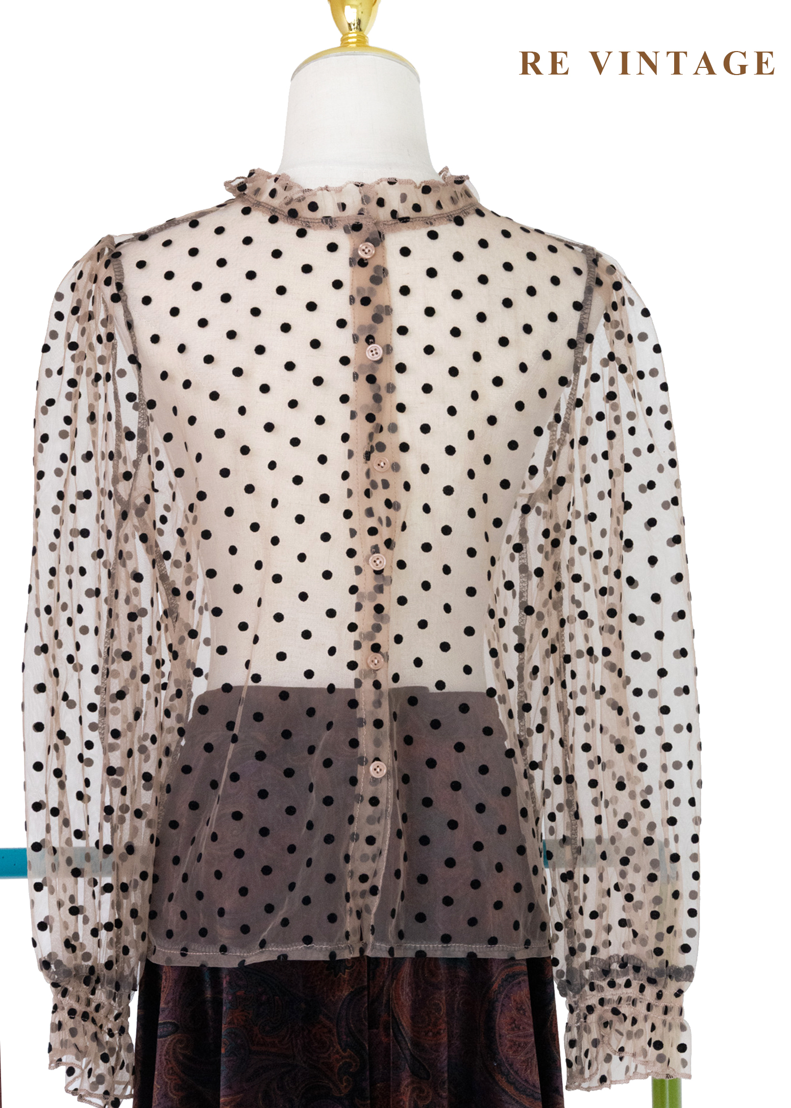粉橘透膚波點午茶時光上衣