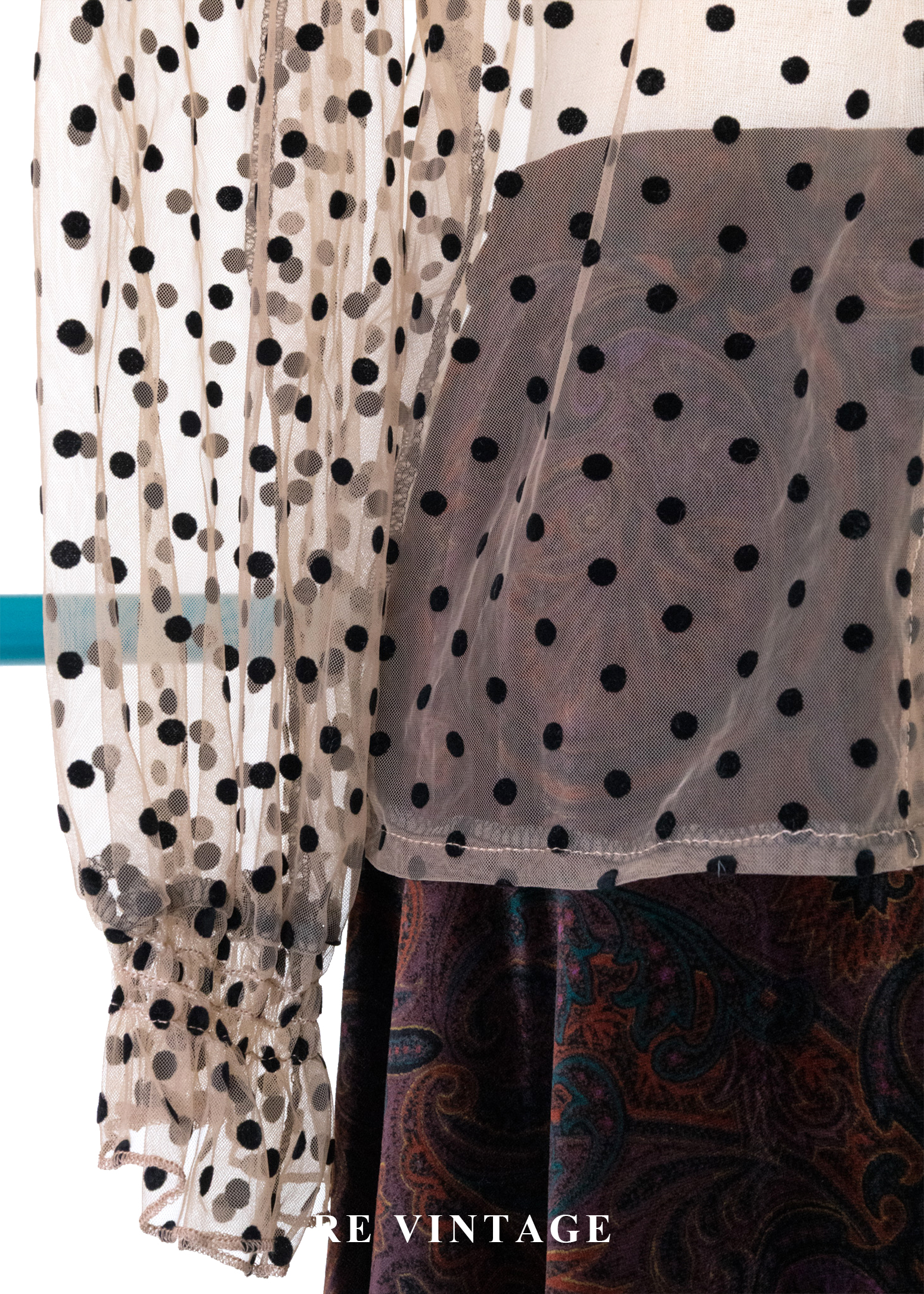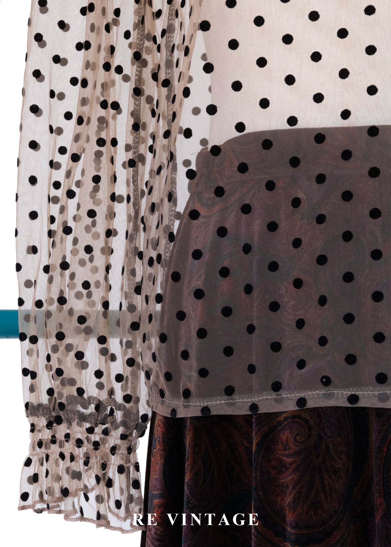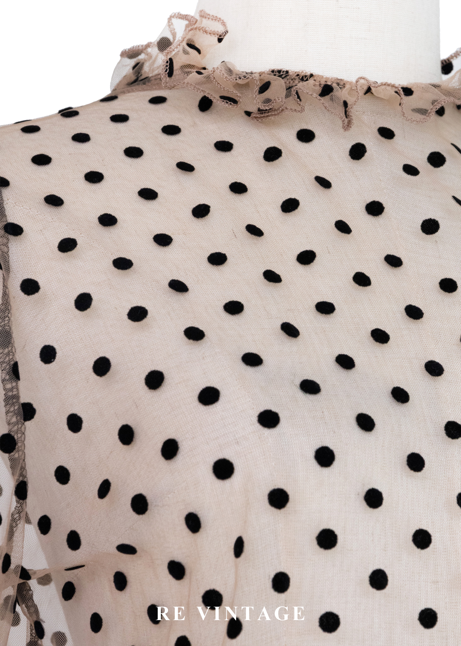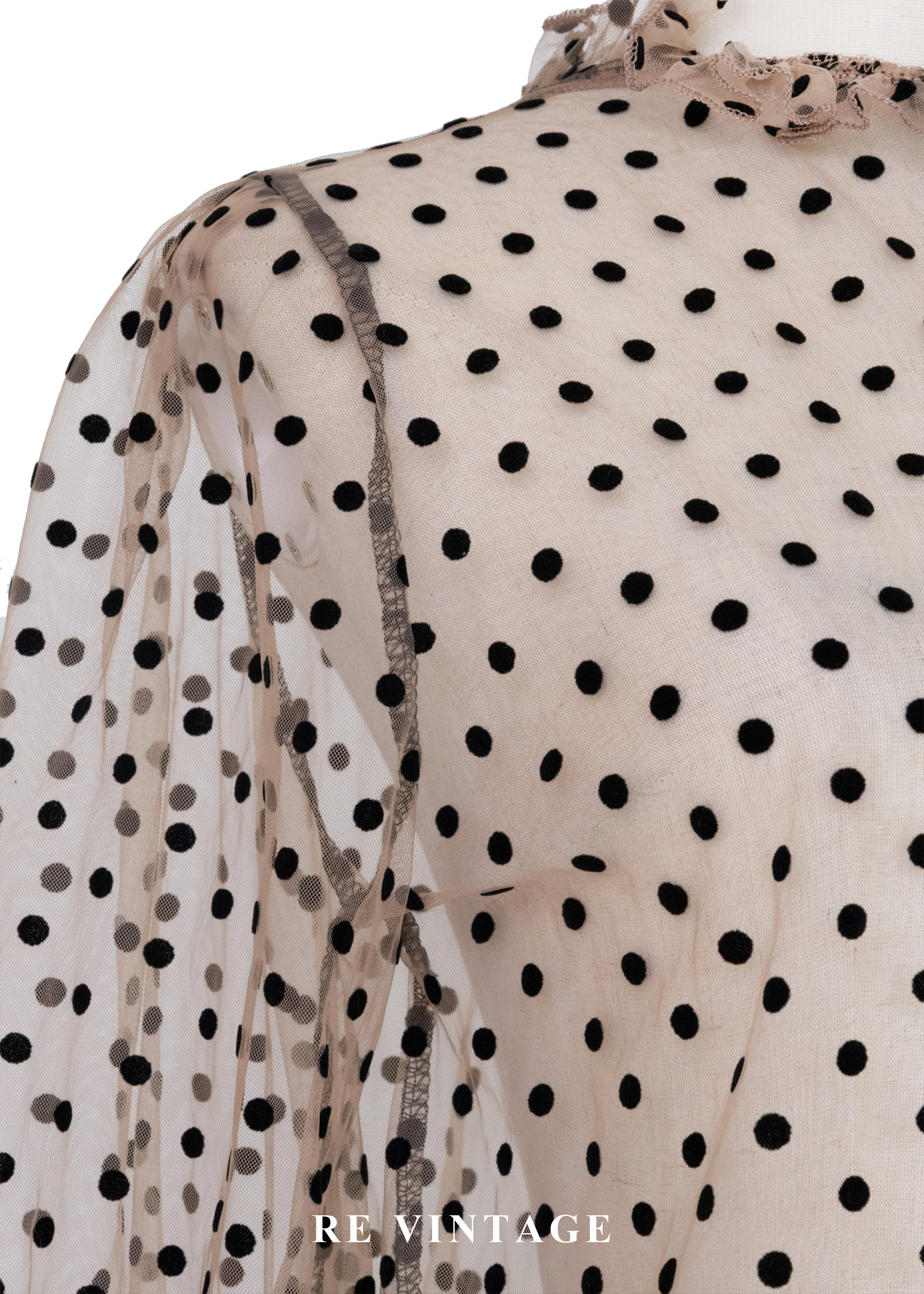 粉橘透膚波點午茶時光上衣