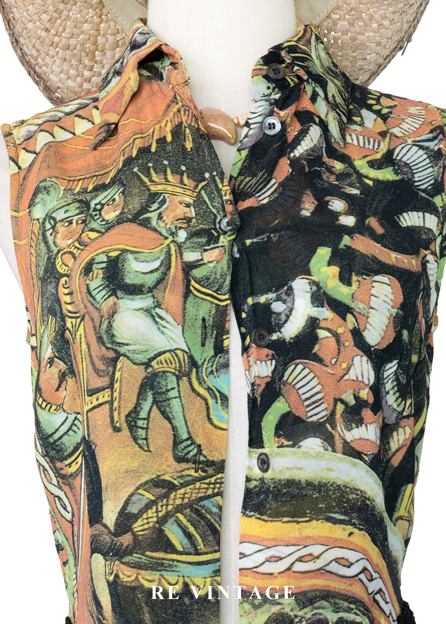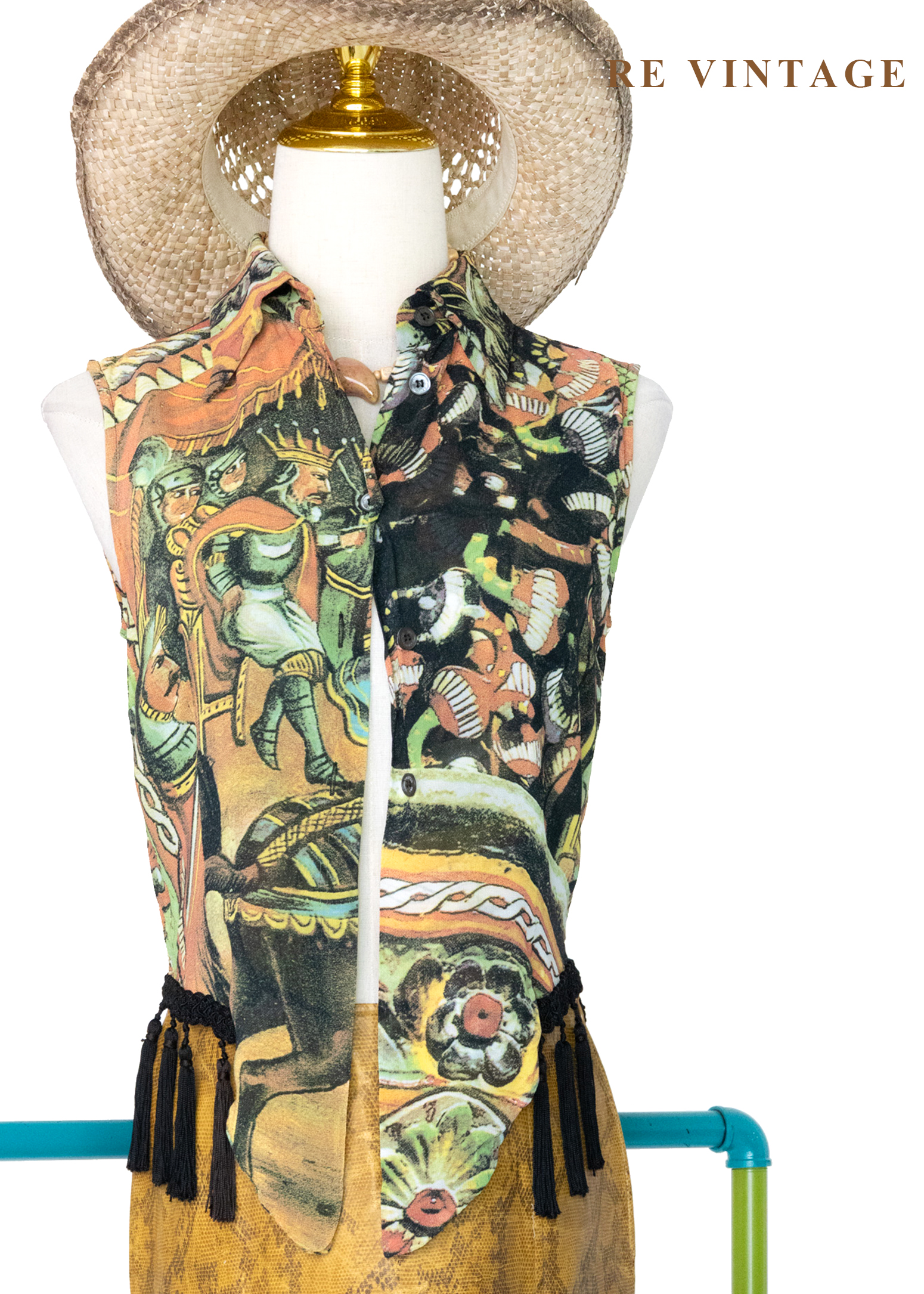 義大利製 - 中世紀滿版壁畫流蘇背心