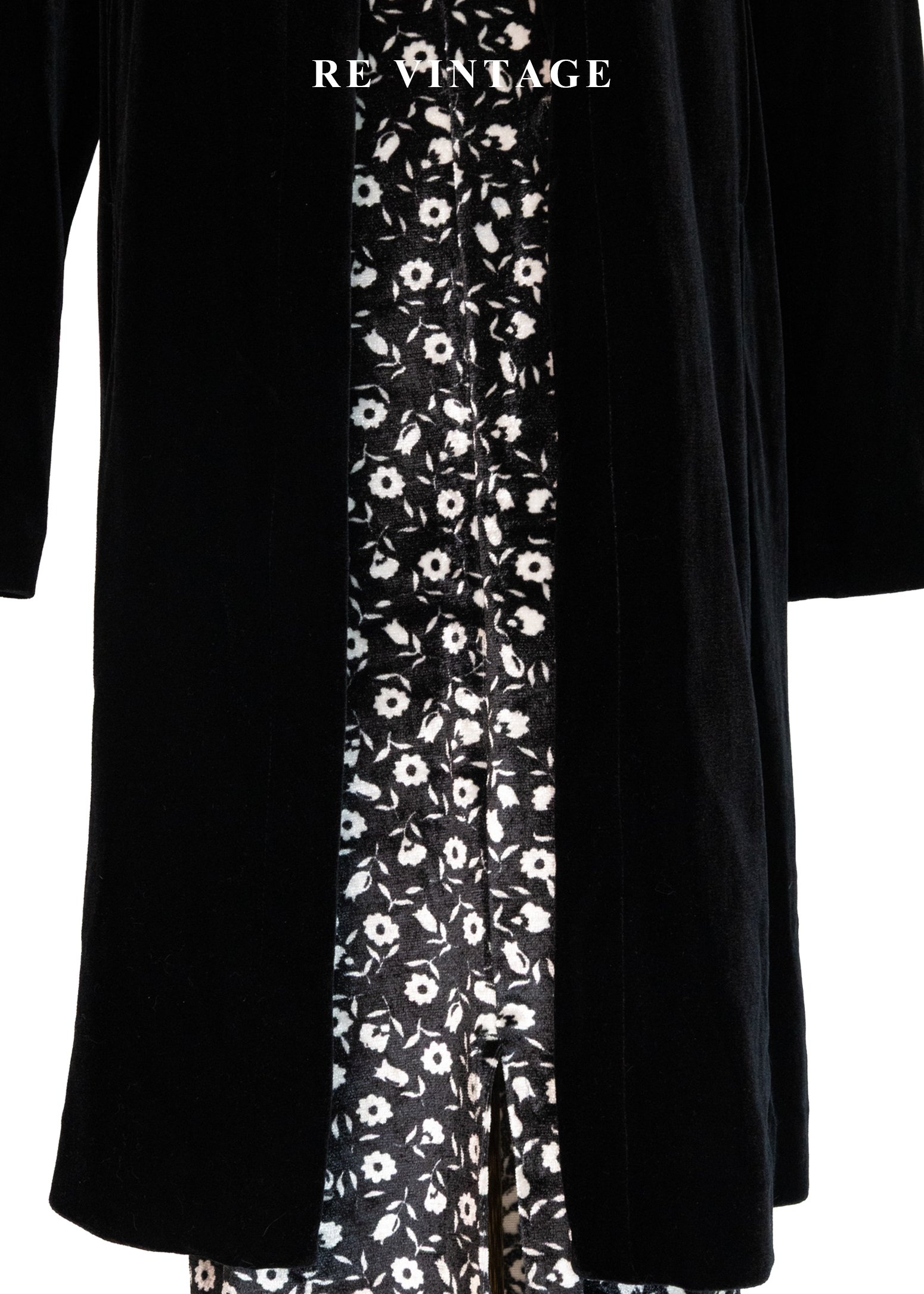 質感單品 - 優雅修身黑絨洋裝/長版罩衫