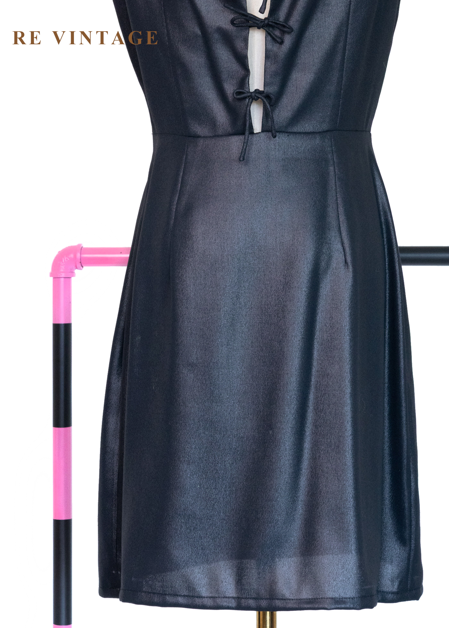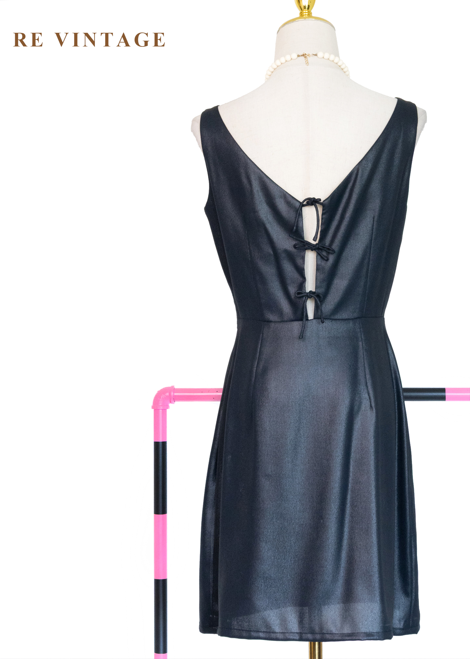 質感單品 - 黑光繫結簡約露背迷你洋裝