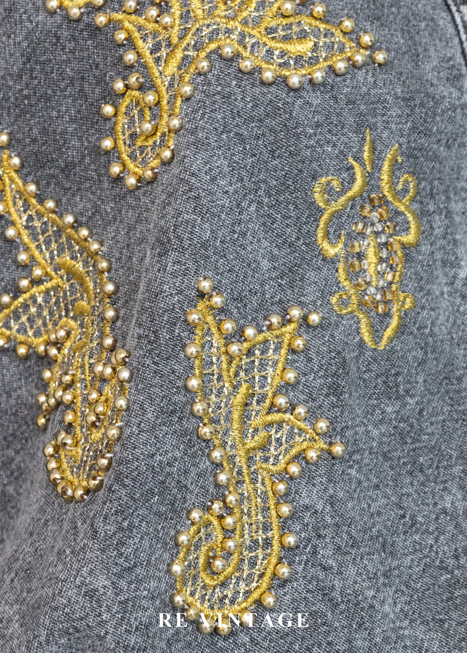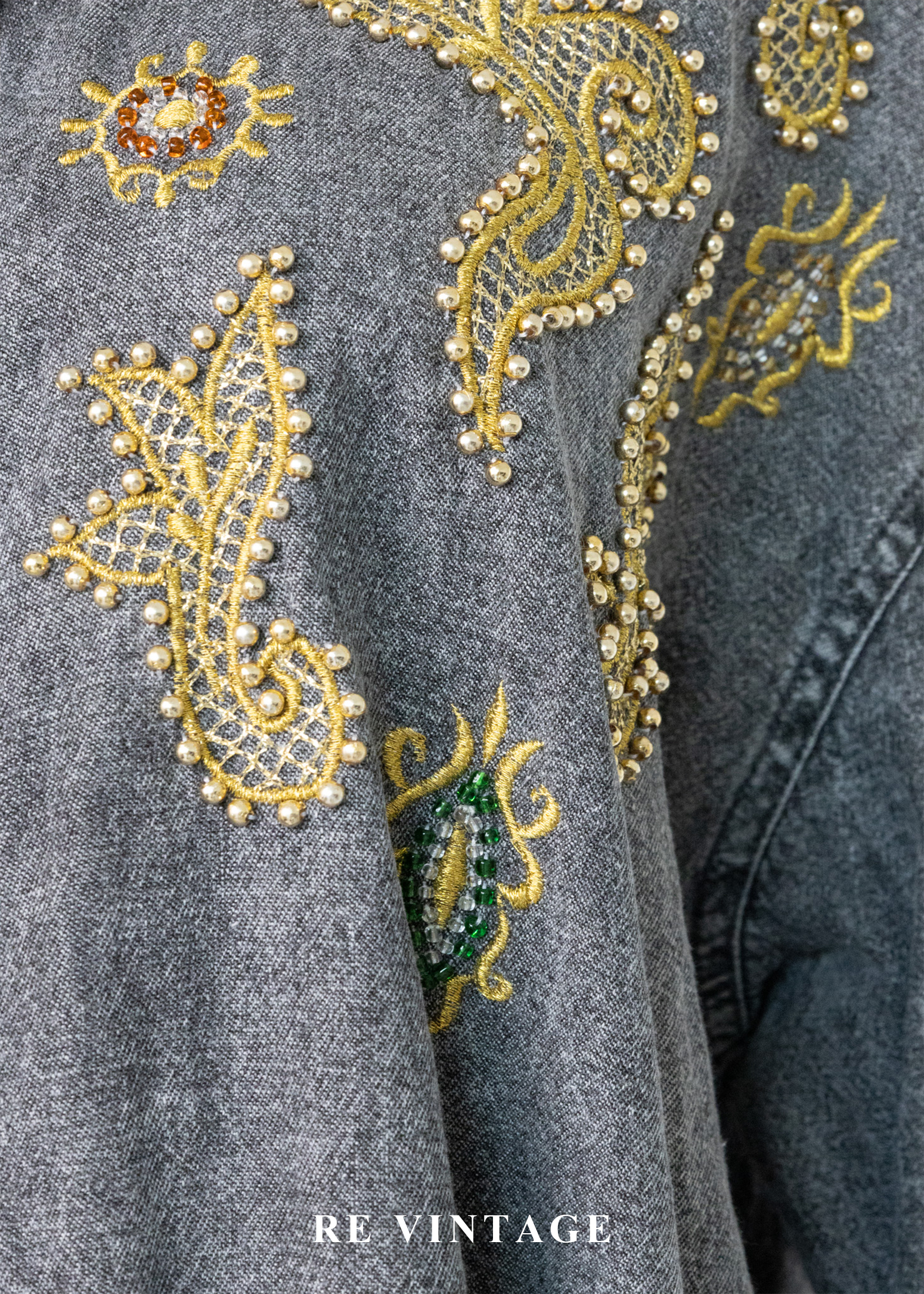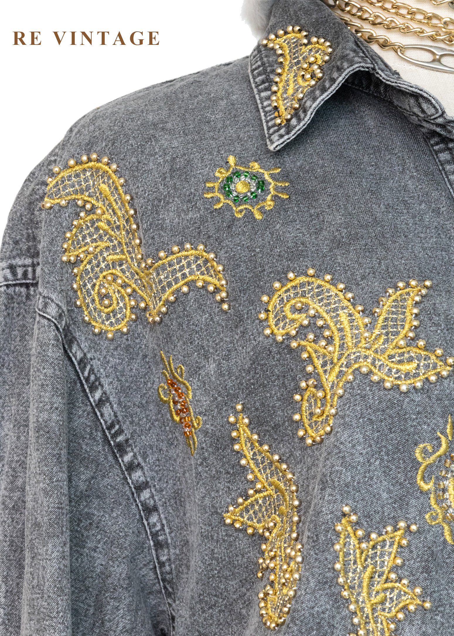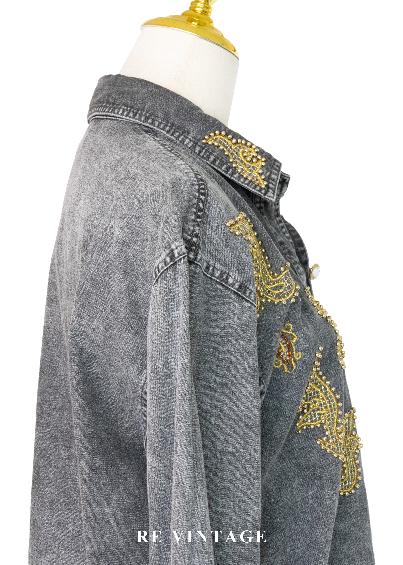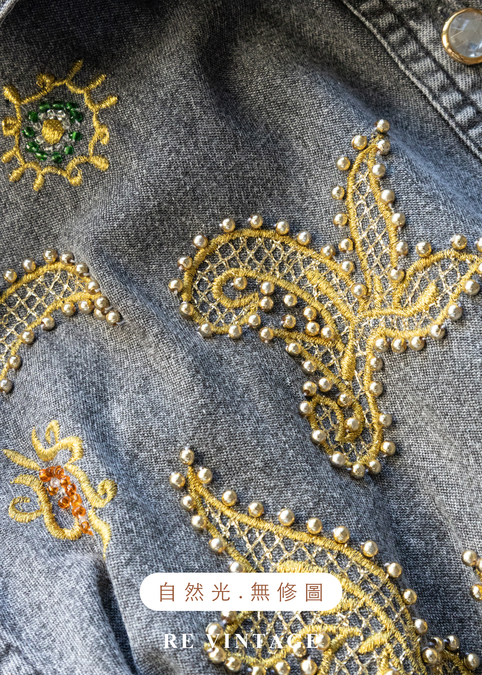 • 正面胸口及袖口非常漂亮的金色紗線刺繡及珠珠細節