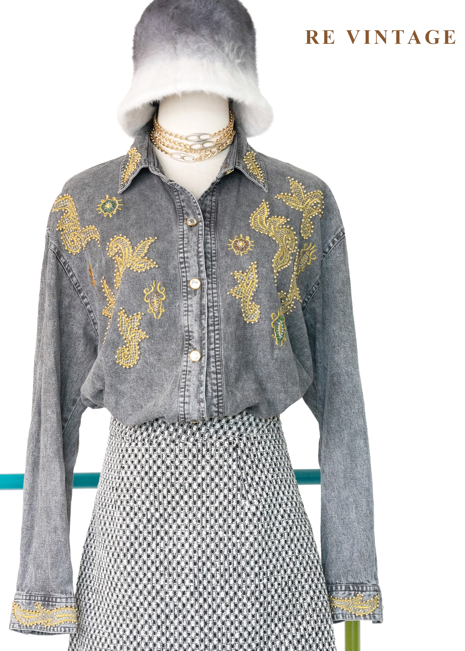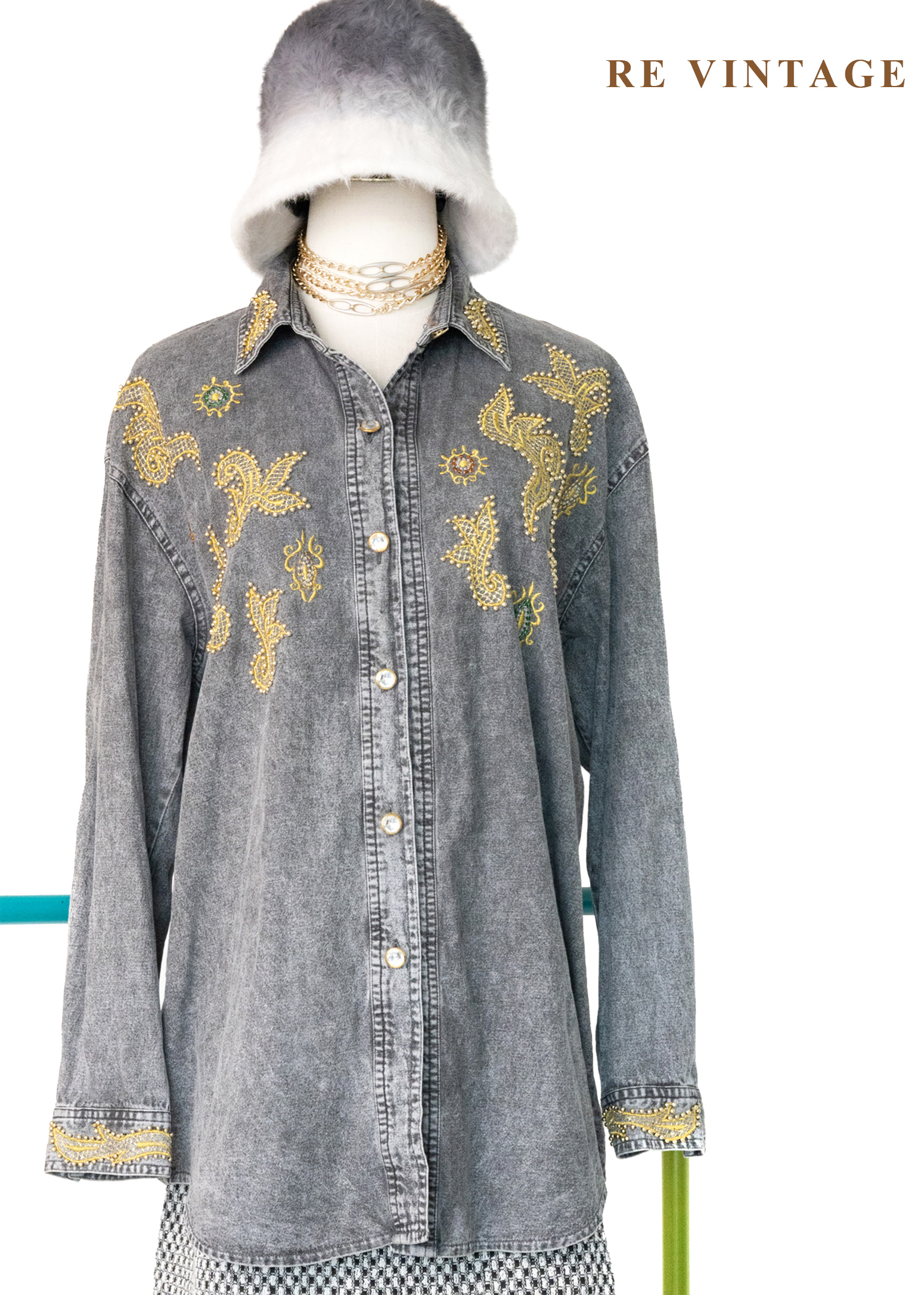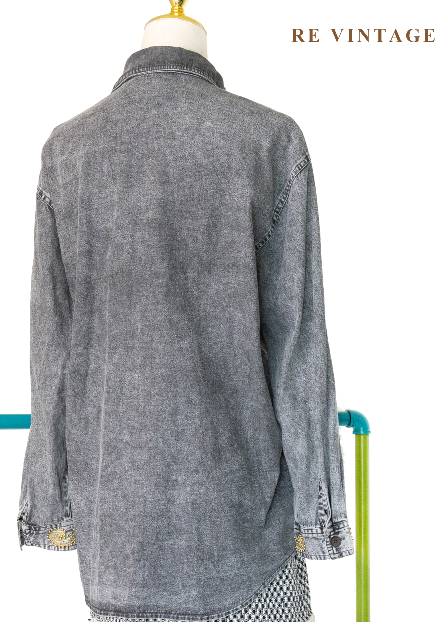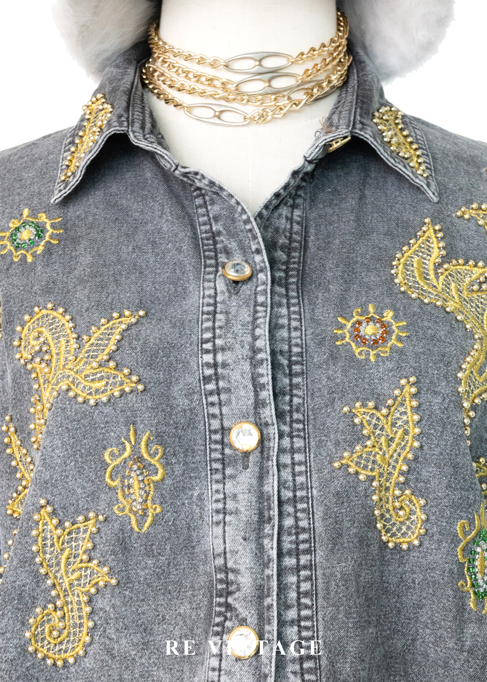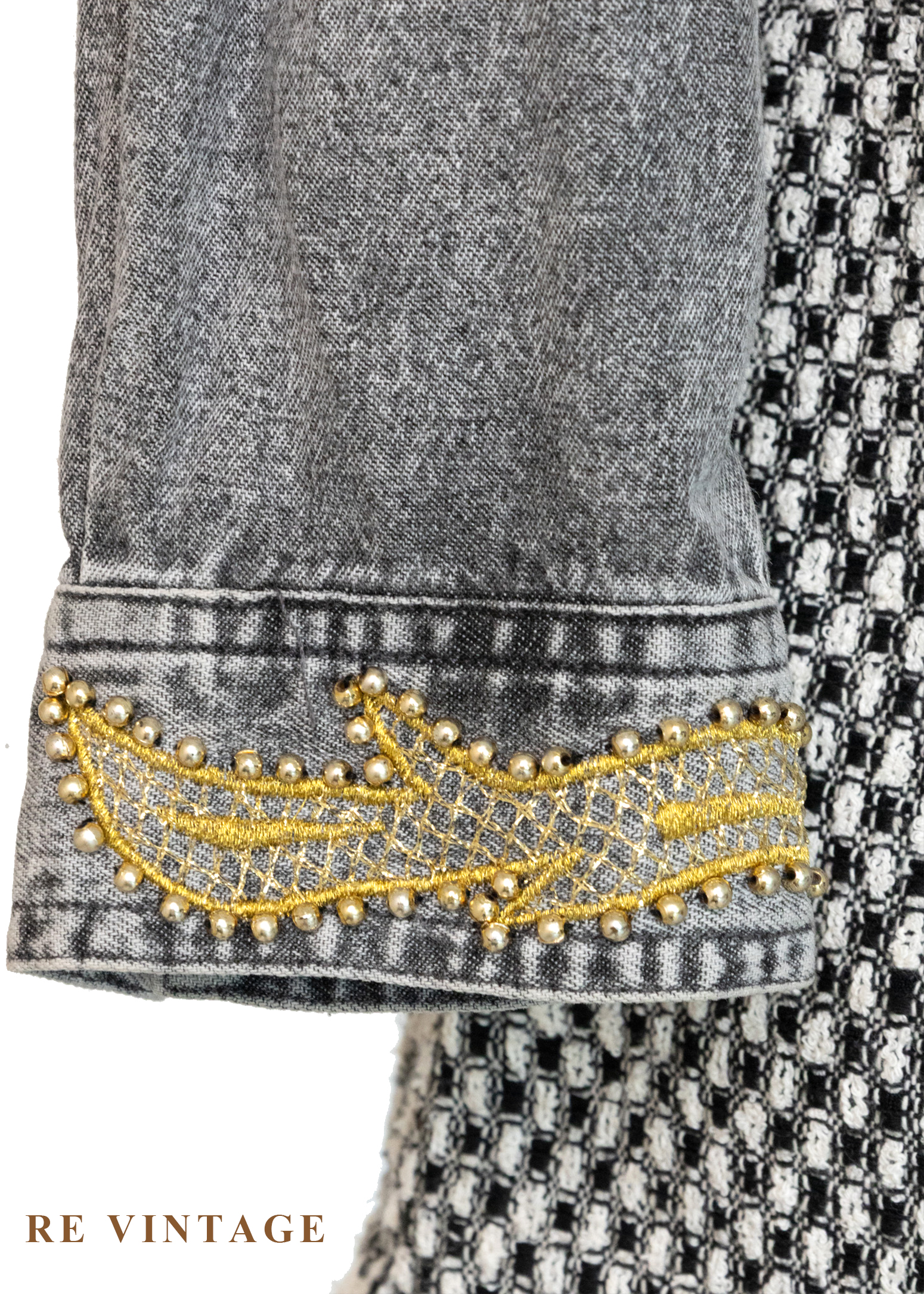 • 正面胸口及袖口非常漂亮的金色紗線刺繡及珠珠細節