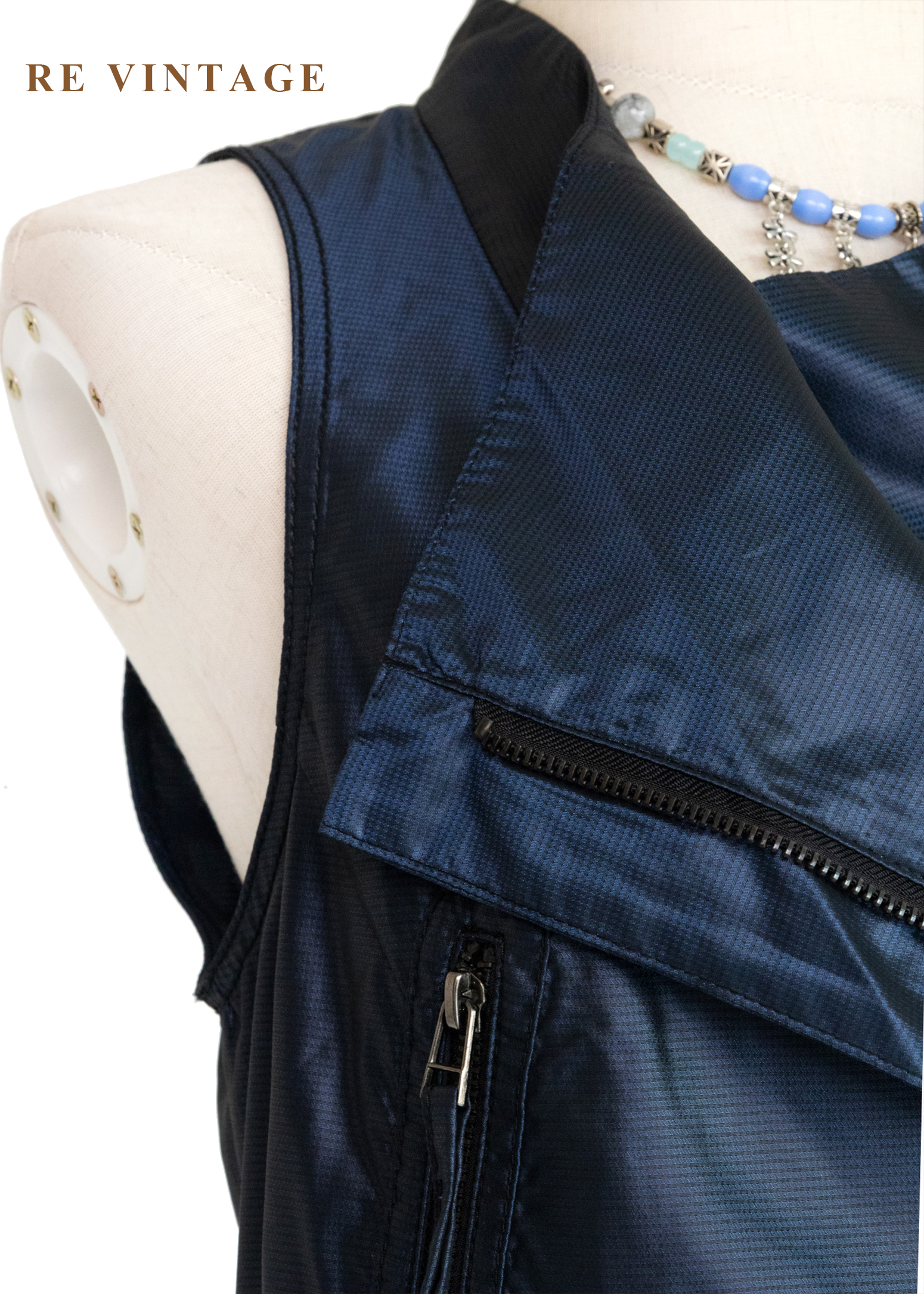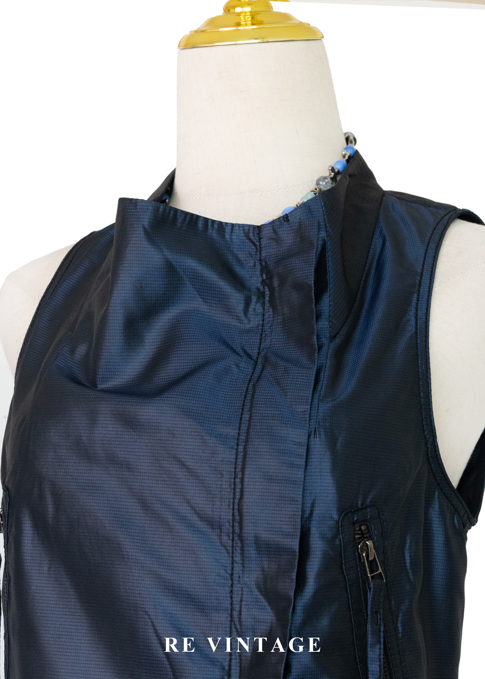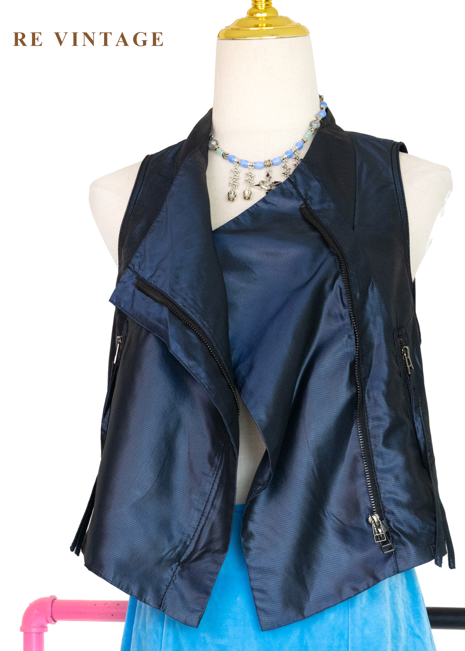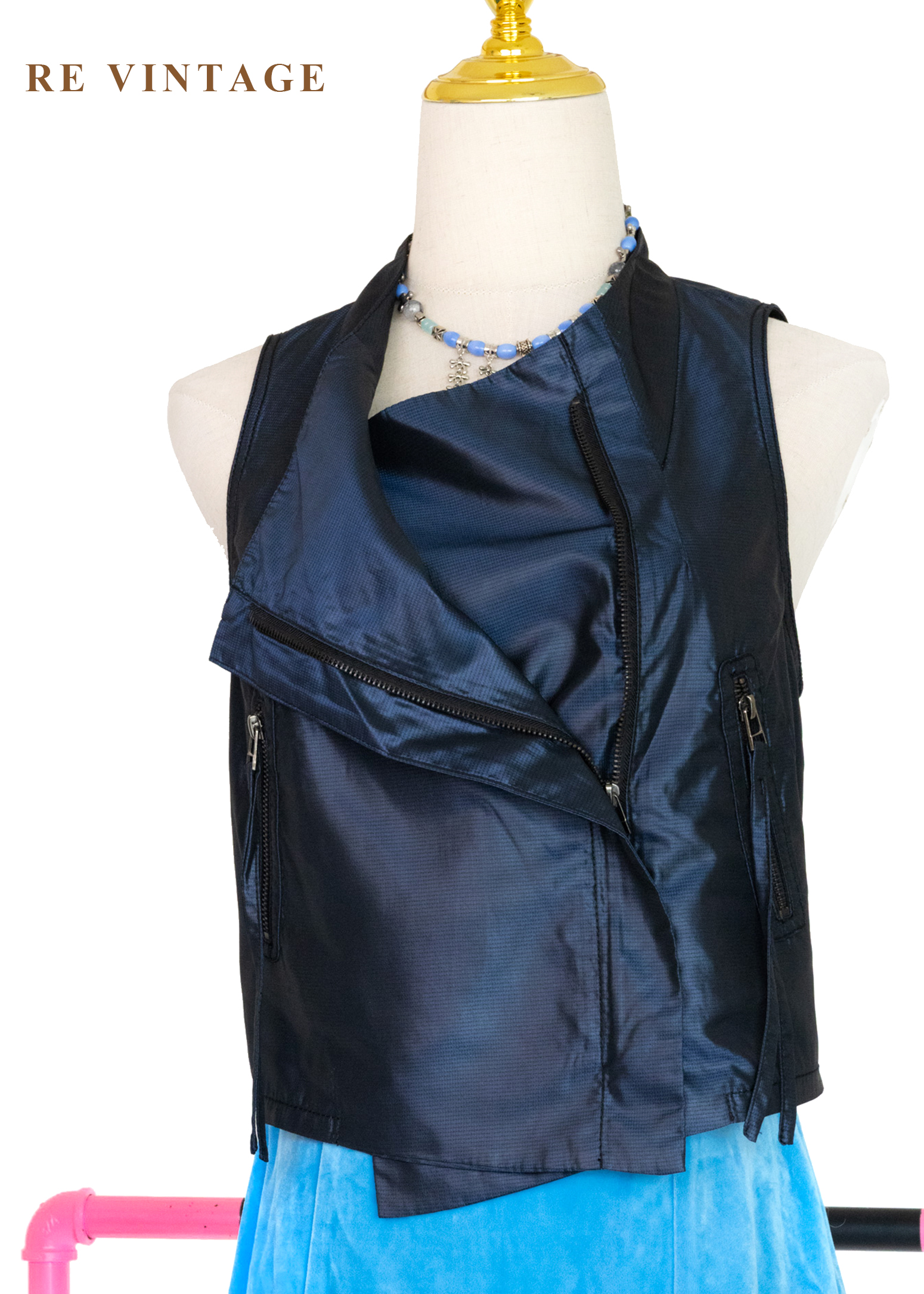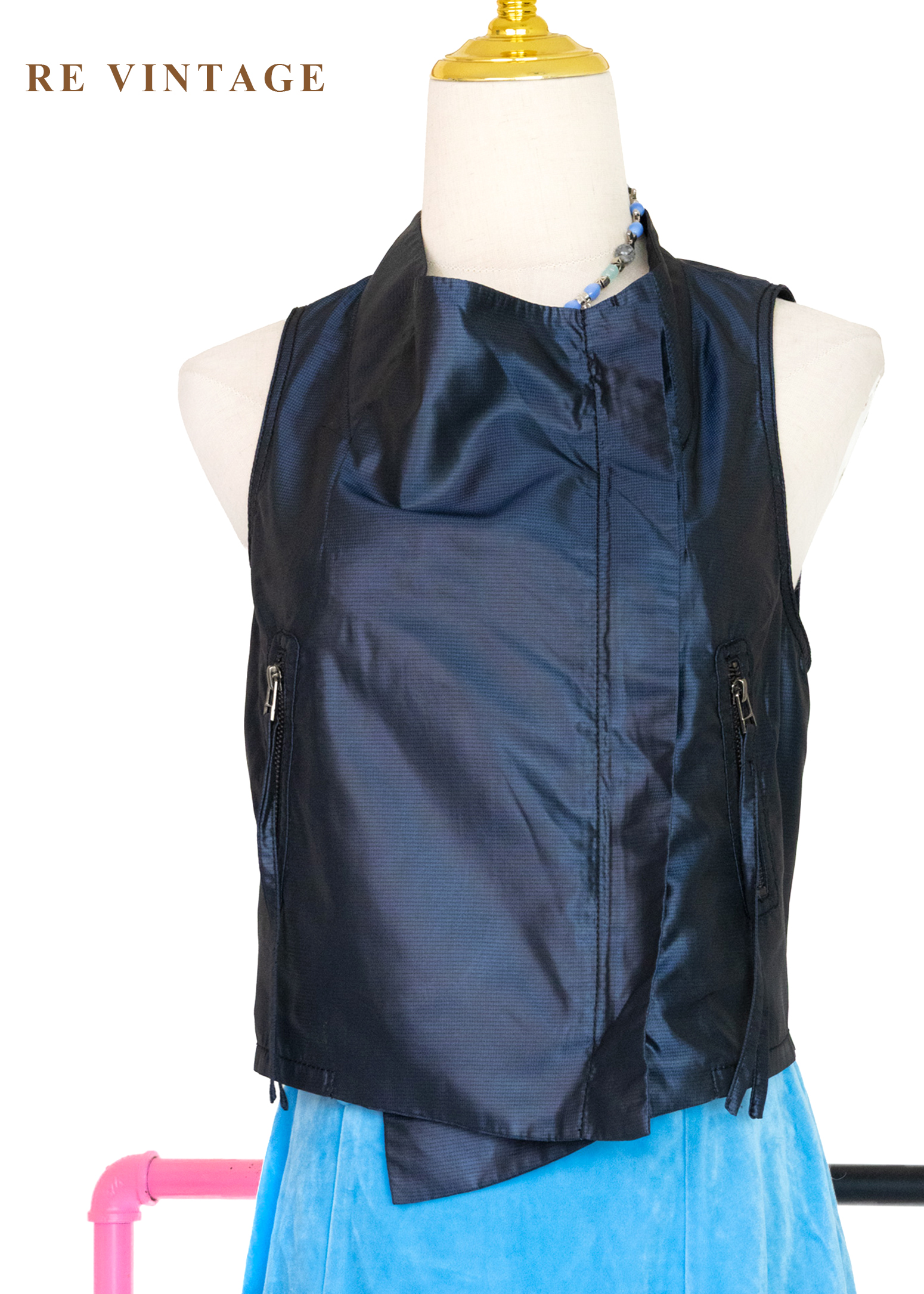 電光藍斜開拉鍊個性背心
