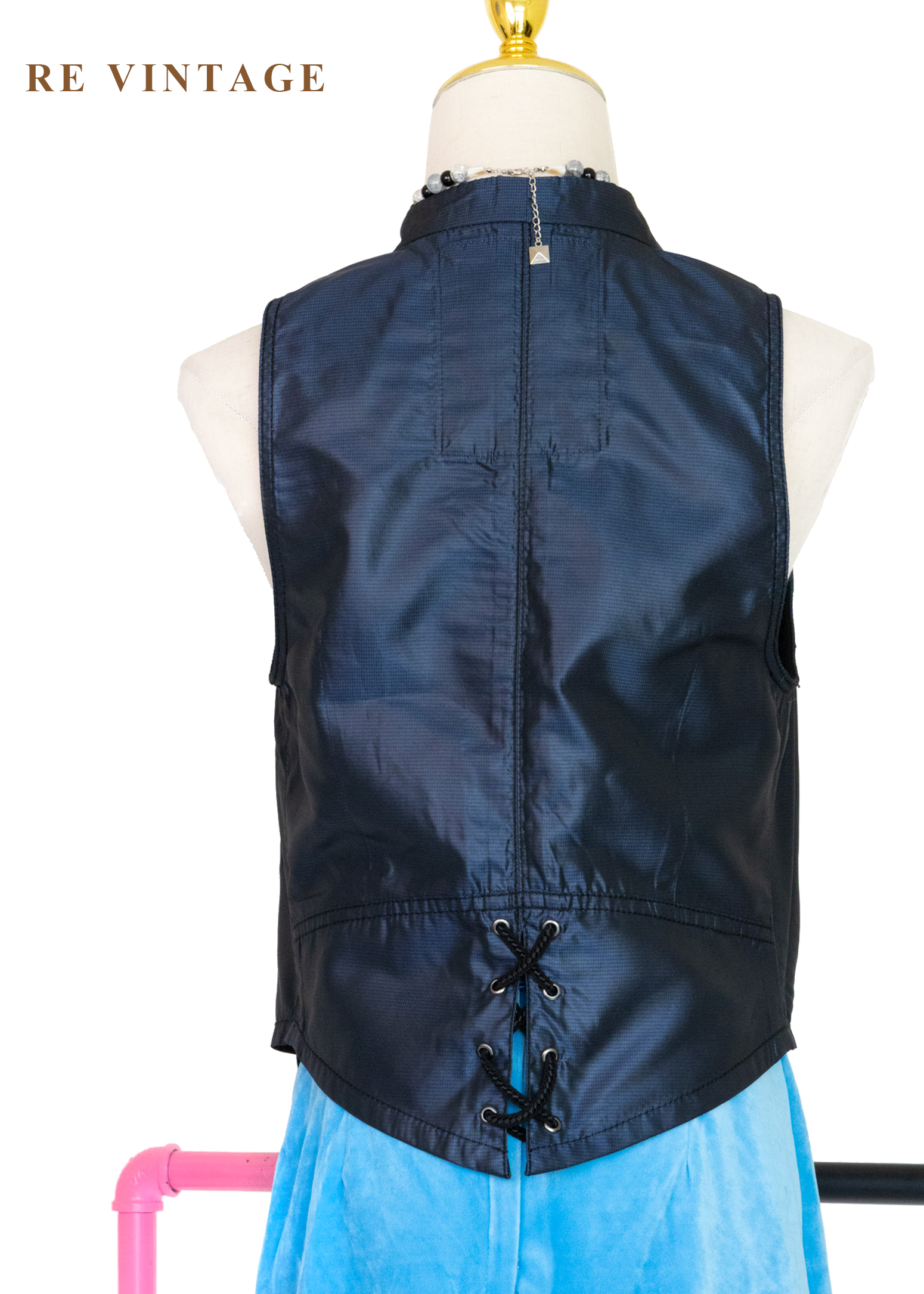 - 背面下擺交叉綁繩細節