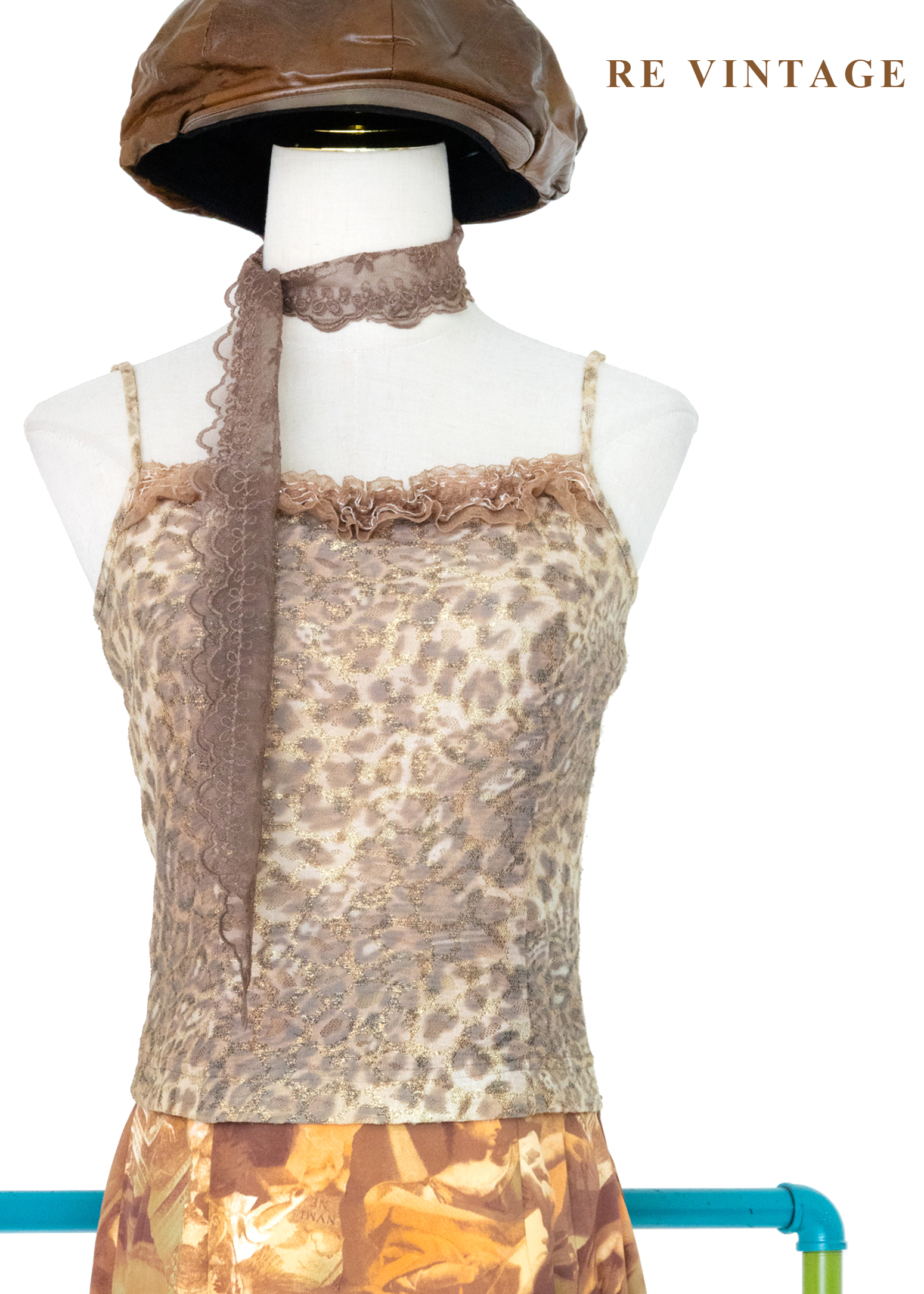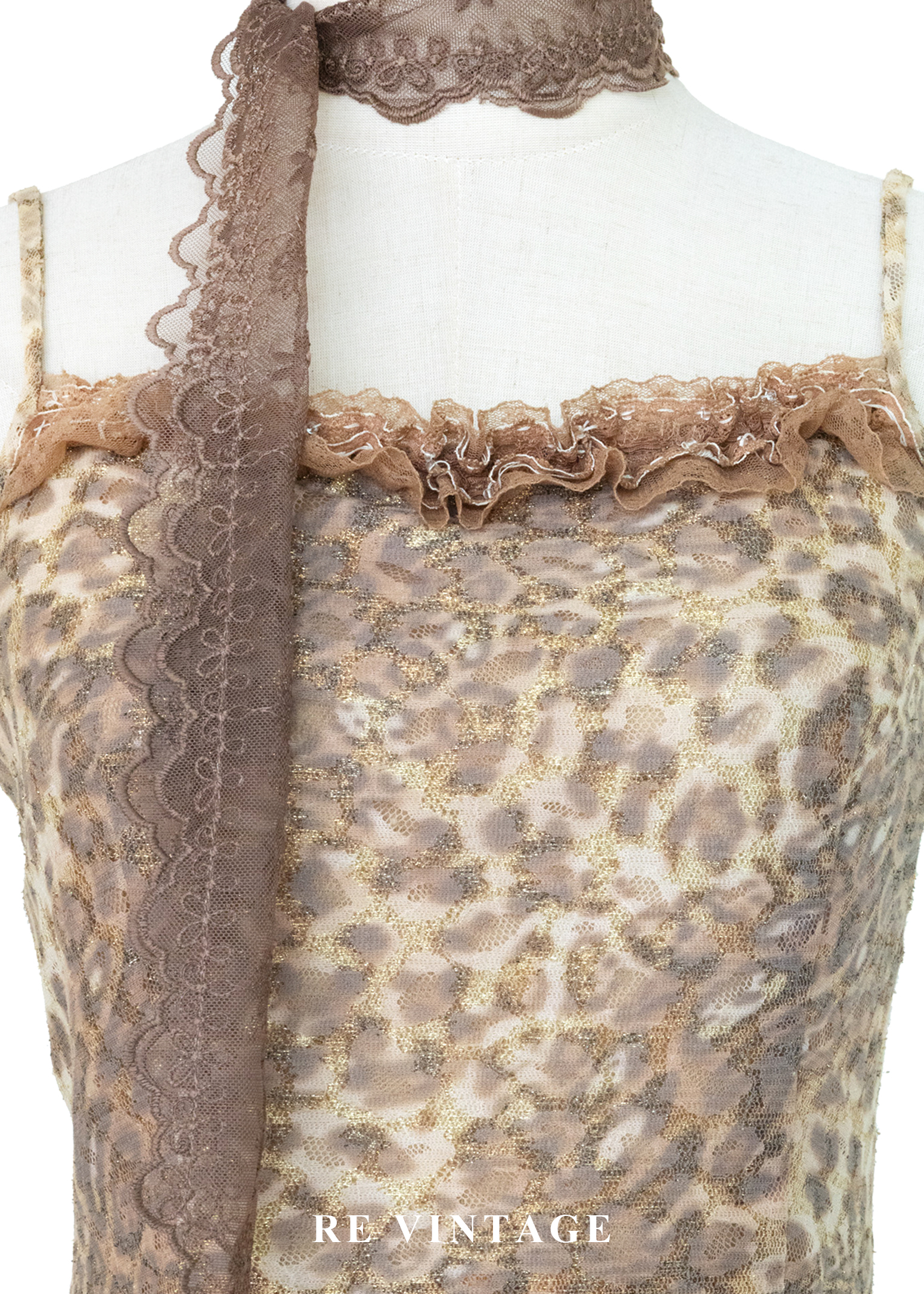 黃金豹紋蕾絲細肩帶背心