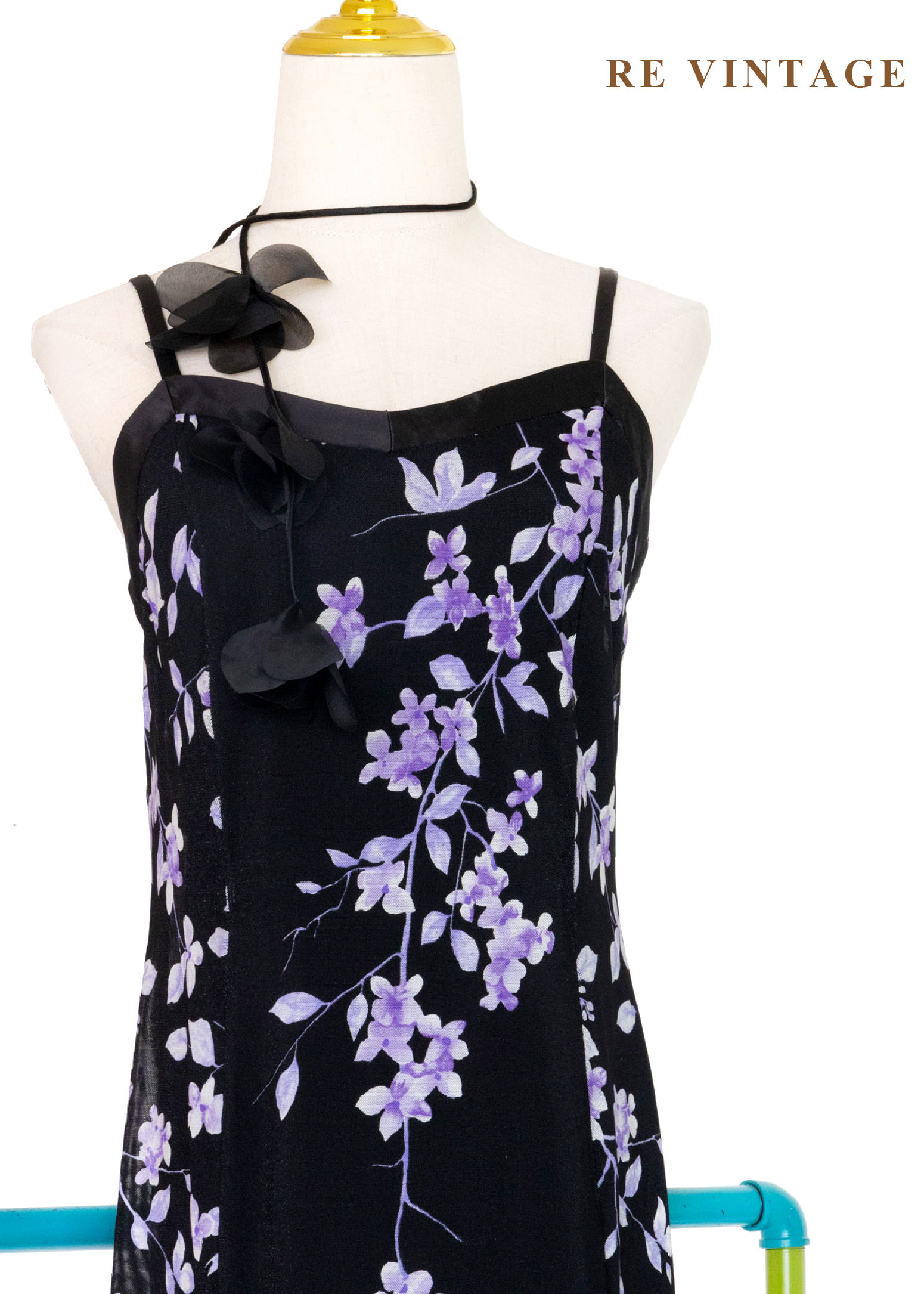 黑夜紫光花火細肩帶洋裝